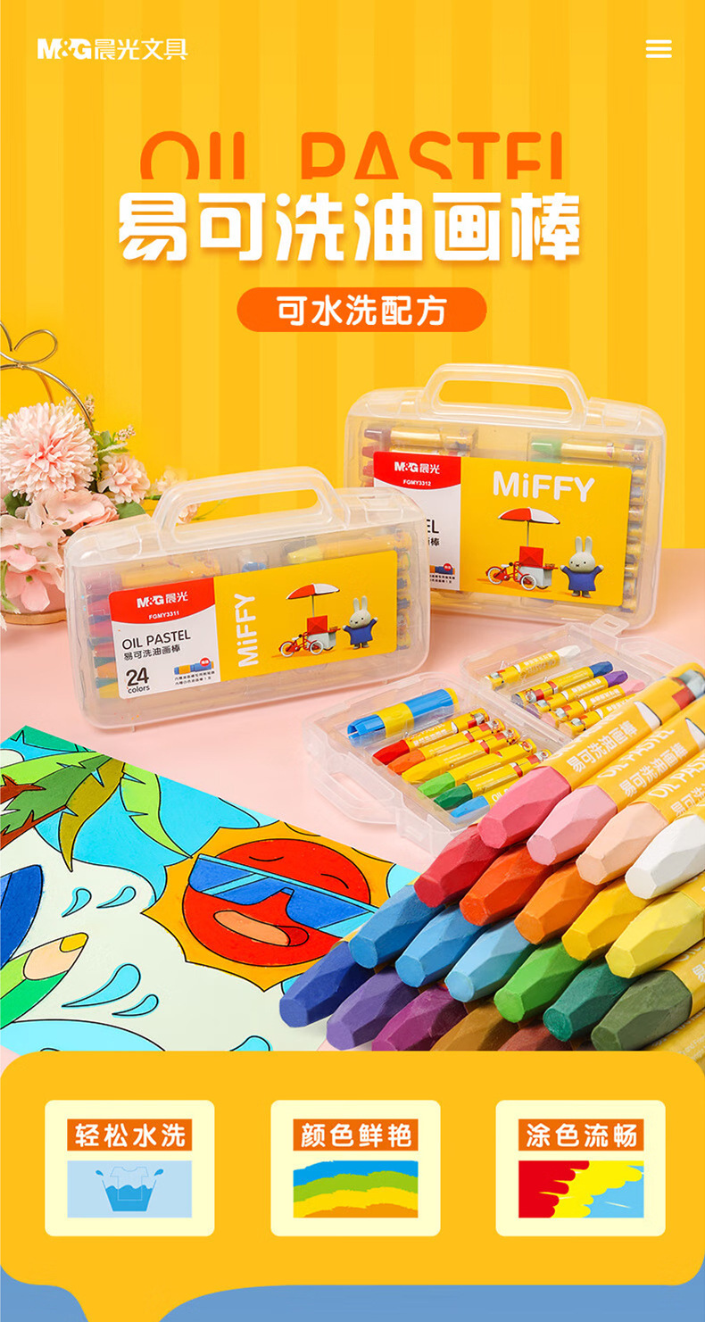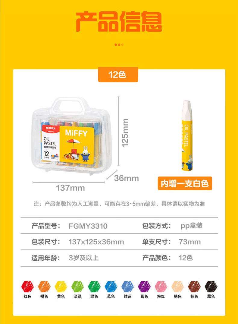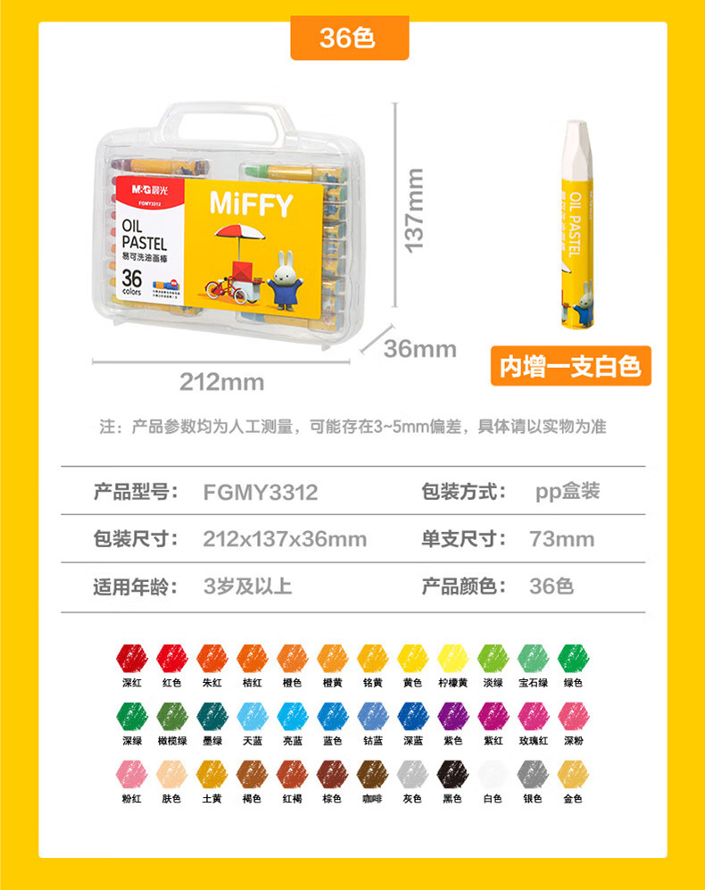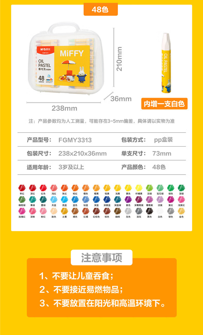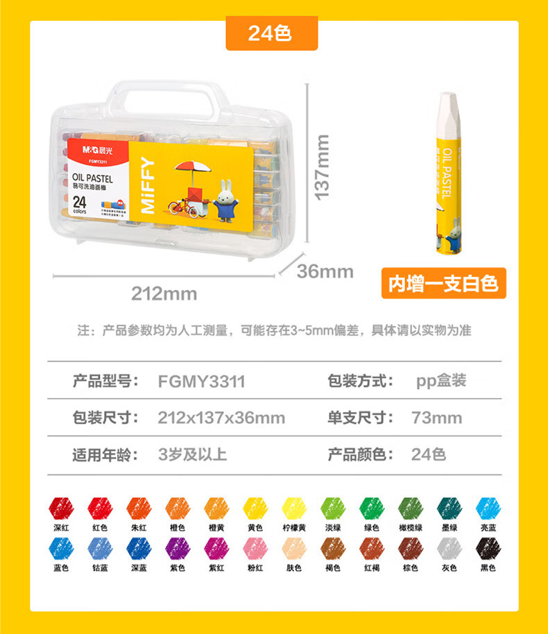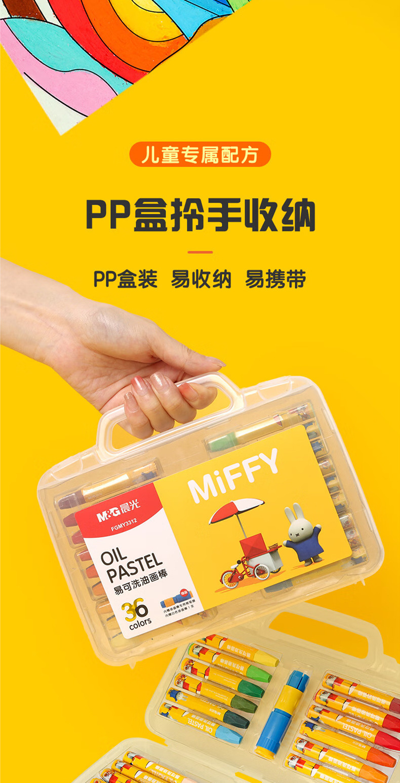 Pastel minyak Morning Light Miffy yang mudah dicuci, aman dan tidak akan mengotori tangan Anda untuk seni dan melukis kreatif FGMY3310