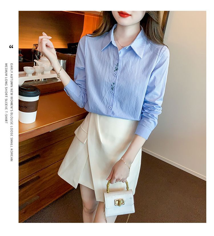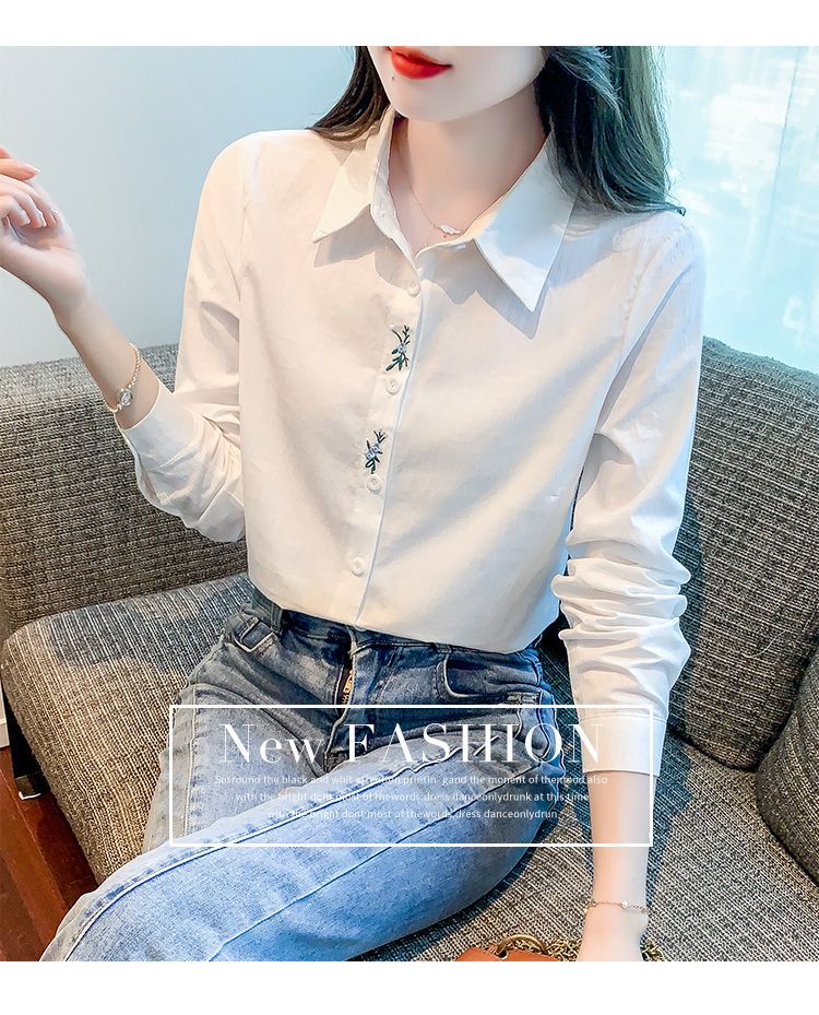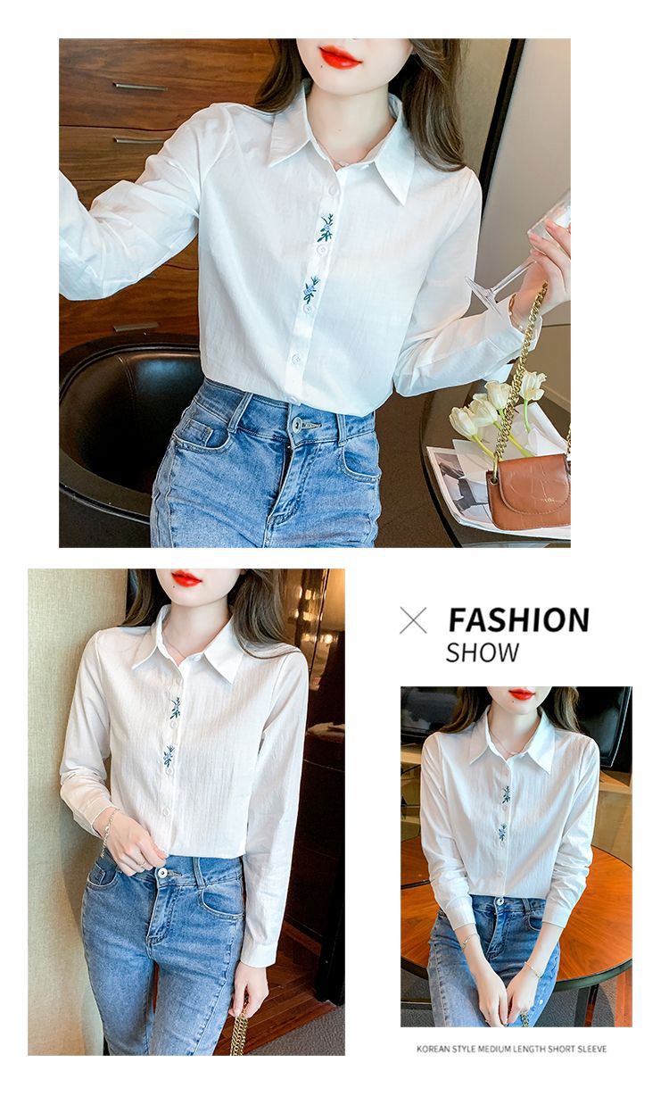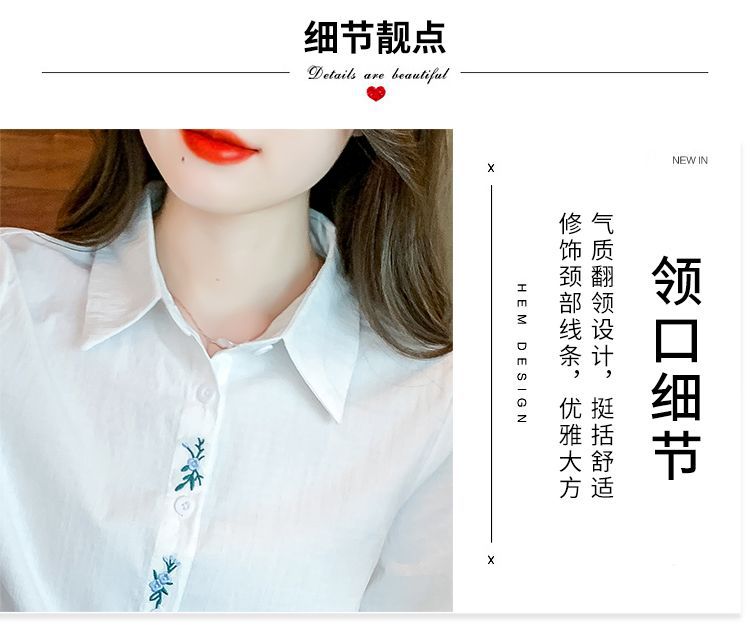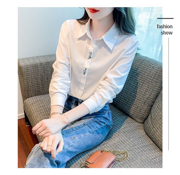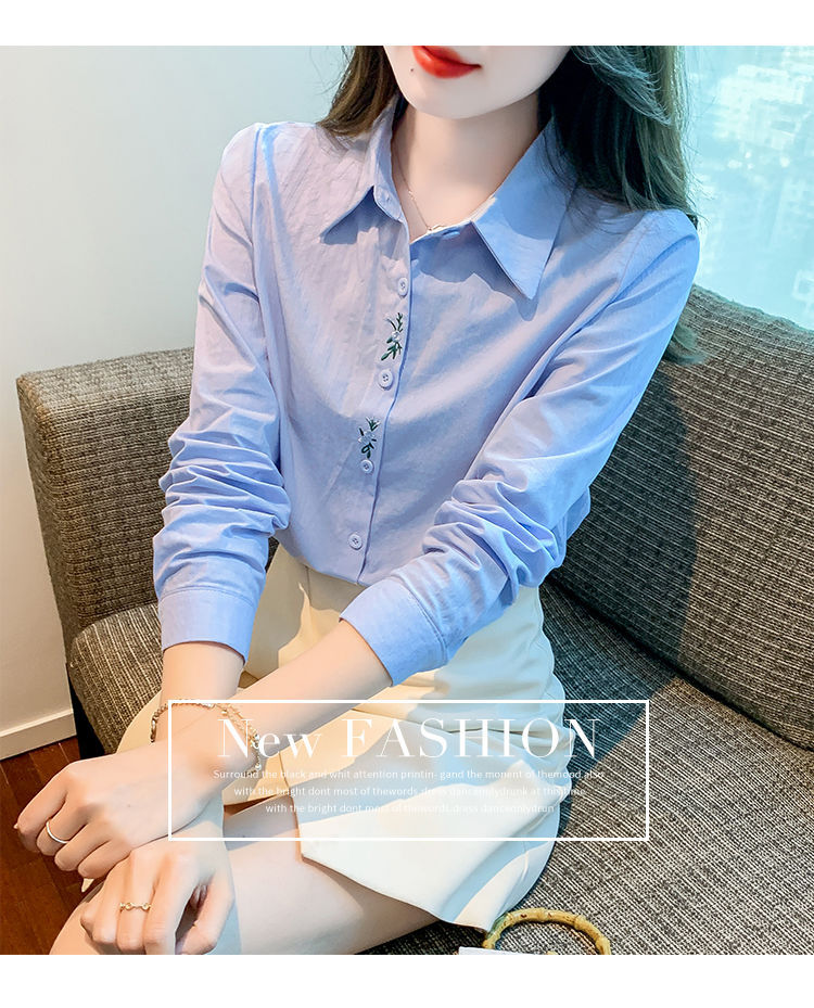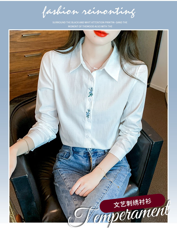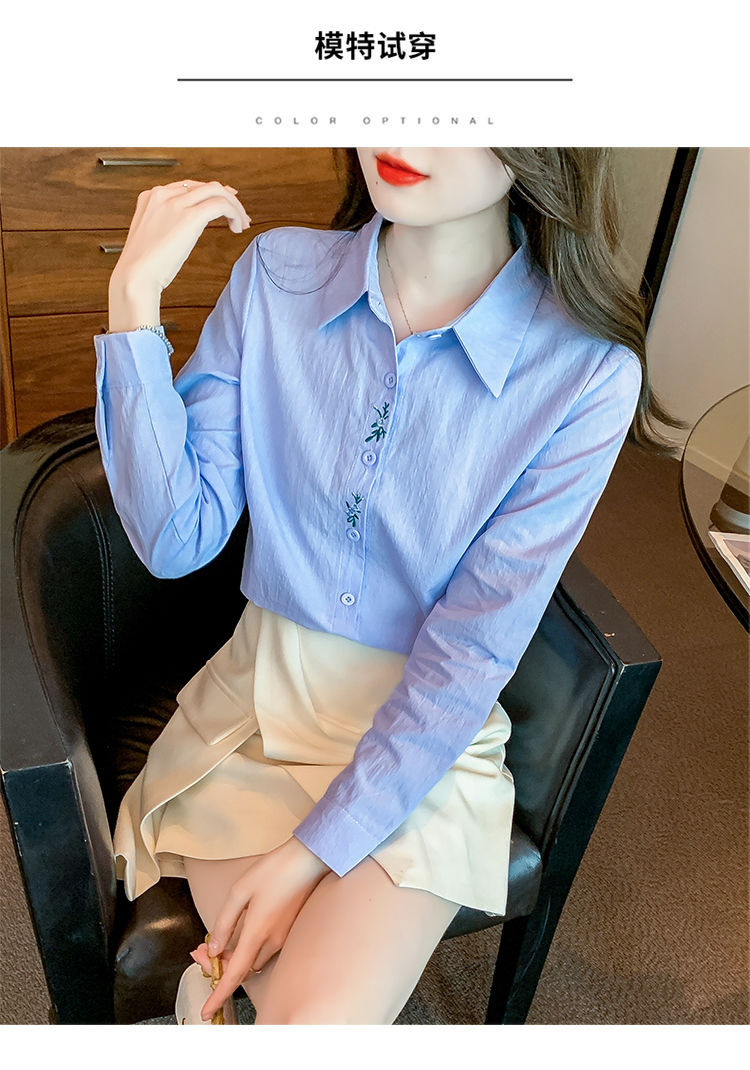 Kemeja katun murni wanita musim semi 2025, model terbaru yang menampilkan kesan awet muda, kemeja profesional bergaya dengan bordir.