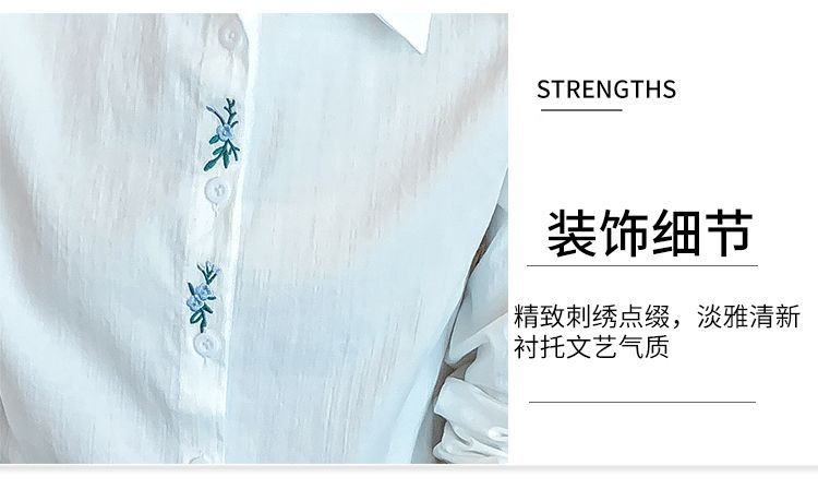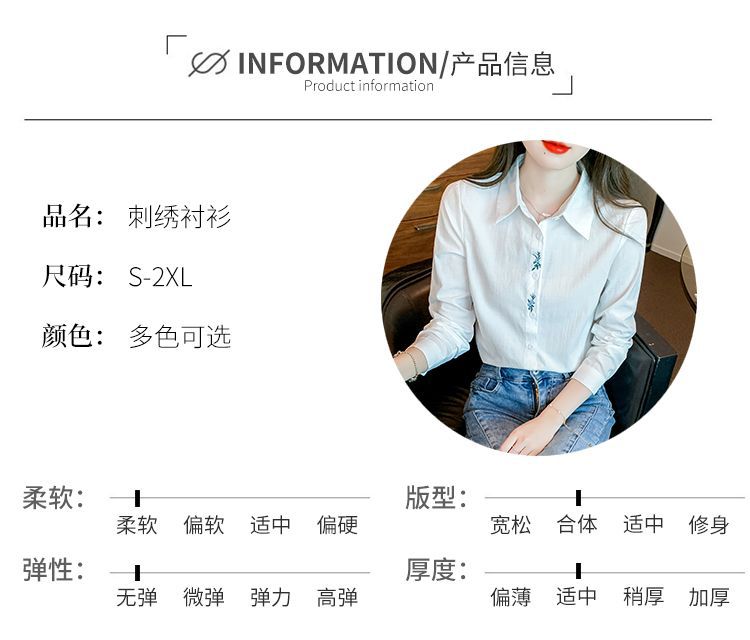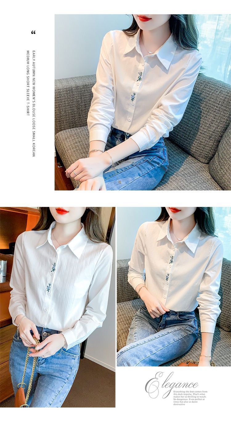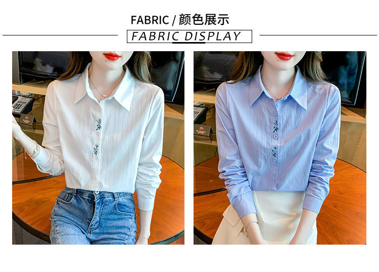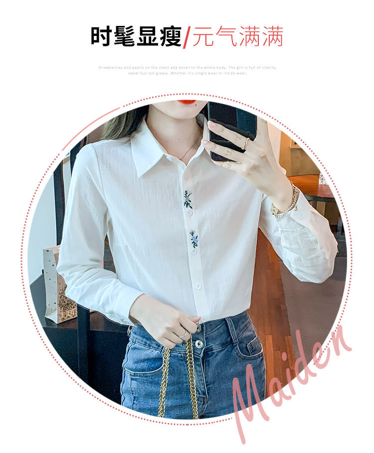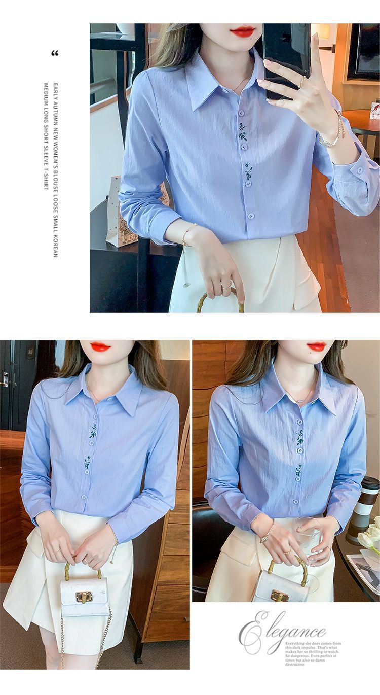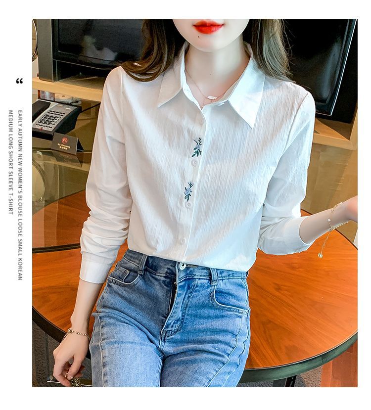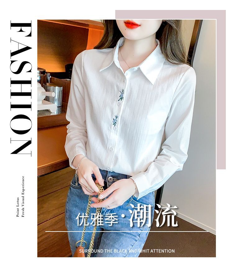 Kemeja katun murni wanita musim semi 2025, model terbaru yang menampilkan kesan awet muda, kemeja profesional bergaya dengan bordir.