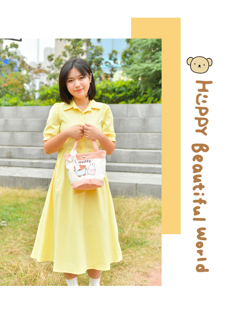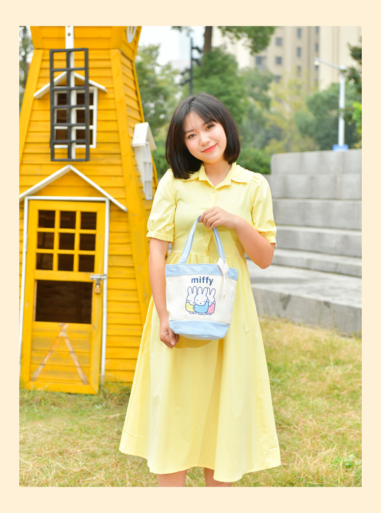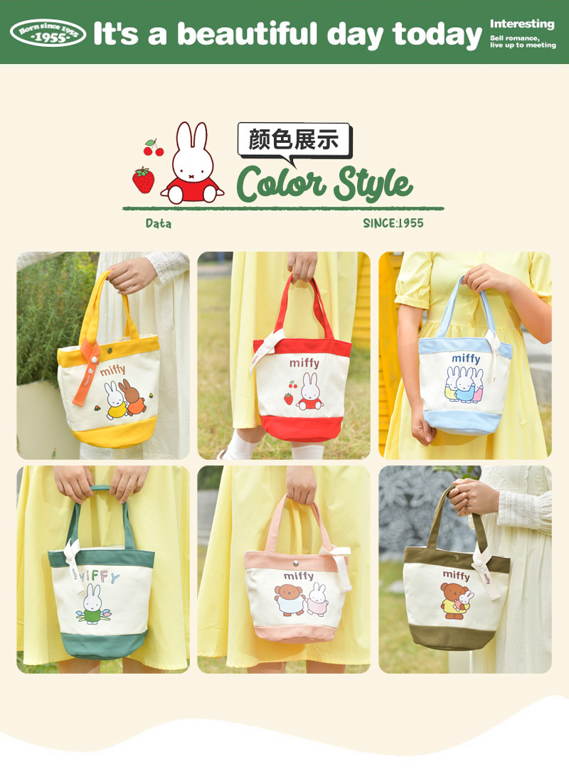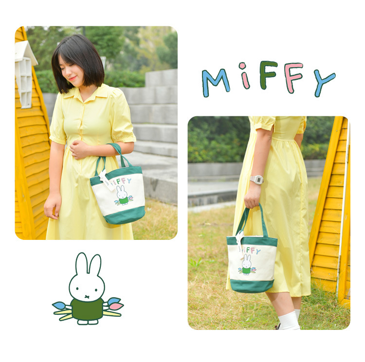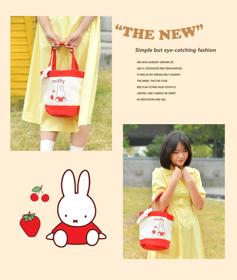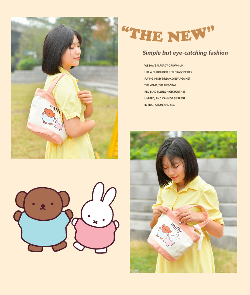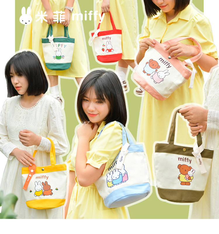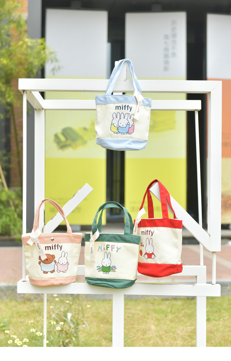 Tas kotak makan siang portabel, tas kanvas tebal kartun, tas kotak makan siang bento, motif kelinci asli
