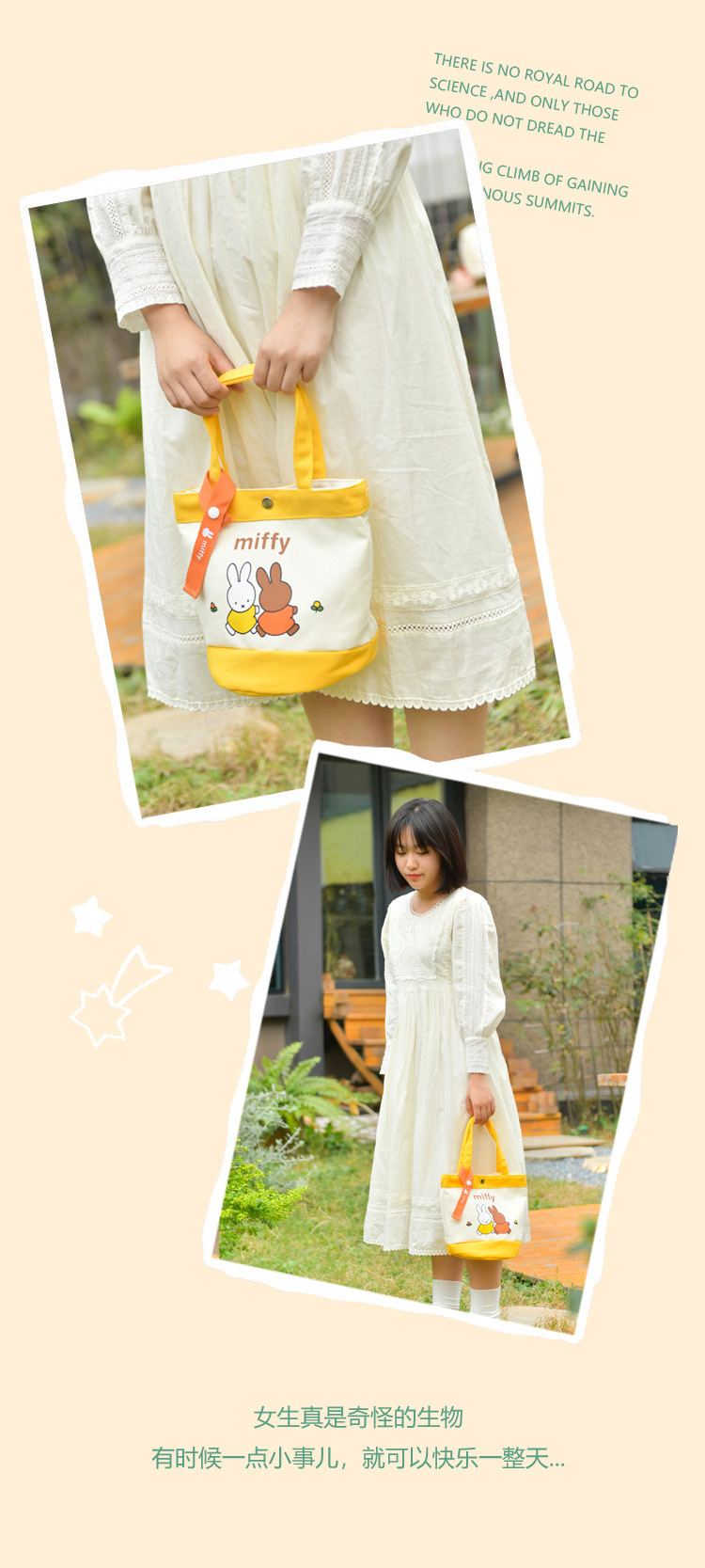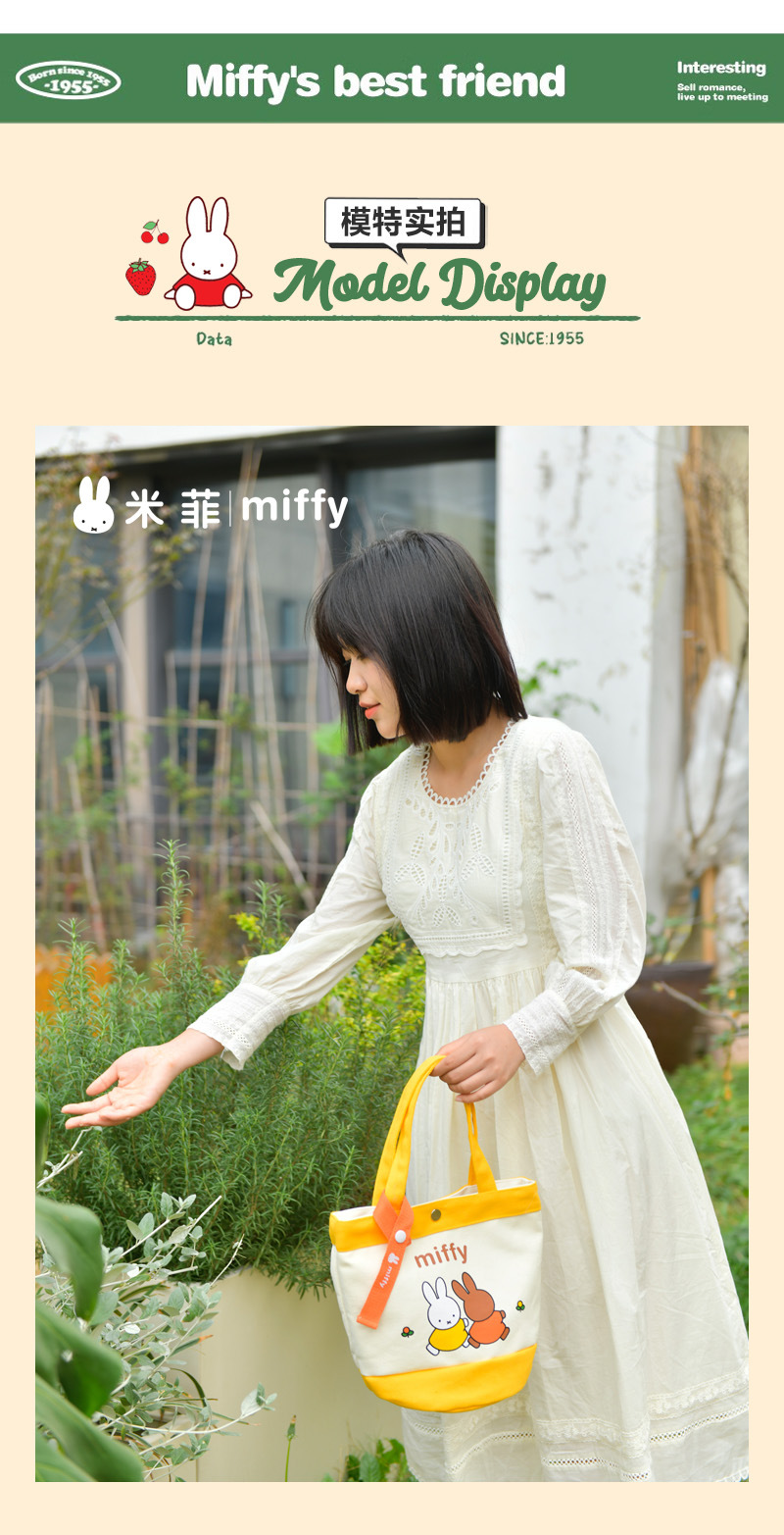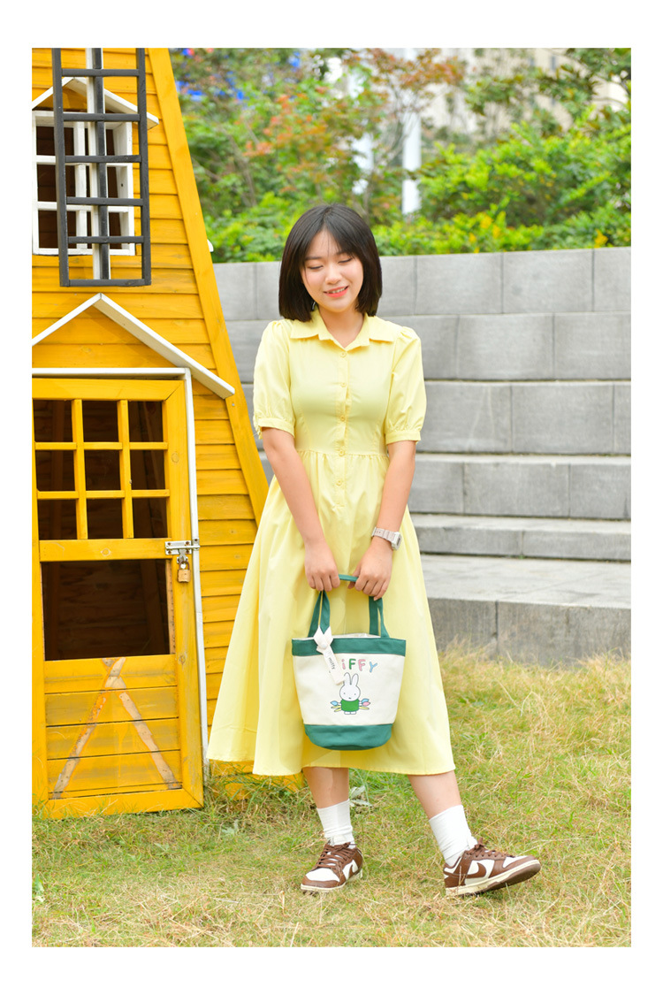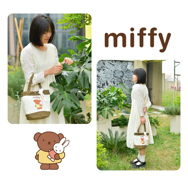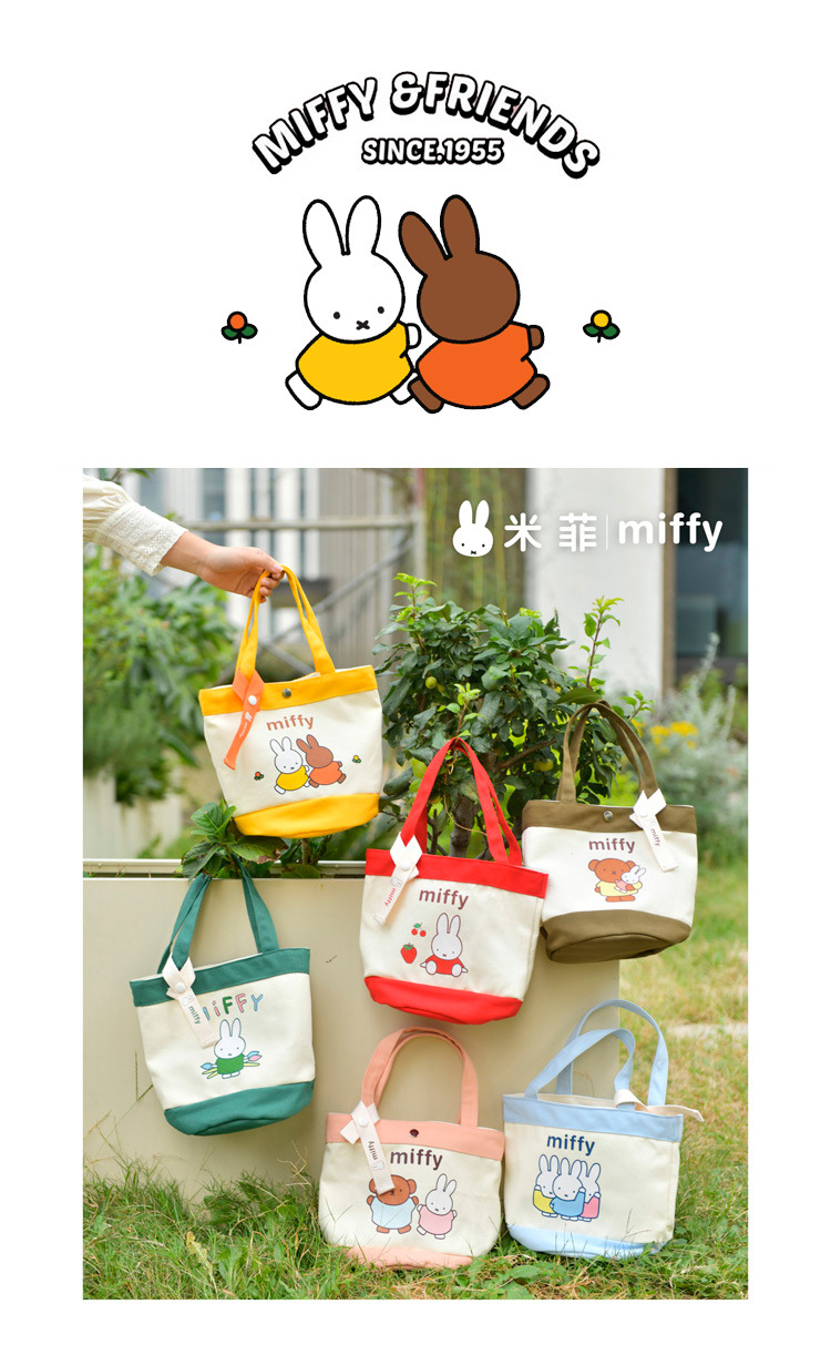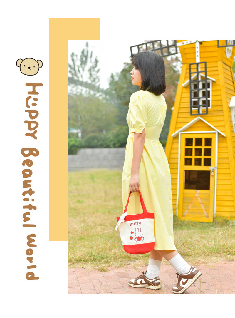 Tas kotak makan siang portabel, tas kanvas tebal kartun, tas kotak makan siang bento, motif kelinci asli