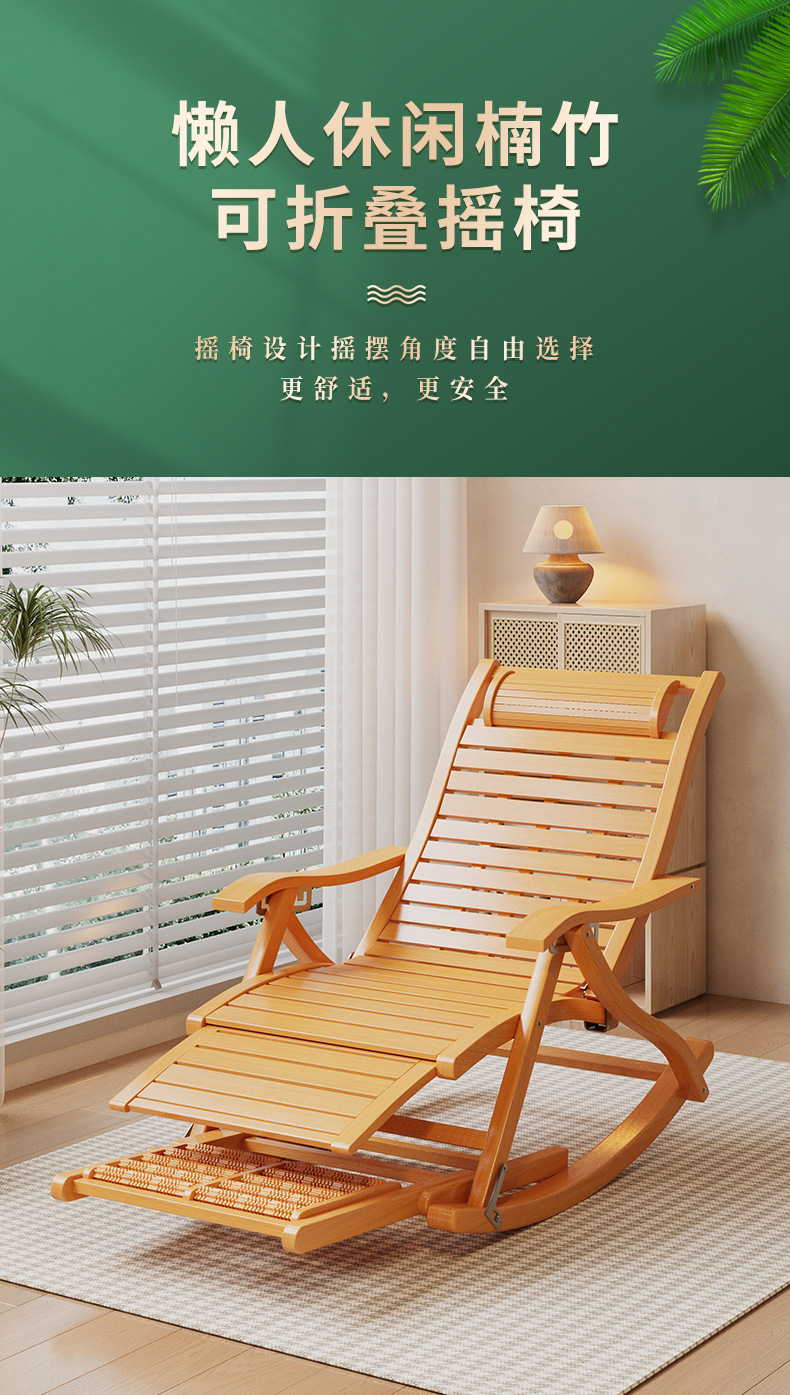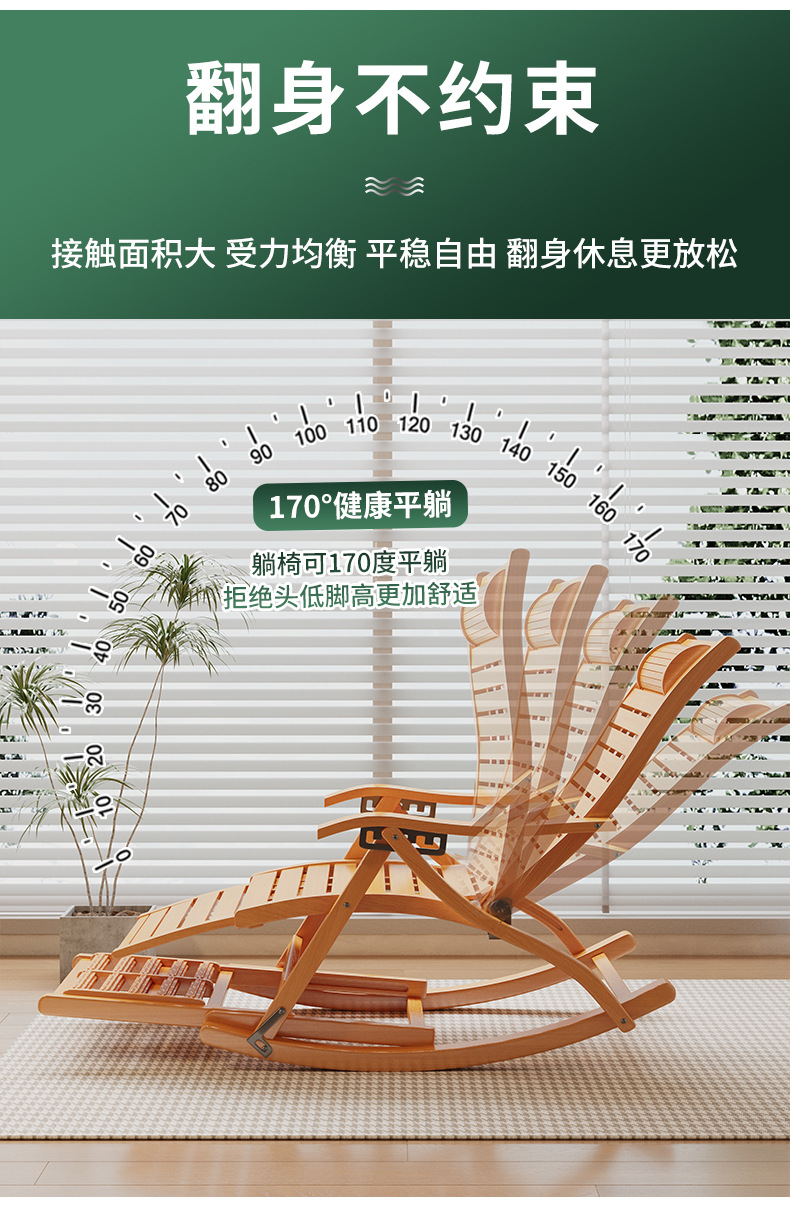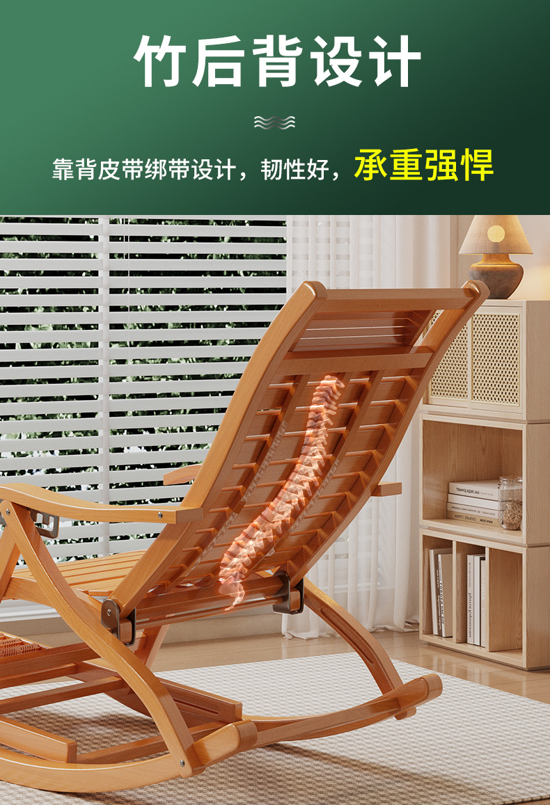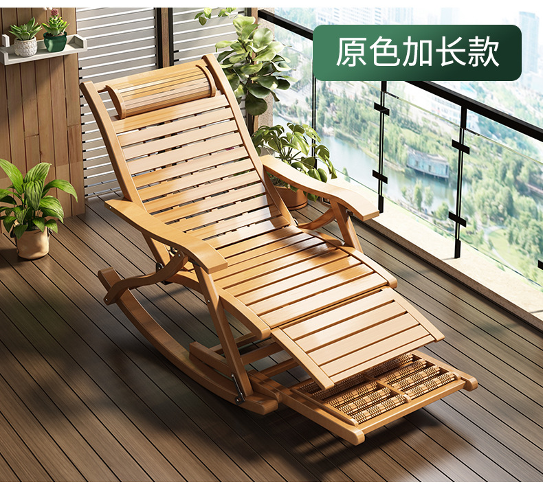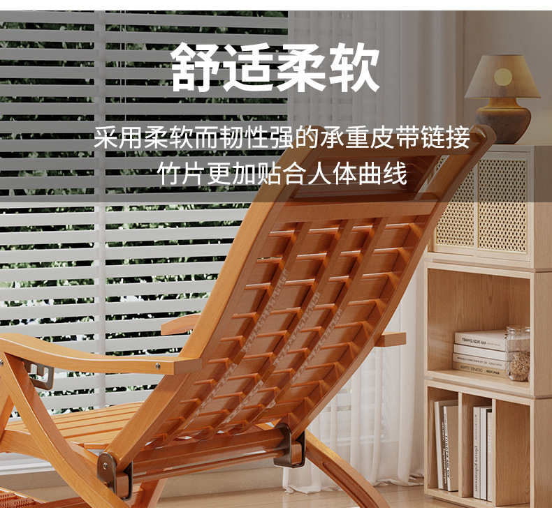 Kursi Bersandaran Kursi Bambu Rumah Tangga Kuat Kursi Berjemur Lipat Santai Orang Tua Berbaring Datar Tahan Lama Tidur Siang Balkon Gaya Tiongkok
