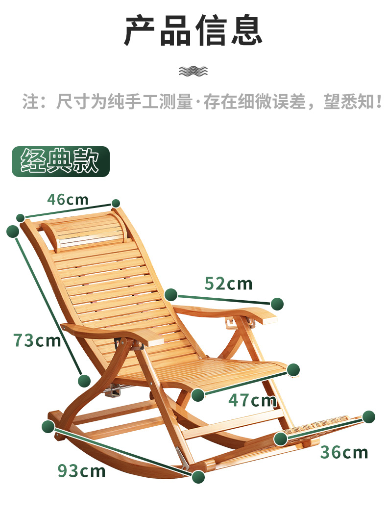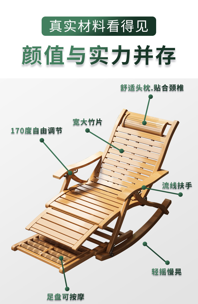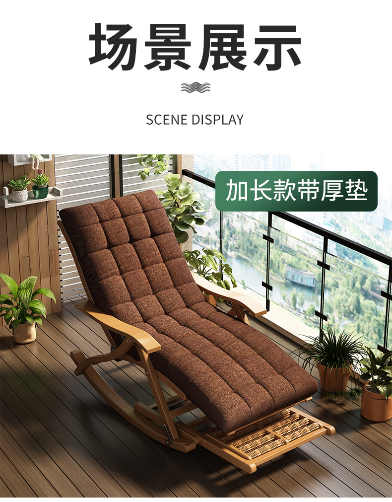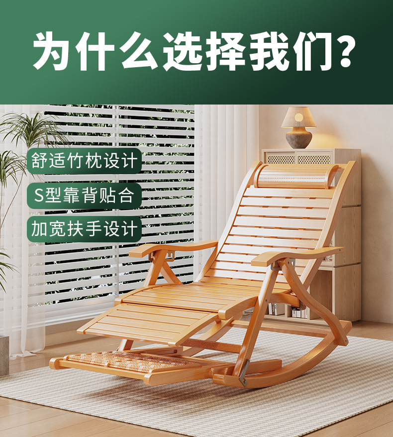 Kursi Bersandaran Kursi Bambu Rumah Tangga Kuat Kursi Berjemur Lipat Santai Orang Tua Berbaring Datar Tahan Lama Tidur Siang Balkon Gaya Tiongkok
