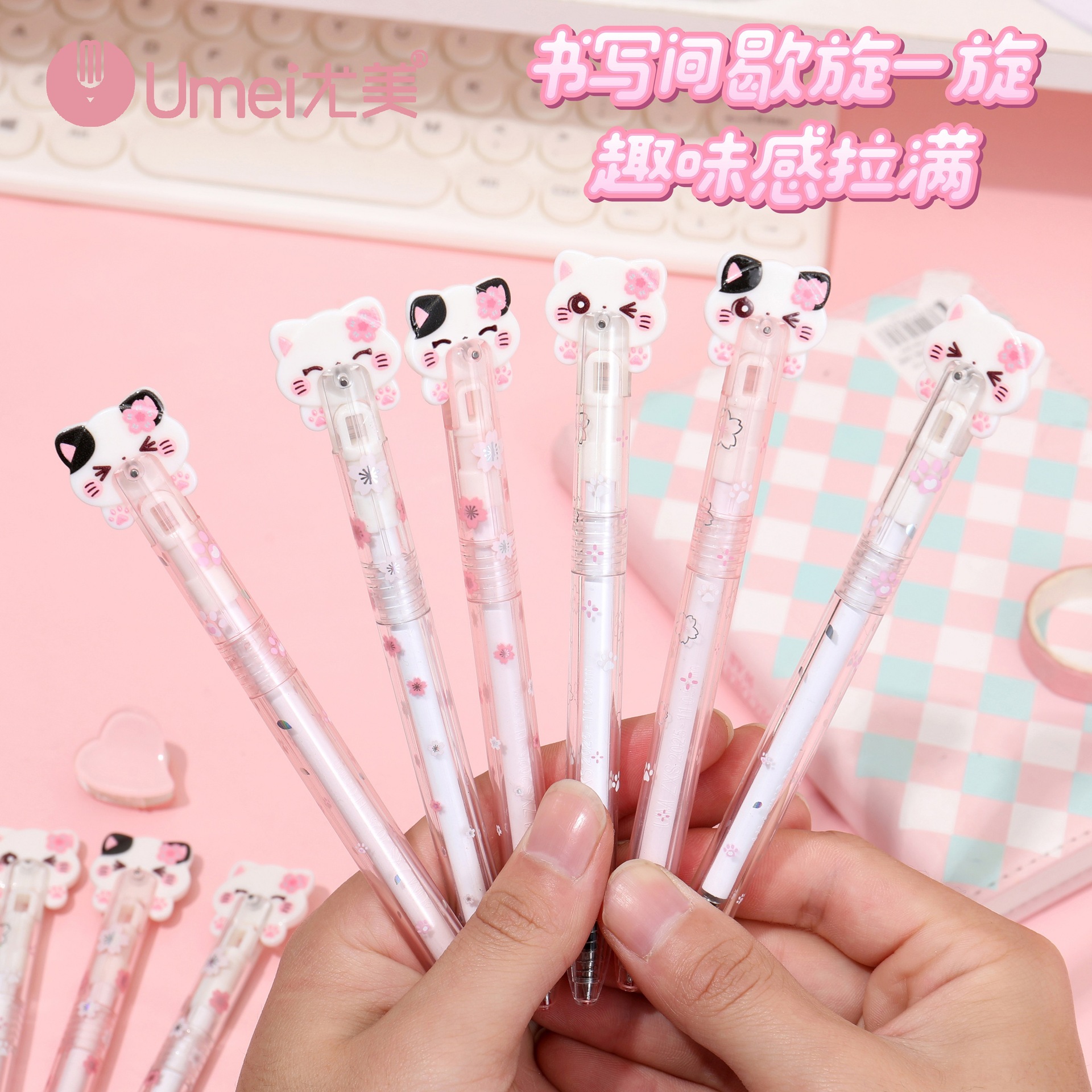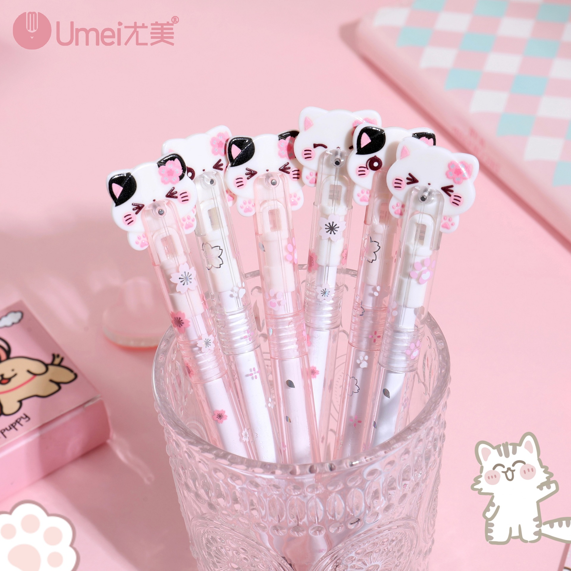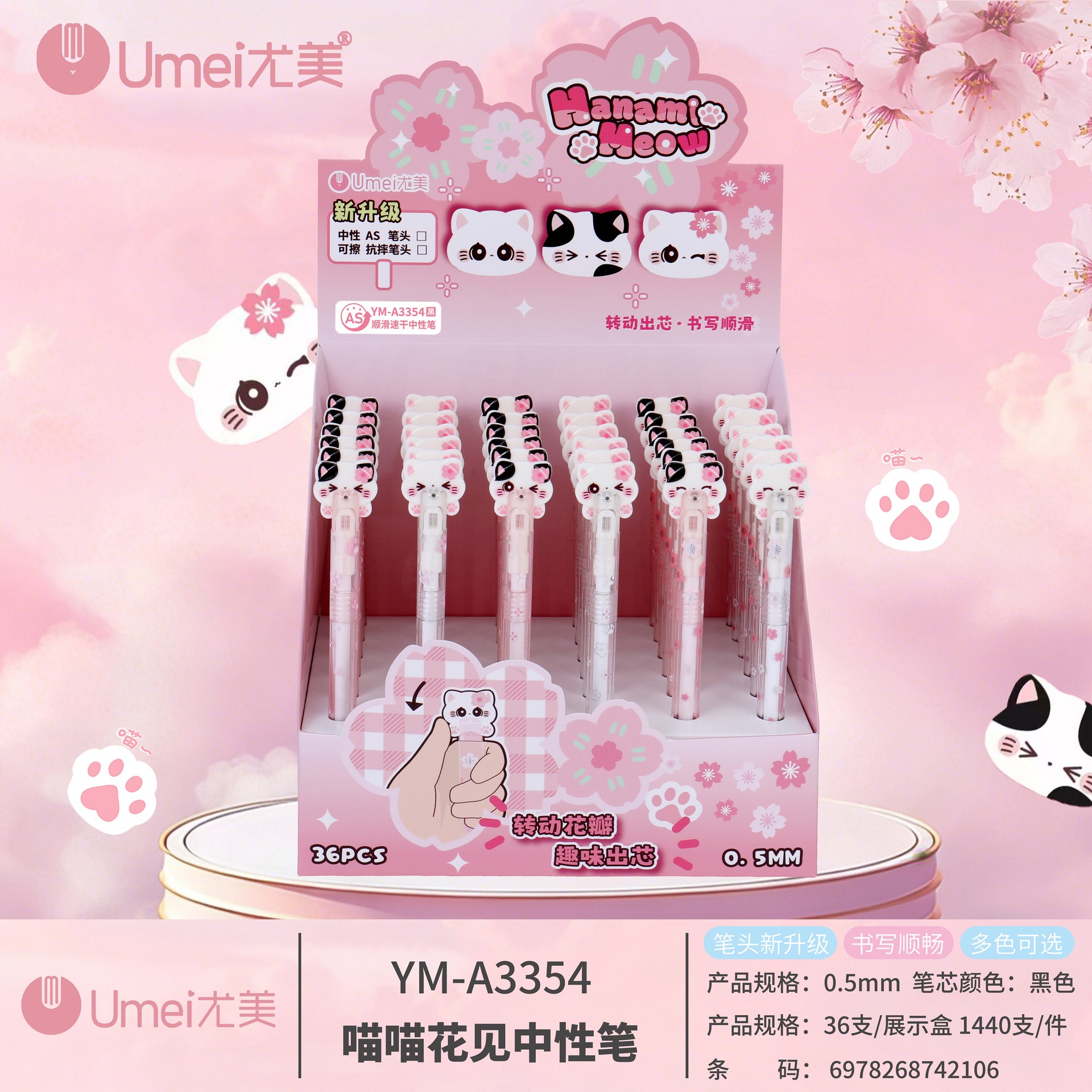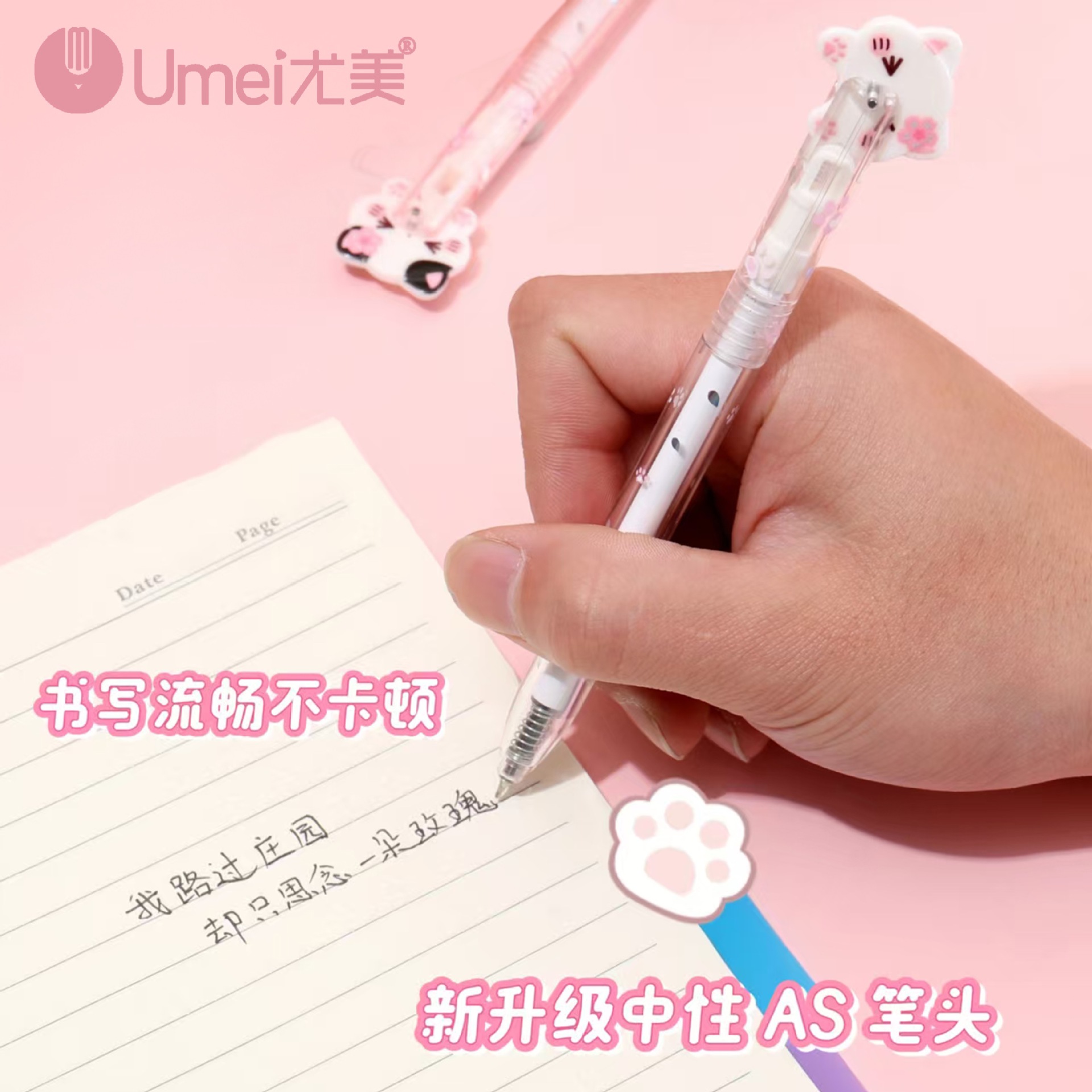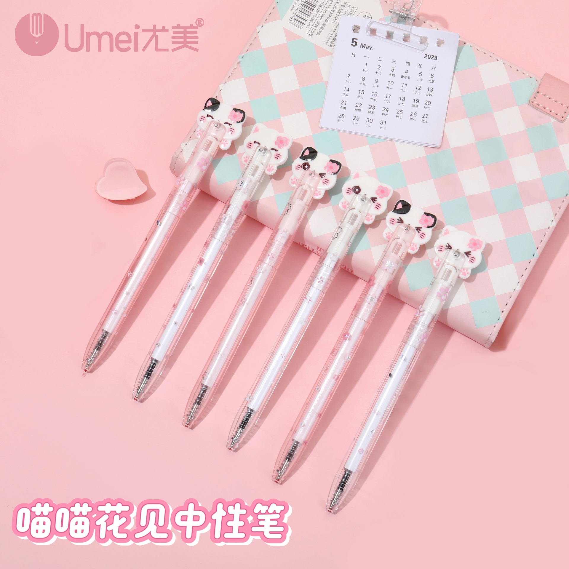 尤美A3354喵喵花见系列中性笔可爱学生顺滑速干黑笔办公签字笔