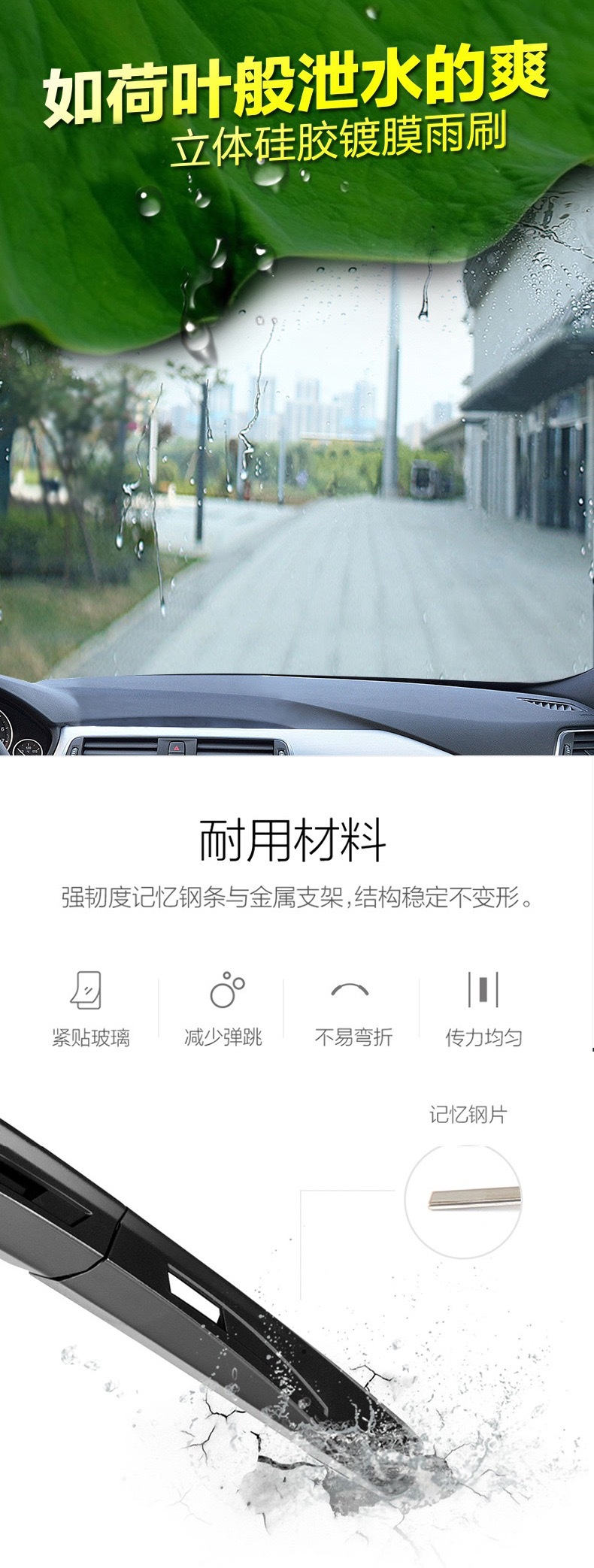 氯丁胶条SK5高碳钢片无骨多功能雨刮器 按压式卡扣雨刷器可换胶条