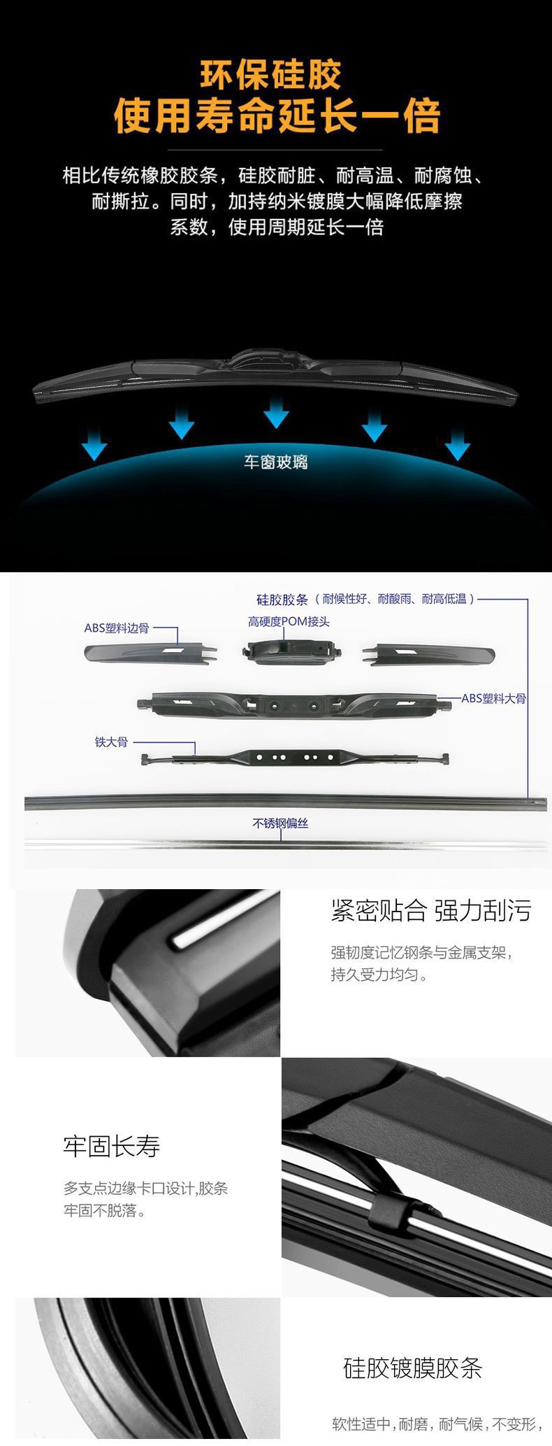 新款硅胶镀膜多功能无骨雨刷器 雨刮片胶条 源头工厂代工贴牌定制