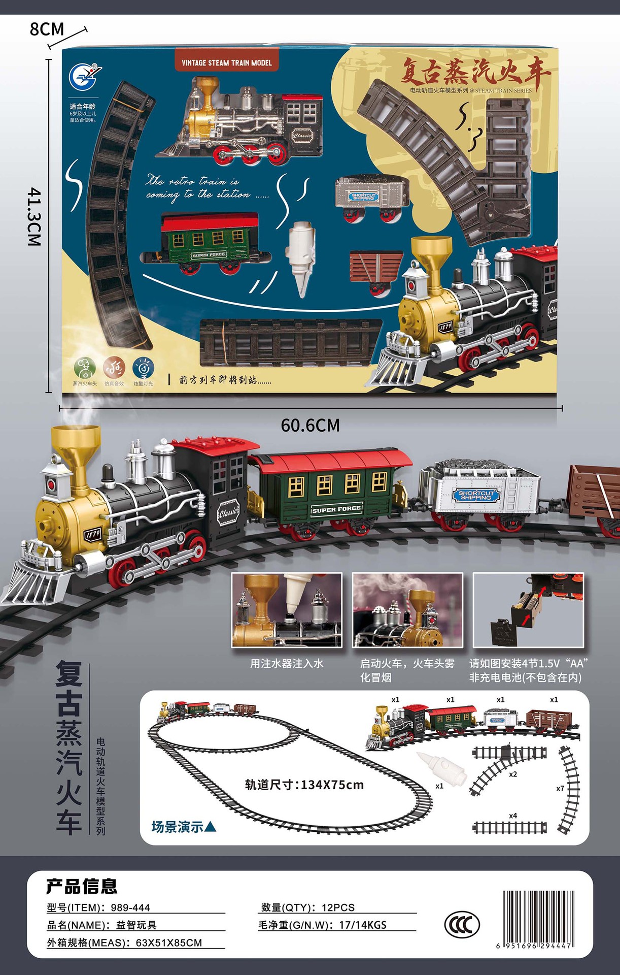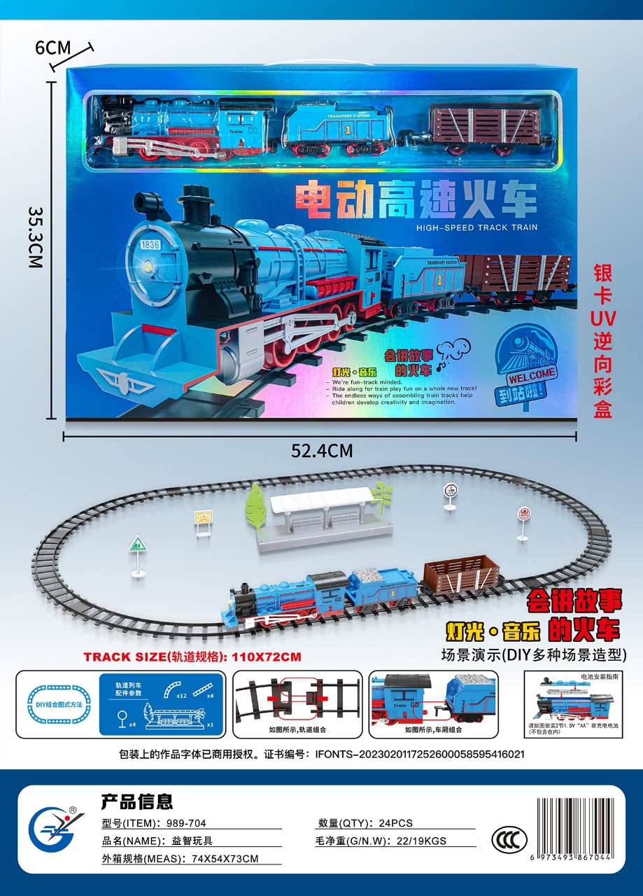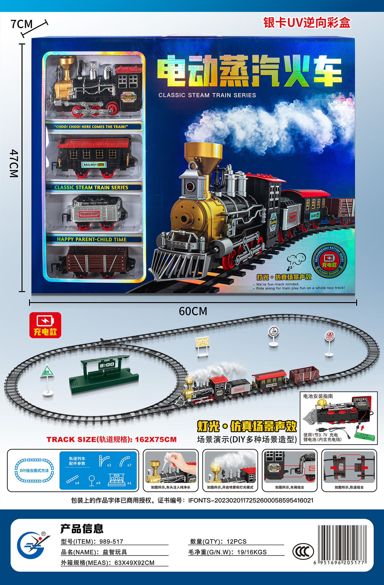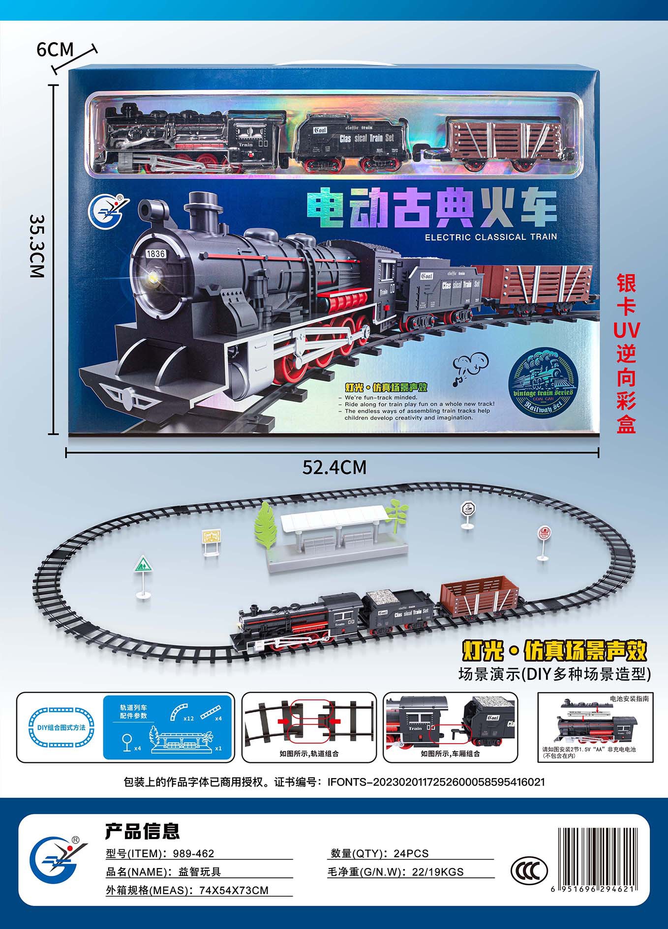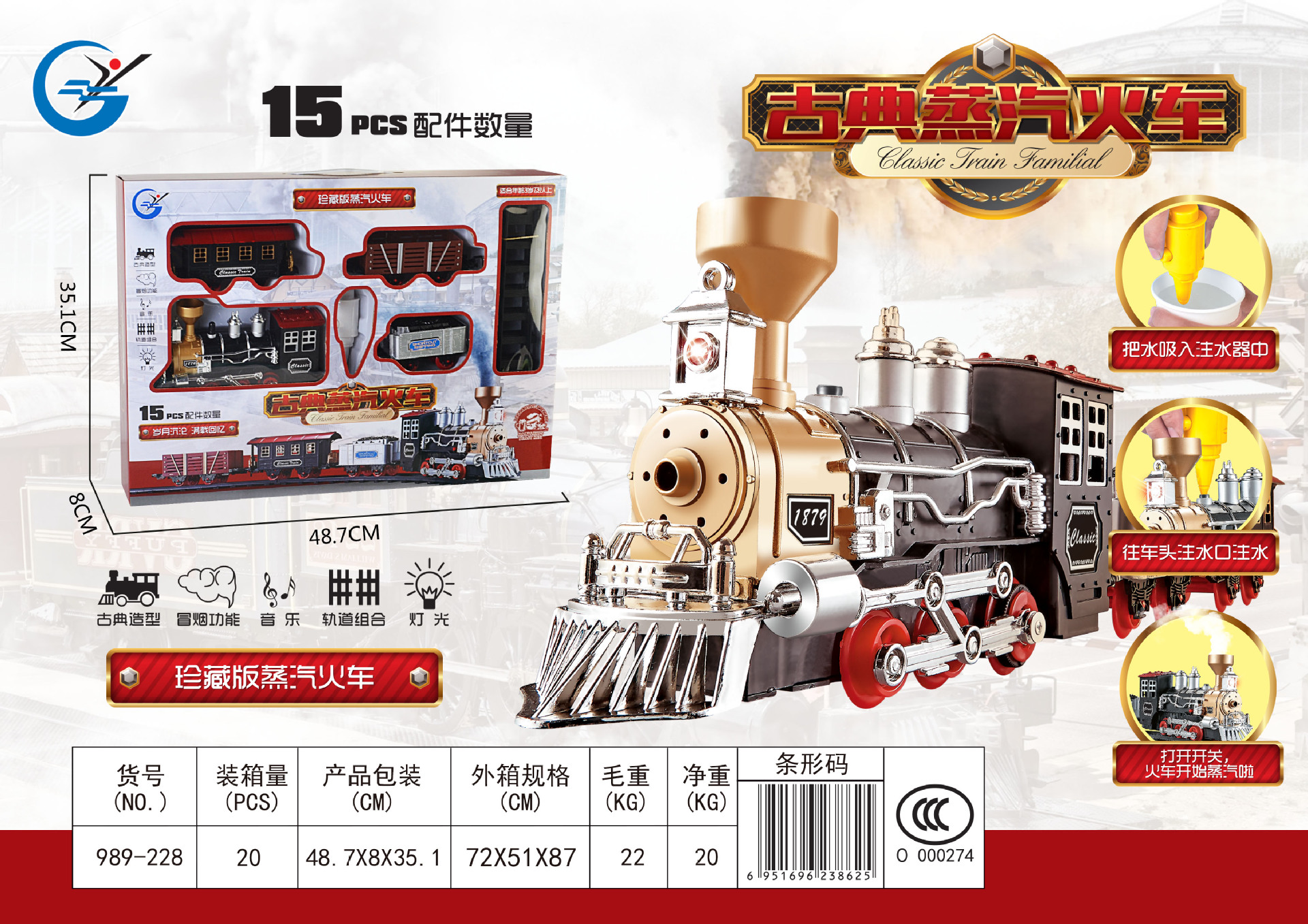 Kereta api mainan klasik Guangyu lintas batas, suara dan cahaya, efek uap, militer, elektrik, rakitan DIY, mainan Natal.