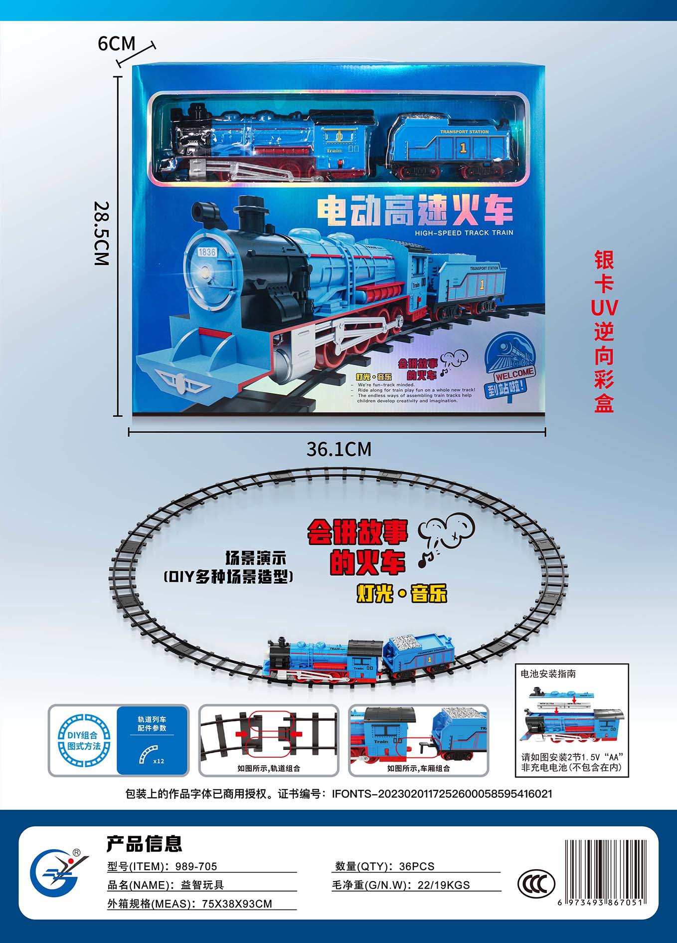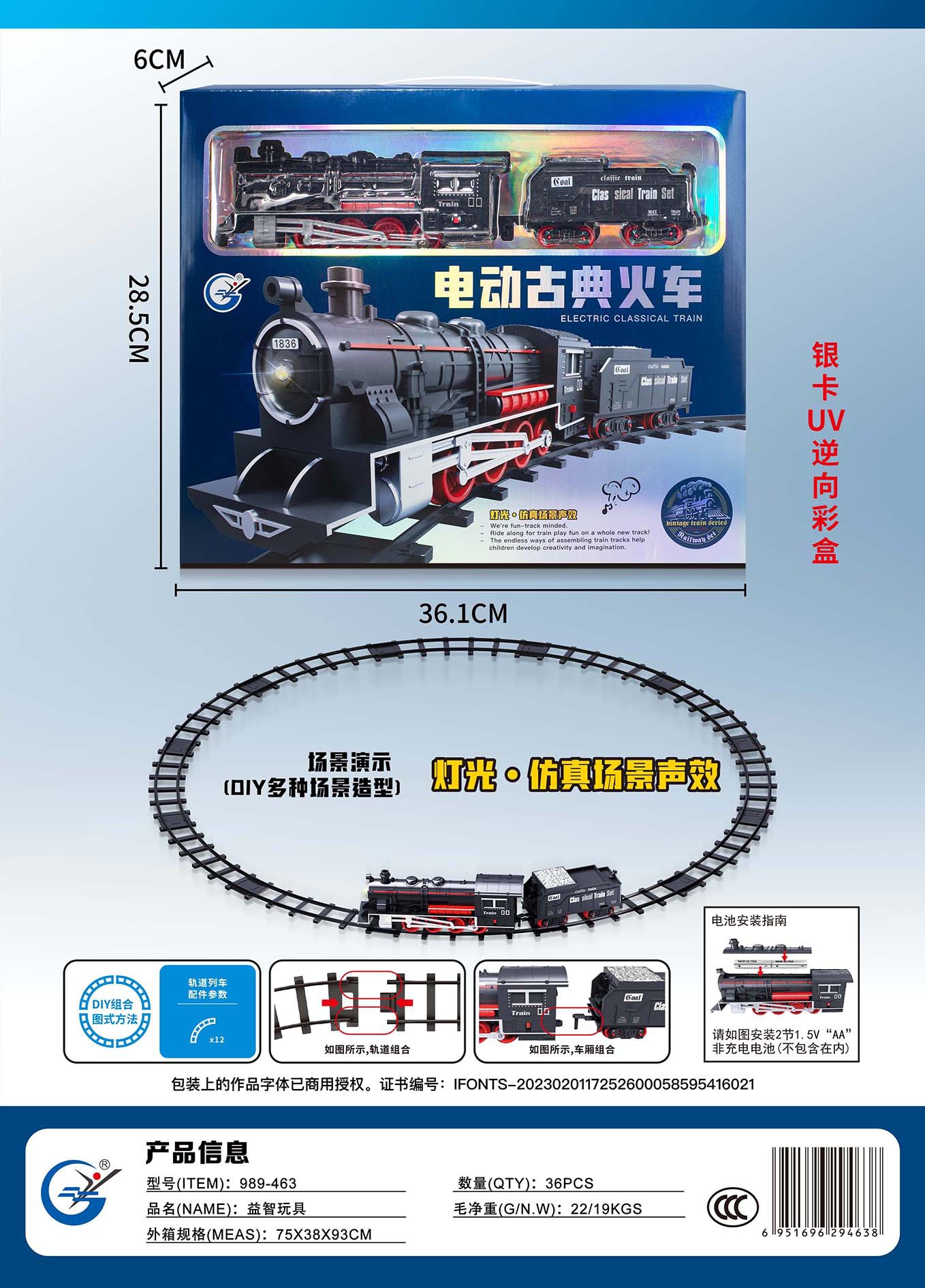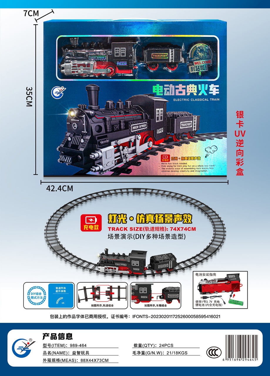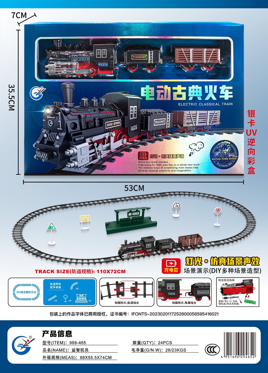 Kereta api mainan klasik Guangyu lintas batas, suara dan cahaya, efek uap, militer, elektrik, rakitan DIY, mainan Natal.