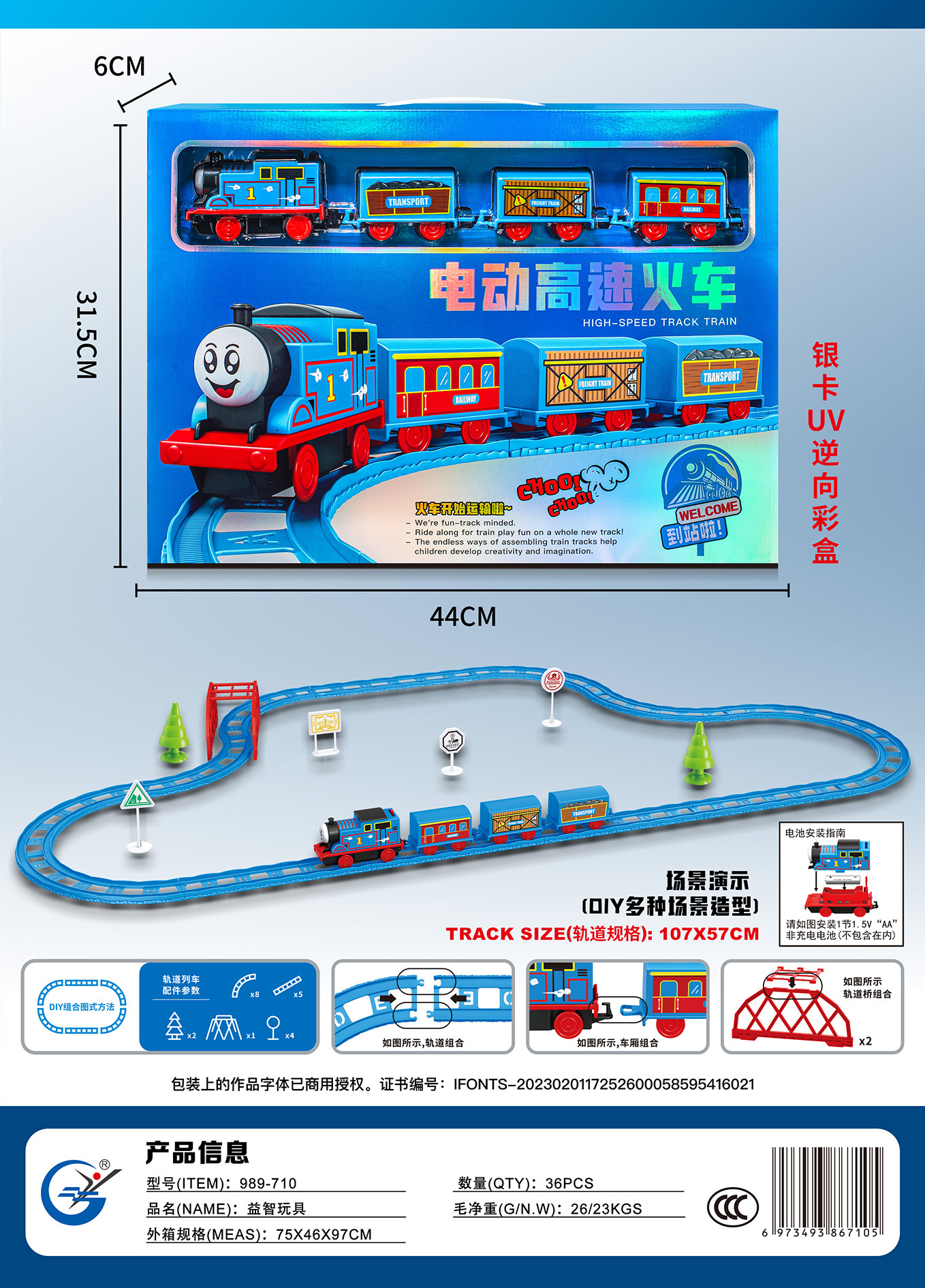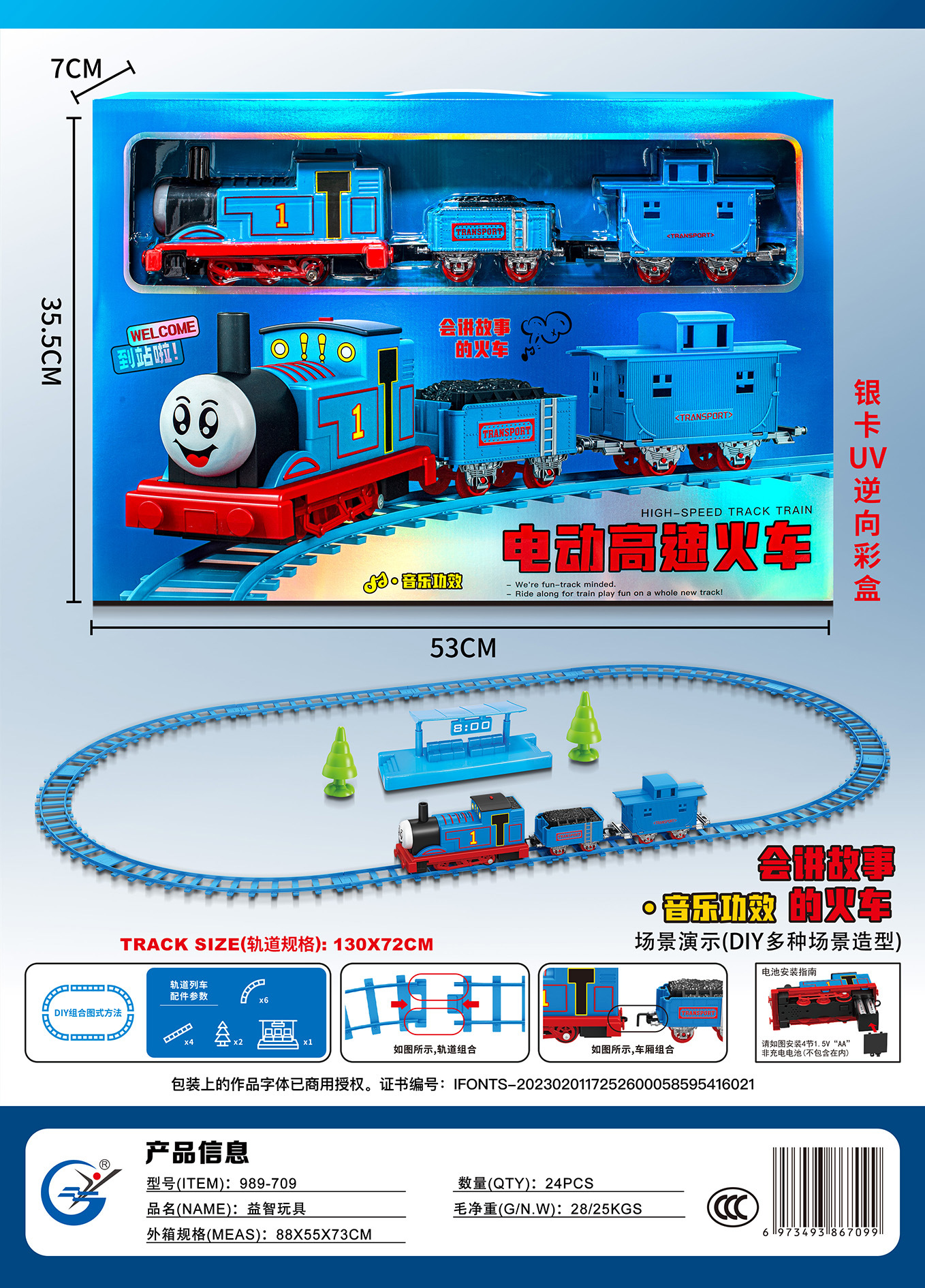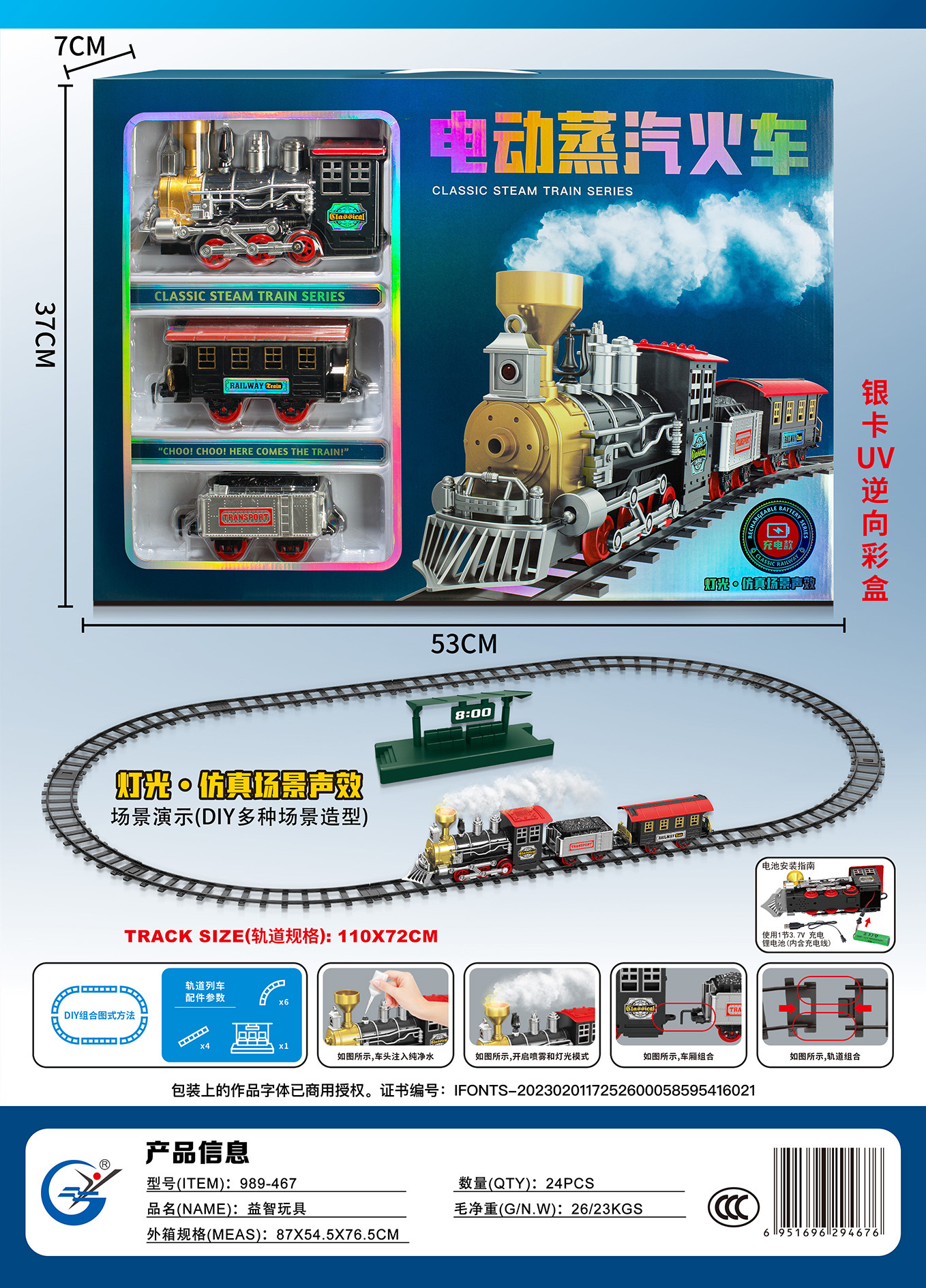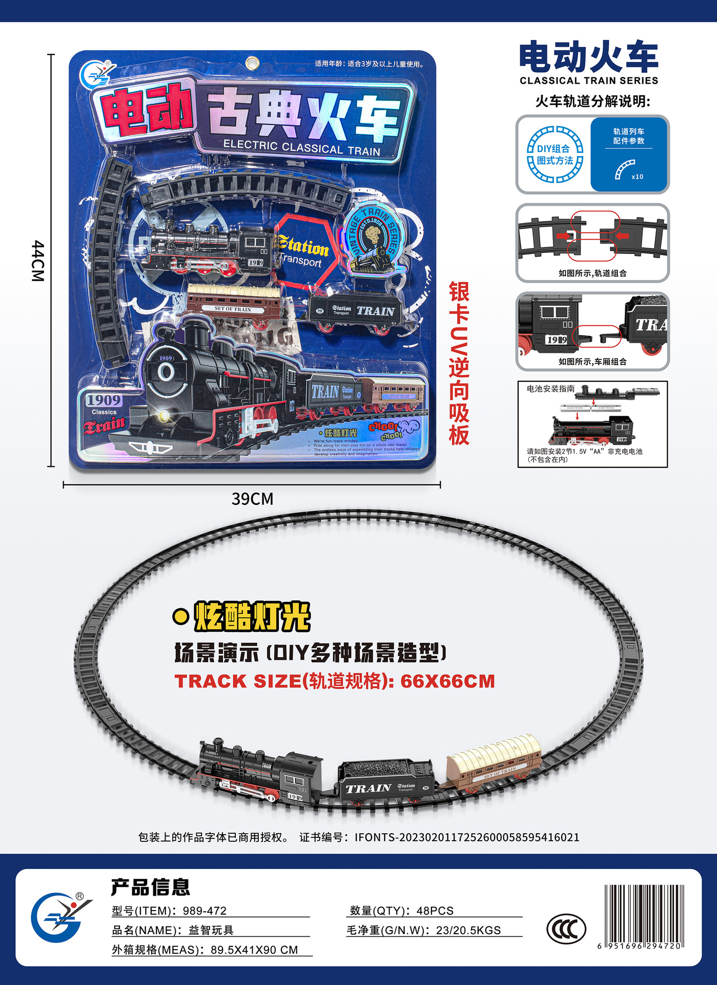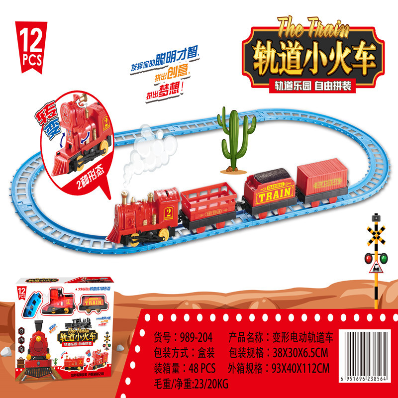 Kereta api mainan klasik Guangyu lintas batas, suara dan cahaya, efek uap, militer, elektrik, rakitan DIY, mainan Natal.