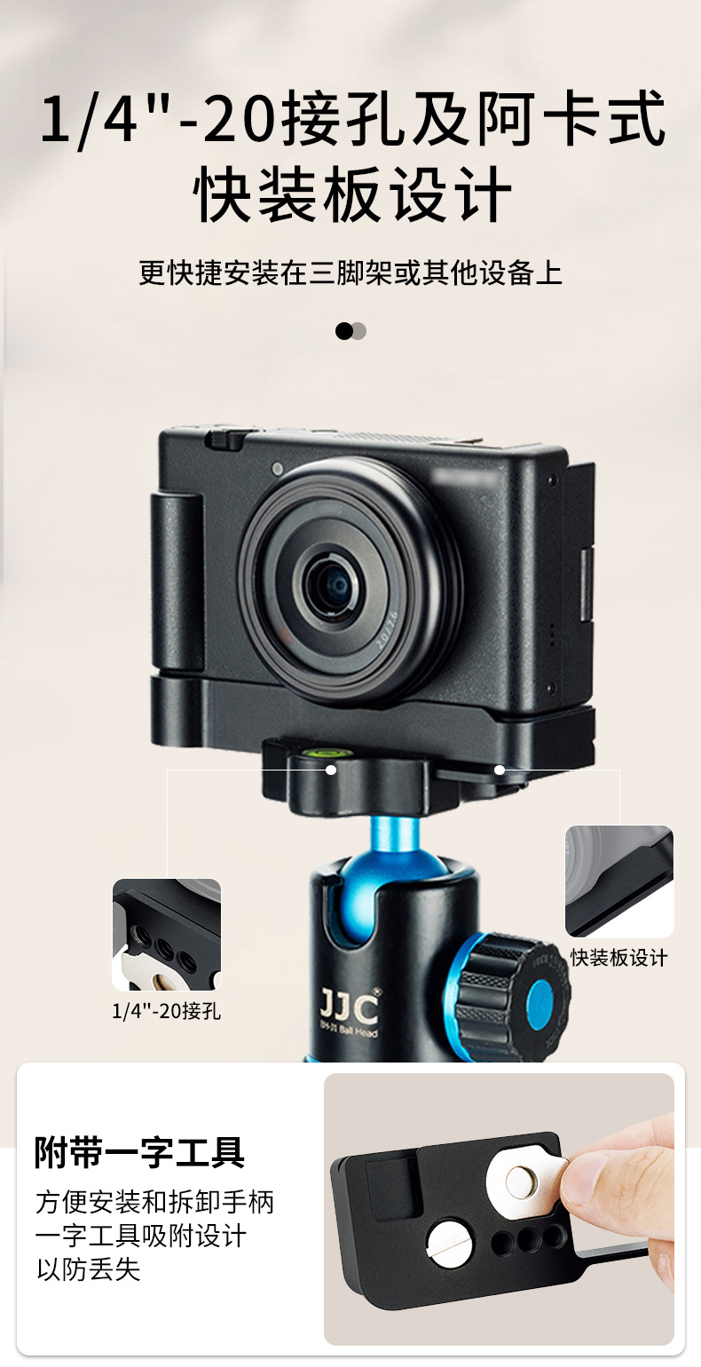 JJC untuk Sony ZV-1F pegangan kamera ZV1F pelat pelepas cepat dasar logam papan raket vertikal