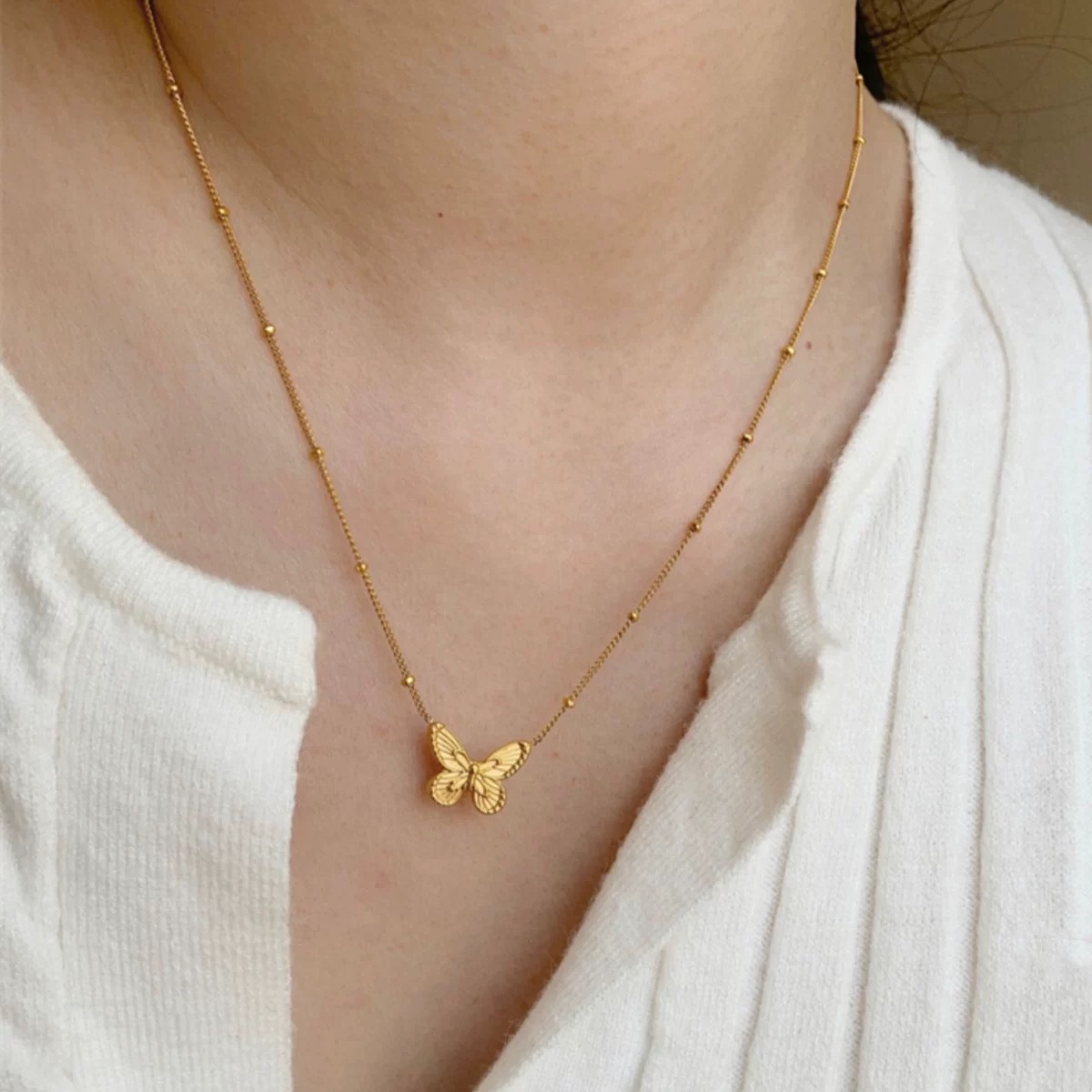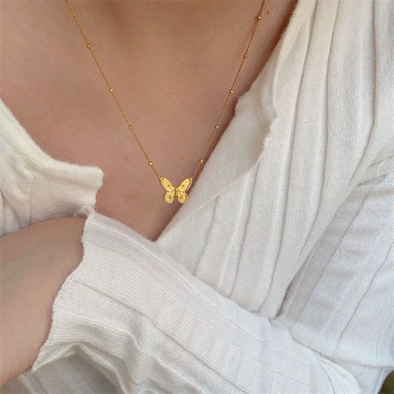 Kalung Tali Tulang Selangka Elegan Mudah Dipadu Padan Modis Berkualitas Tinggi Wanita Kalung Manik-Manik Antara Unsur Kupu-kupu Model Baru Lintas Batas untuk Perhiasan Pacar
