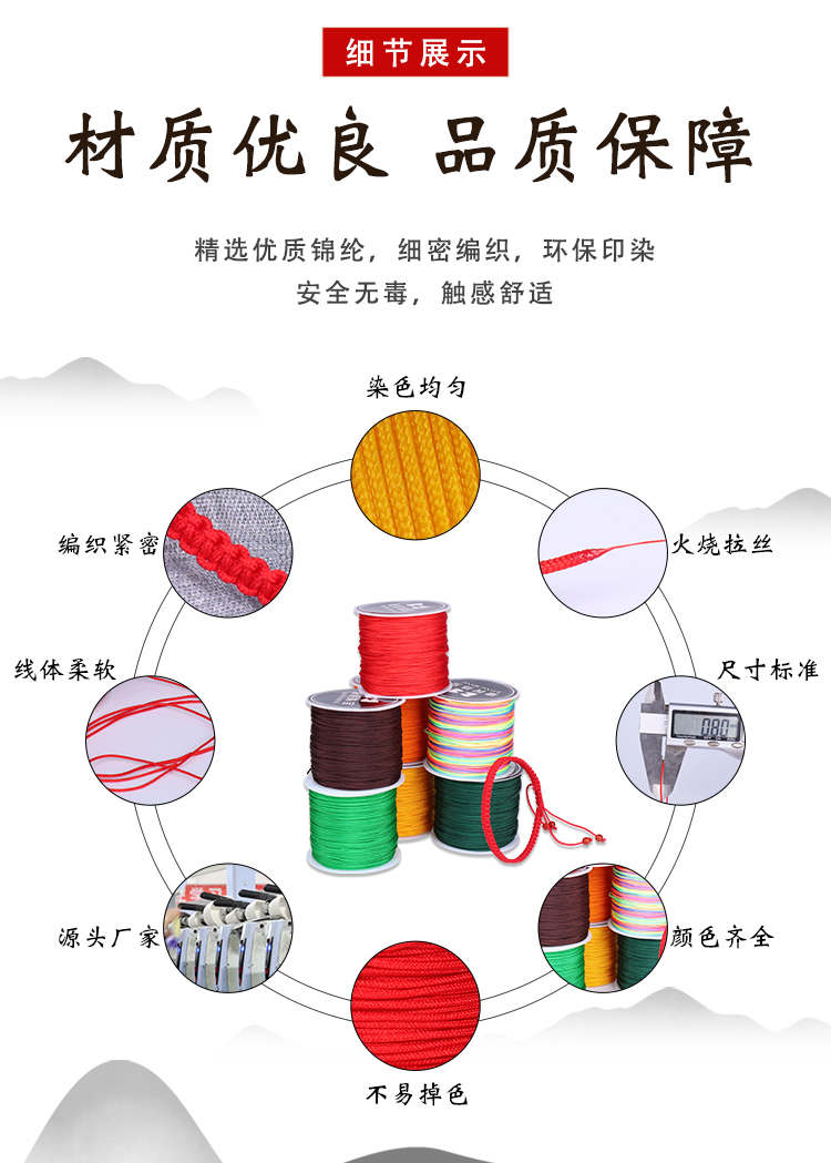 Gelang benang giok No. H6YU72, tali tangan tenun DIY bahan tali tipis tali merah tali tenun tangan manik-manik