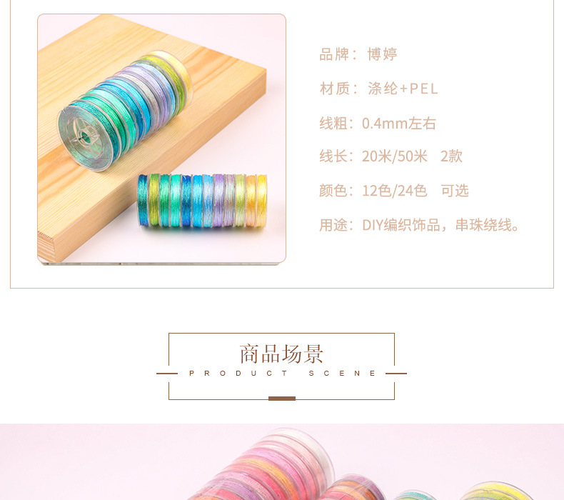 Benang perhiasan diy warna-warni untuk pembuatan giok liontin tali gelang lilit buatan tangan emas dan perak warna ajaib