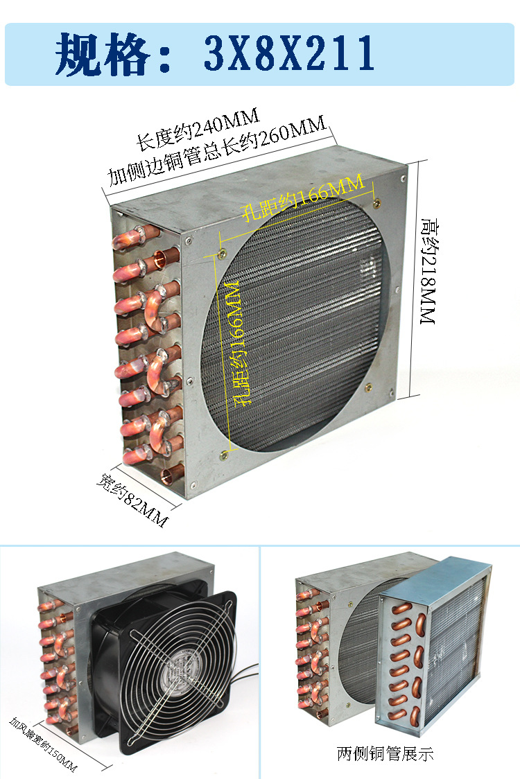Lemari es AC kulkas kecil dengan cangkang tembaga tabung aluminium sirip kondensor dengan kipas pendingin pendingin air