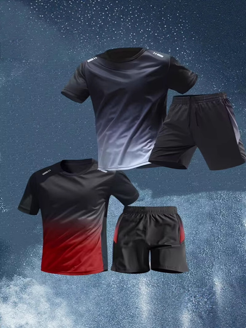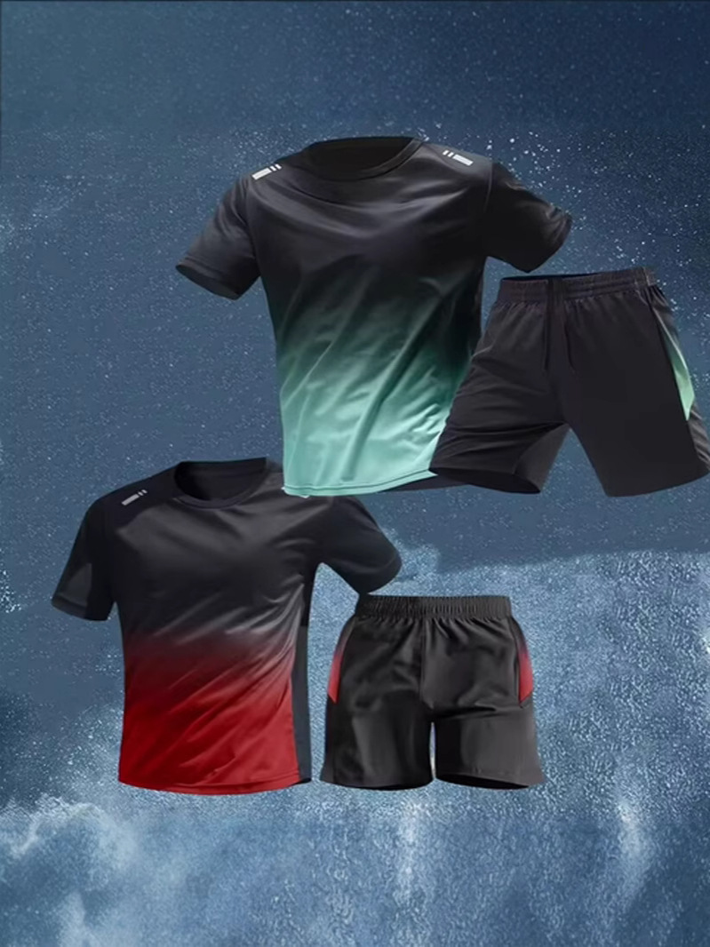 Pakaian Olahraga Eksklusif] T-shirt Lengan Pendek Pria Cepat Kering Model Tipis Celana Pendek Jala Bulu Tangkis Olahraga Jala Pakaian Latihan