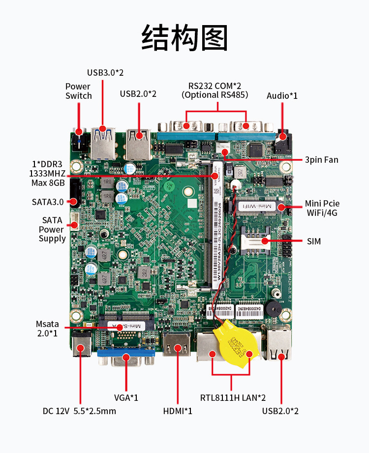 Komputer industri mini Rocknroll N2840 DDR3 jaringan ganda serial ganda tanpa kipas komputer industri mikro edge