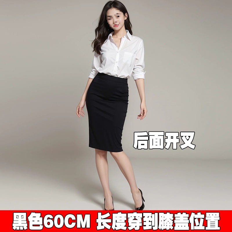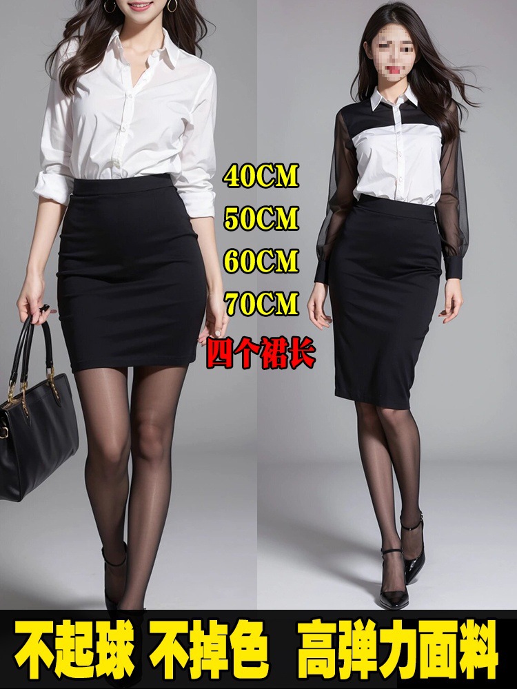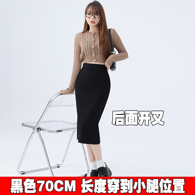 Rok Setengah Badan Komuter Profesional Ukuran Besar Rok Satu Langkah Wanita Rok Bungkus Pinggul Pakaian Elastis Rok Hitam Pinggang Tinggi Wanita Gemuk