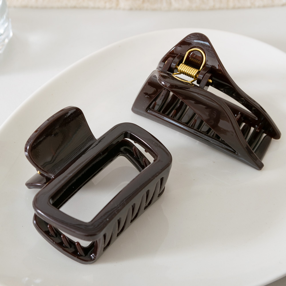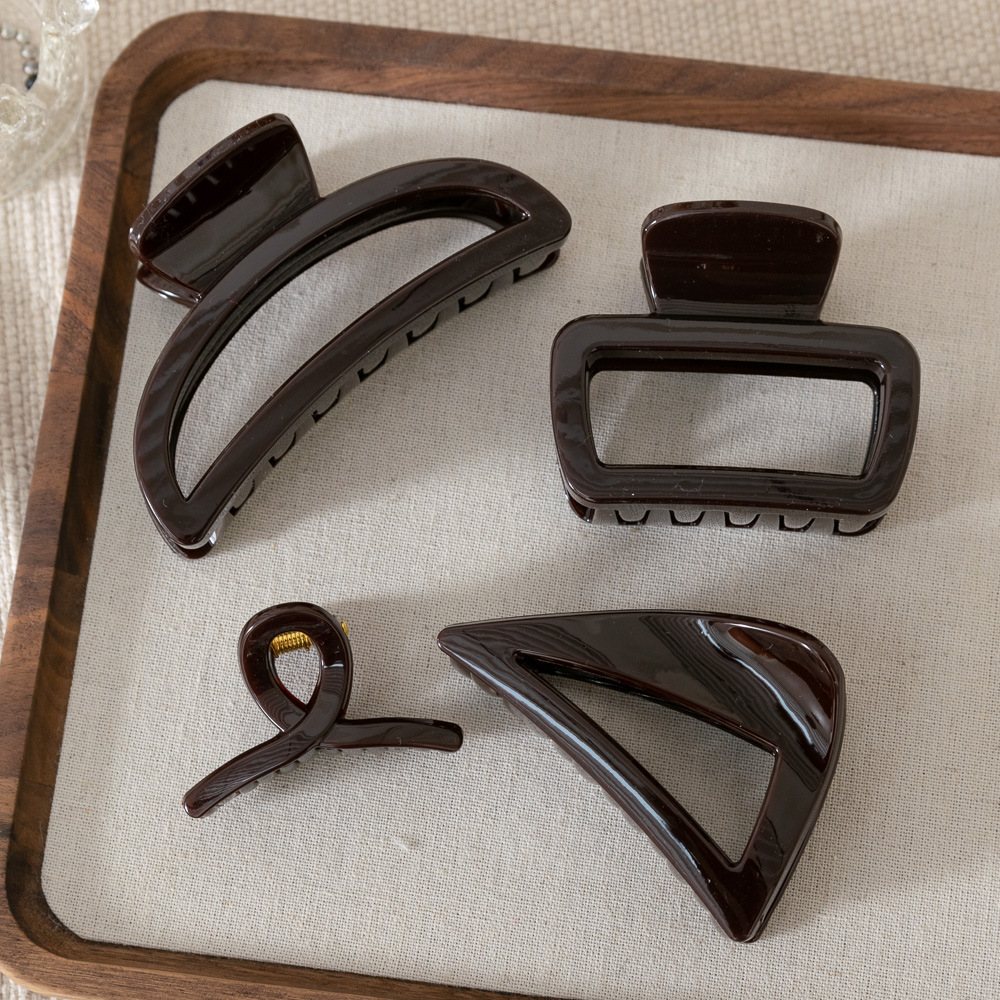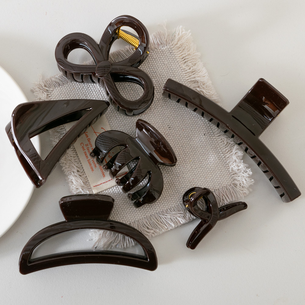 Warna cokelat ~ jepit rambut belakang tebal kelas tinggi pegangan klip hiu silang retro pegangan rambut Korea Selatan semua cocok