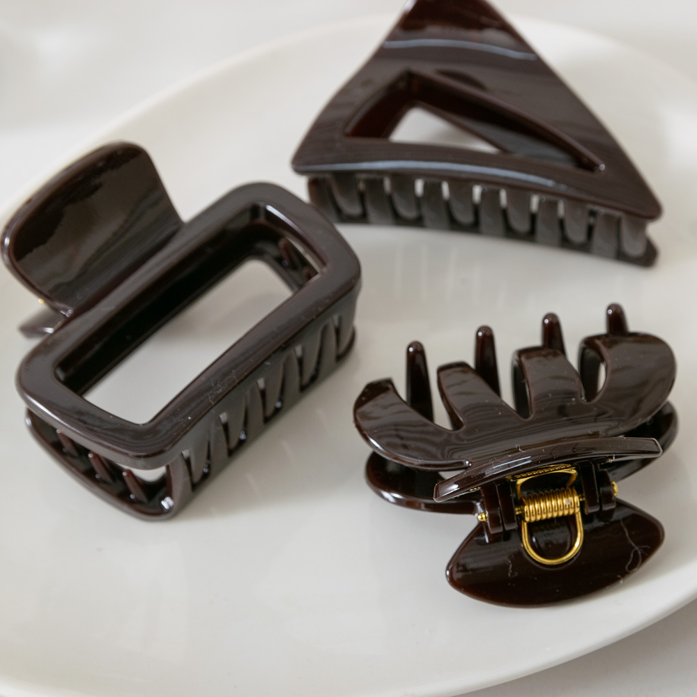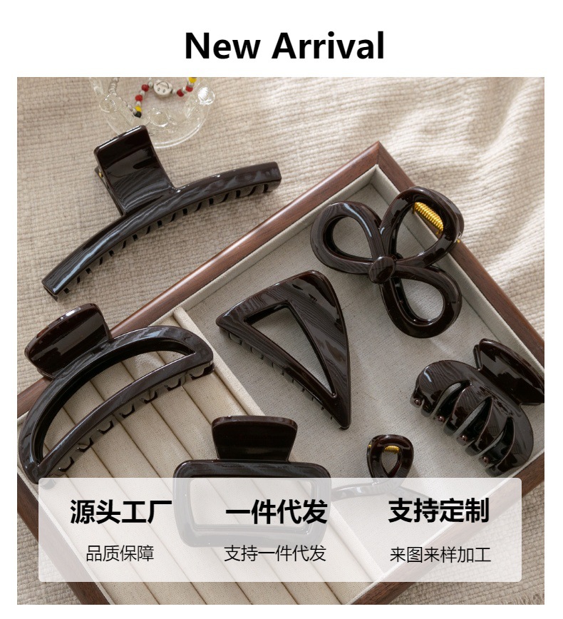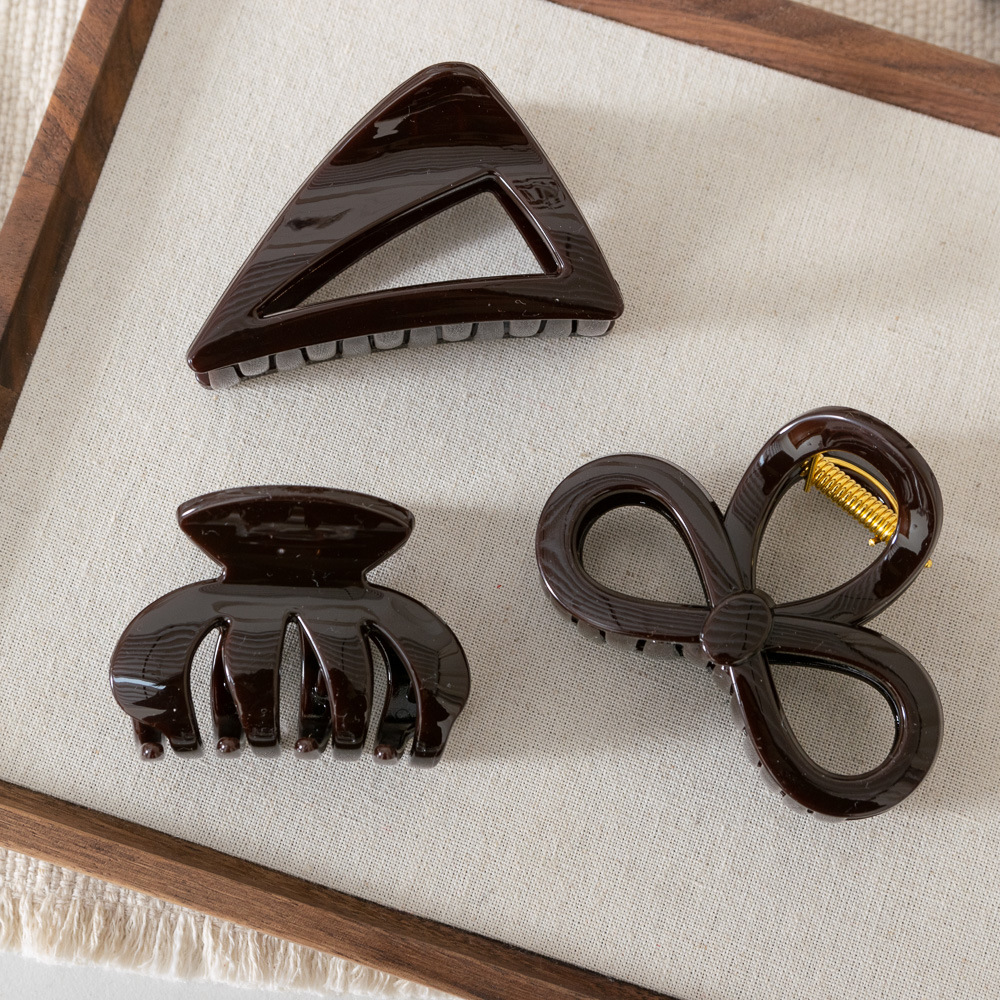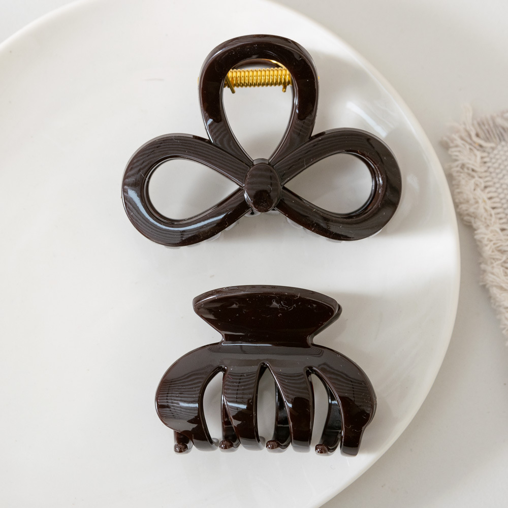 Warna cokelat ~ jepit rambut belakang tebal kelas tinggi pegangan klip hiu silang retro pegangan rambut Korea Selatan semua cocok