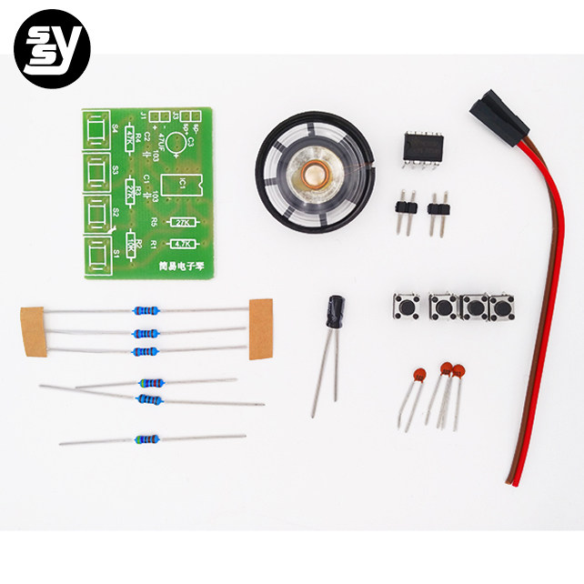 该电路为555的典型多谐振荡器,R1-R5决定振荡频率。其中R1-R4通过按键S1-S4选择分别接入振荡电路中,从而使扬声器BP发出音调不同的振荡声。