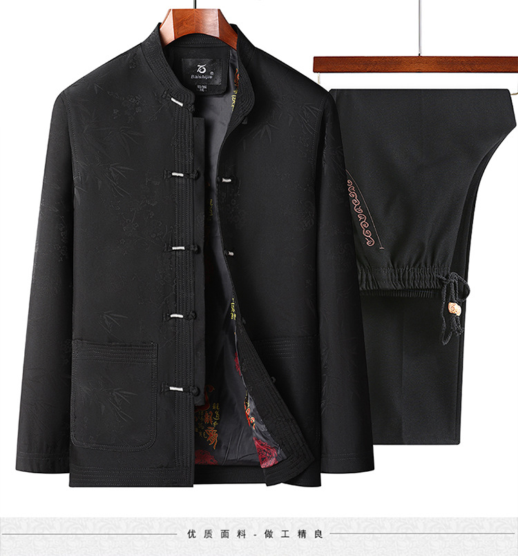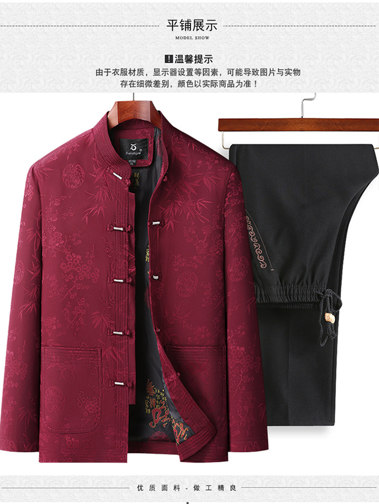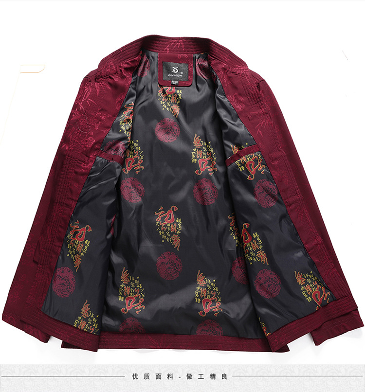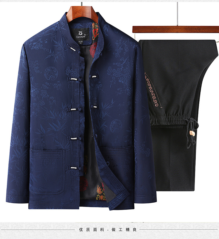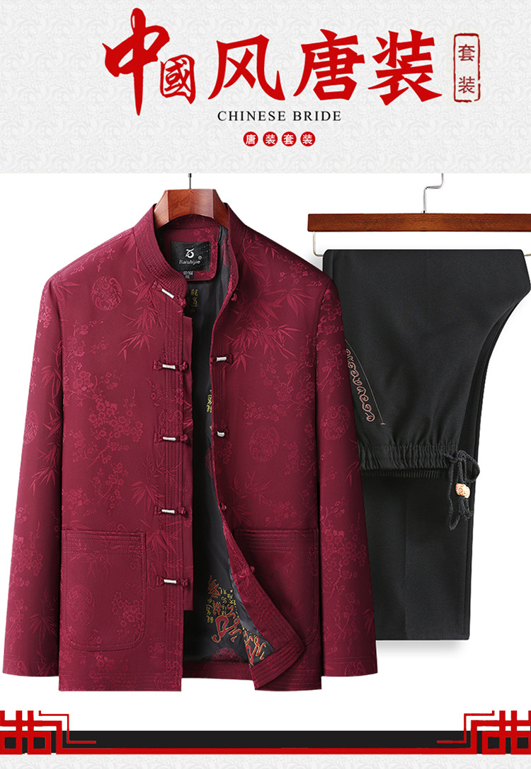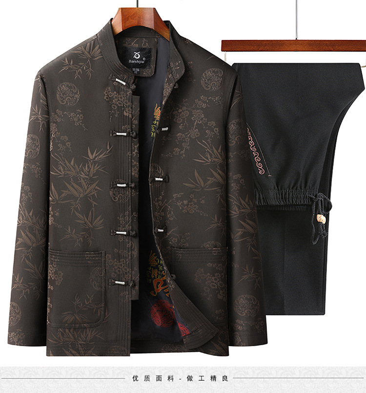Setelan Tang ulang tahun kakek tua, mantel gaya Tiongkok musim gugur dan musim dingin, pakaian ayah Hanfu ayah