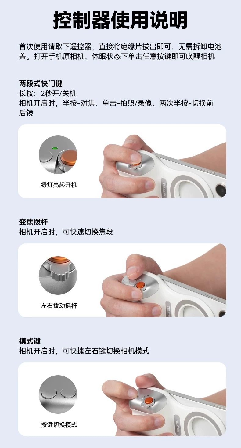 TELESIN Alat Bantu Kamera Multifungsi Taixun Memotret Pegangan Fotografi Ponsel Nirkabel Bluetooth Remote Kontrol Kamera Bantu