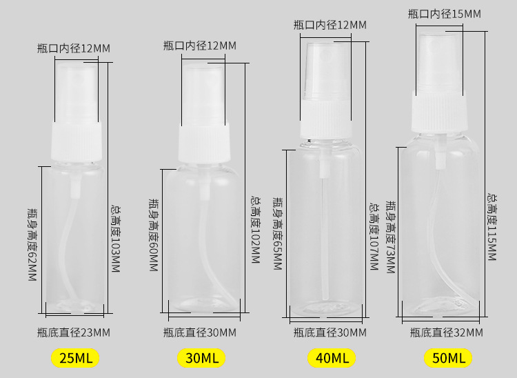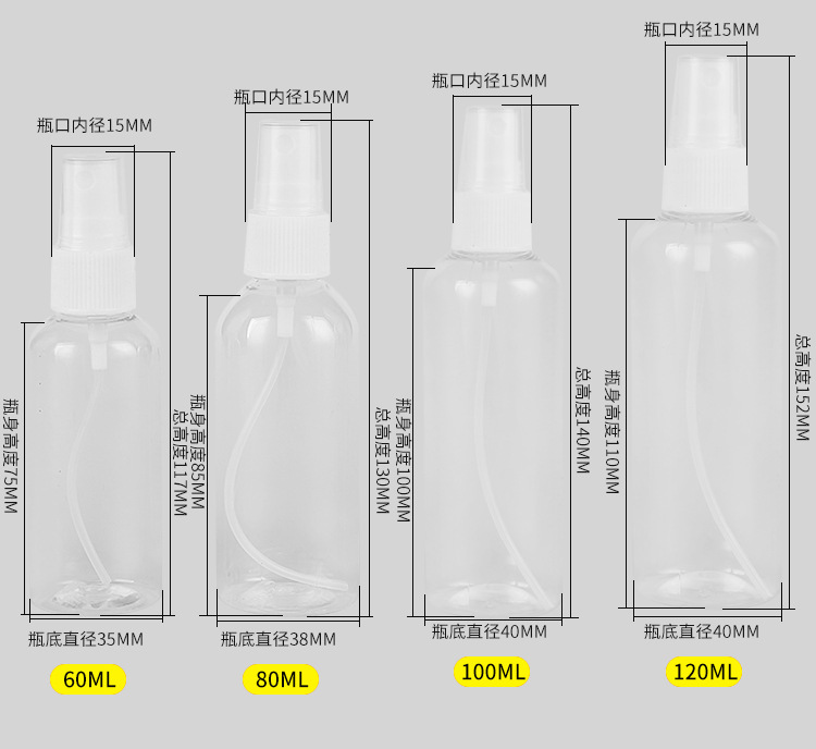 Botol semprot plastik transparan, botol semprot cair, botol semprot plastik transparan, 5ml 10ml 20ml 30ml50ml 100ml