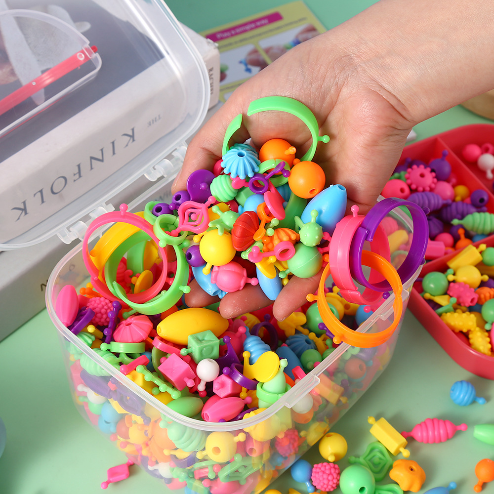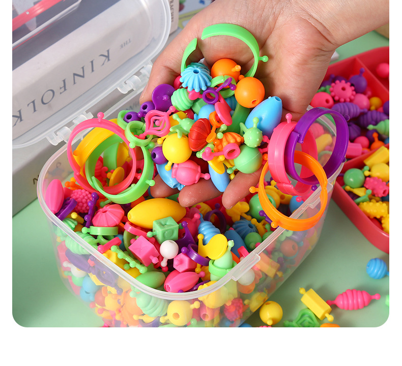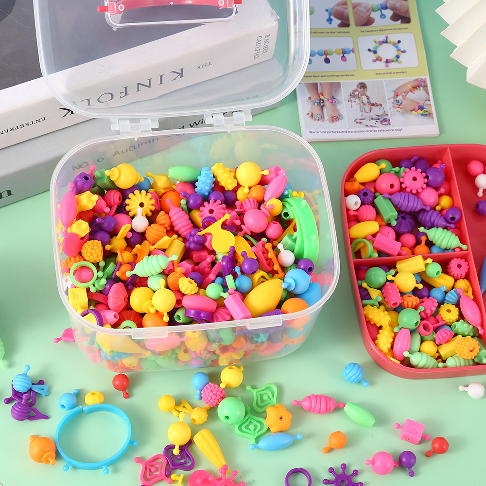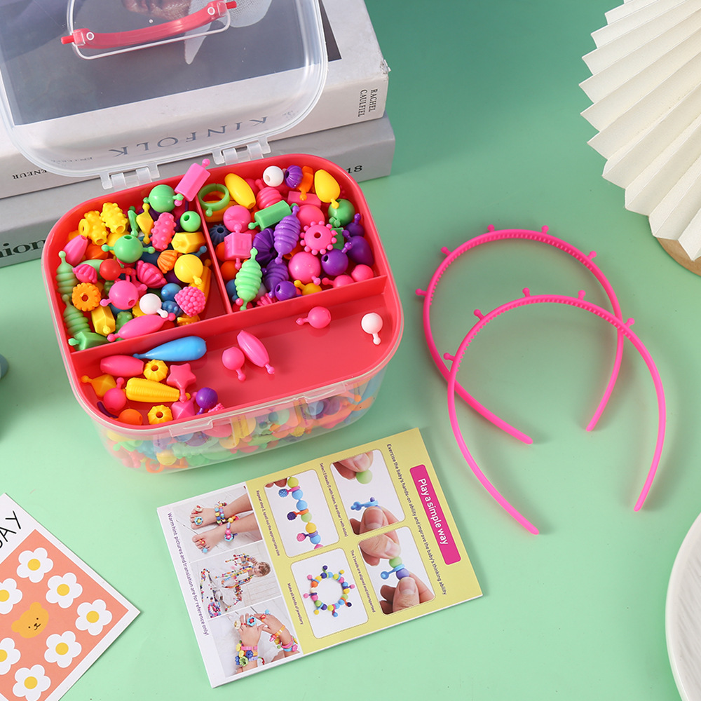 Mainan manik-manik anak-anak DIY set keluarga, kalung dan gelang tanpa kabel serbaguna untuk anak perempuan, merangkai manik-manik untuk latihan amblyopia.