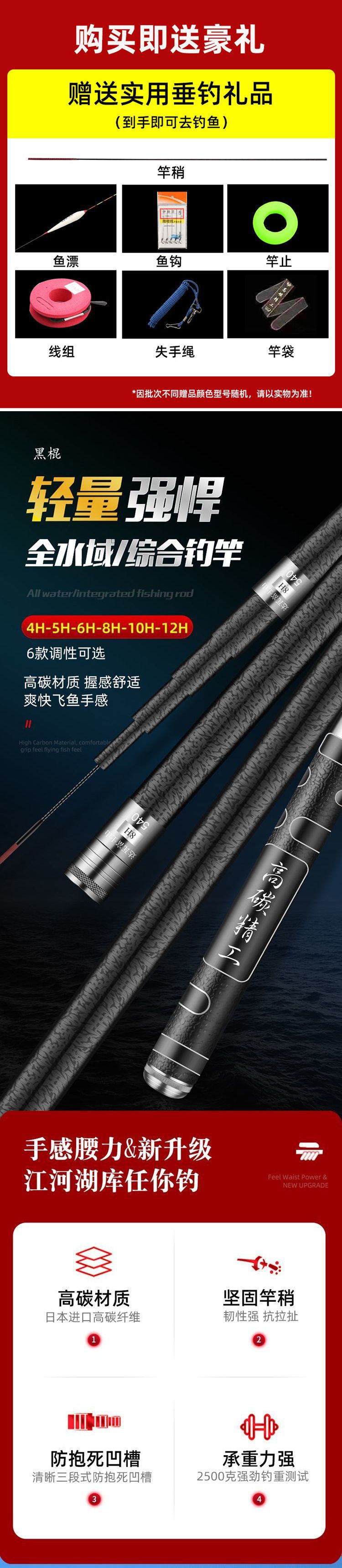Dawa Hitam Batang Pancing Tangan Set Lengkap Satu Karbon Super Ringan Super Keras Pancing Meja Pancing 19 Besar Grosir