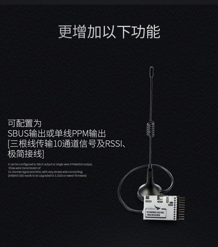 Arkbird一代表现卓越,二代版本更升级了的LoRa™专利技术;升级16通道传输、新增三脚架插口、SBUS接口等细节优化。实测整体性能提高38%左右。