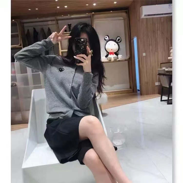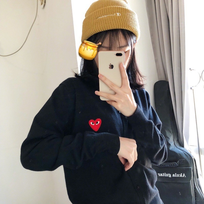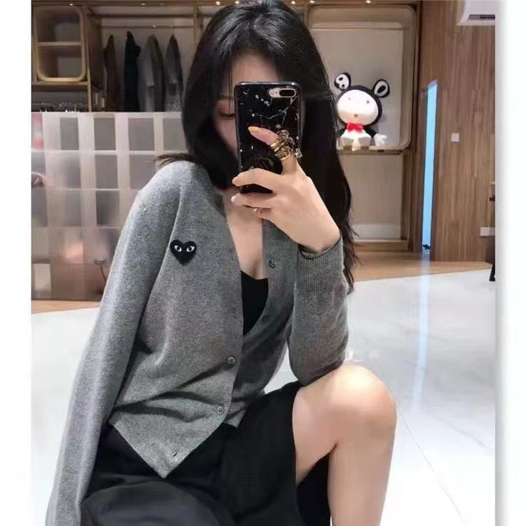 Merek Trendi Chuanjiu Sweater Sweater Kardigan Pria Wanita Pakaian Pasangan Bermain Longgar Model Pendek Baoling Jaket Wol Hati