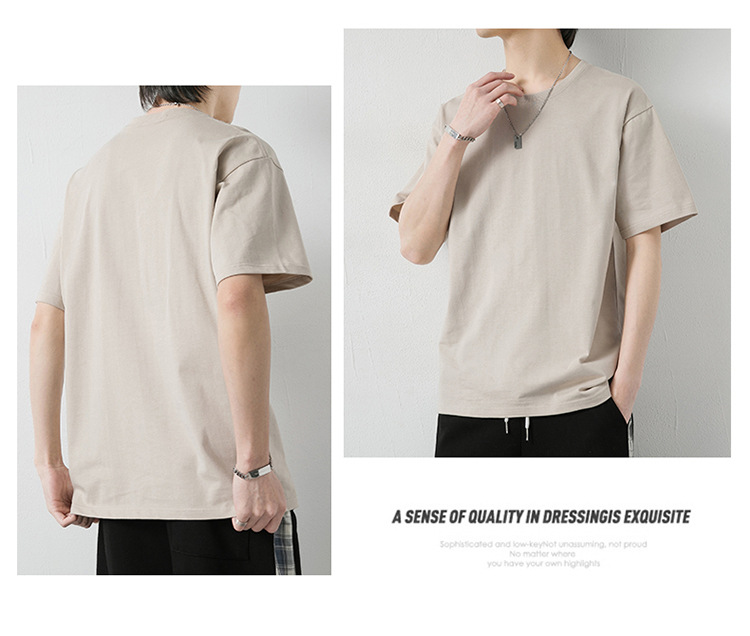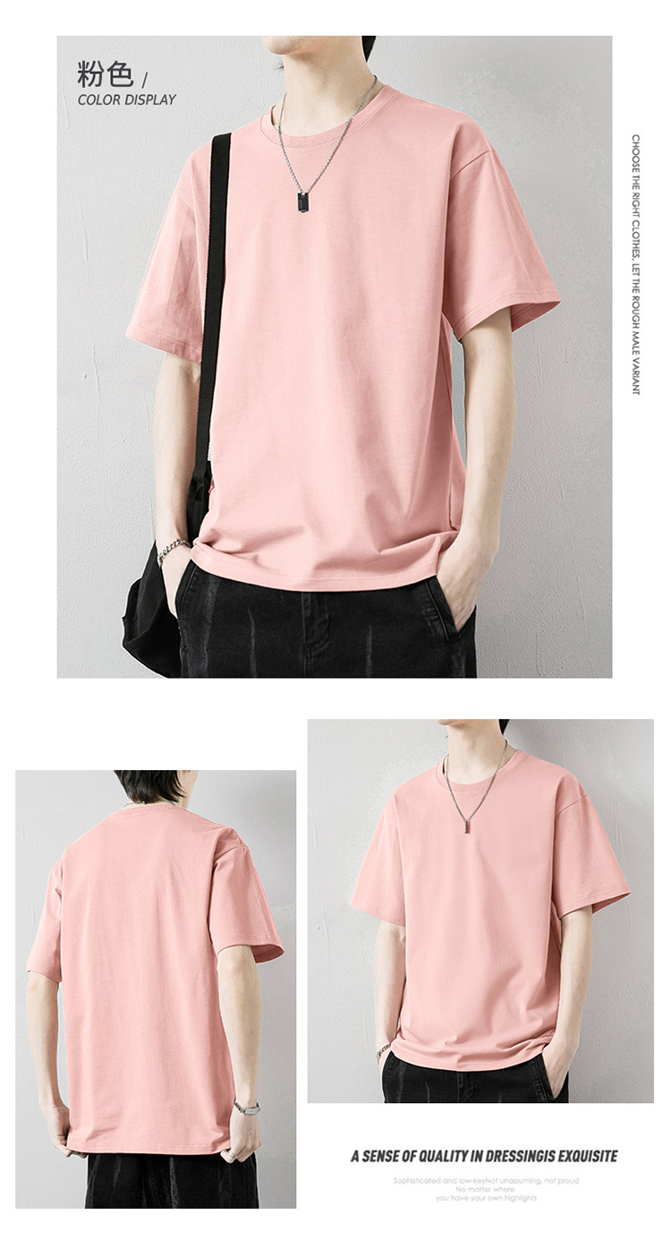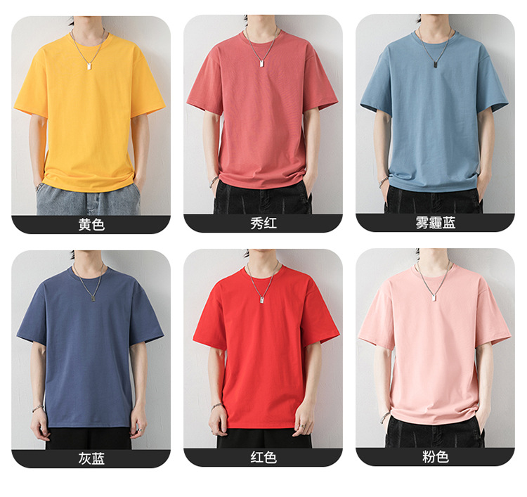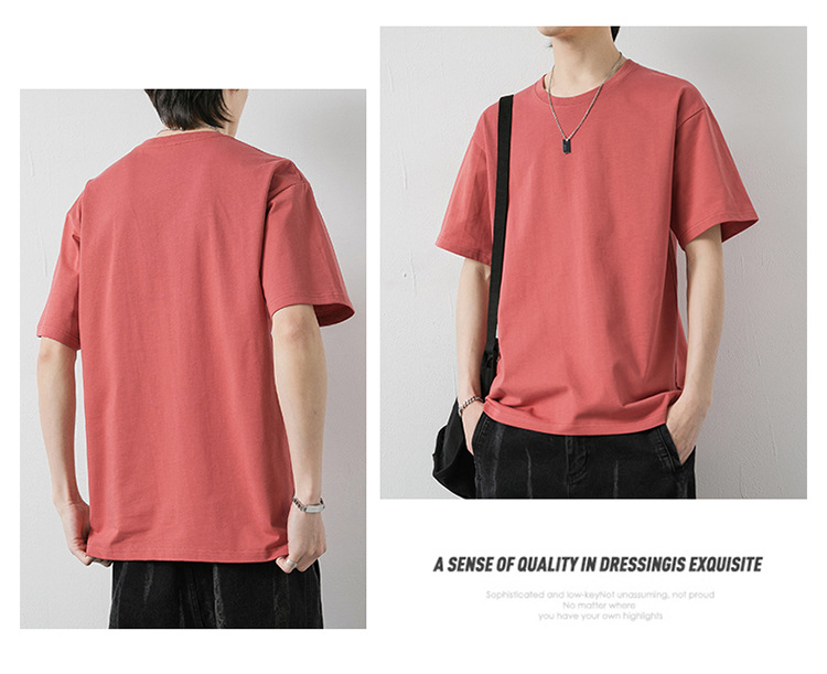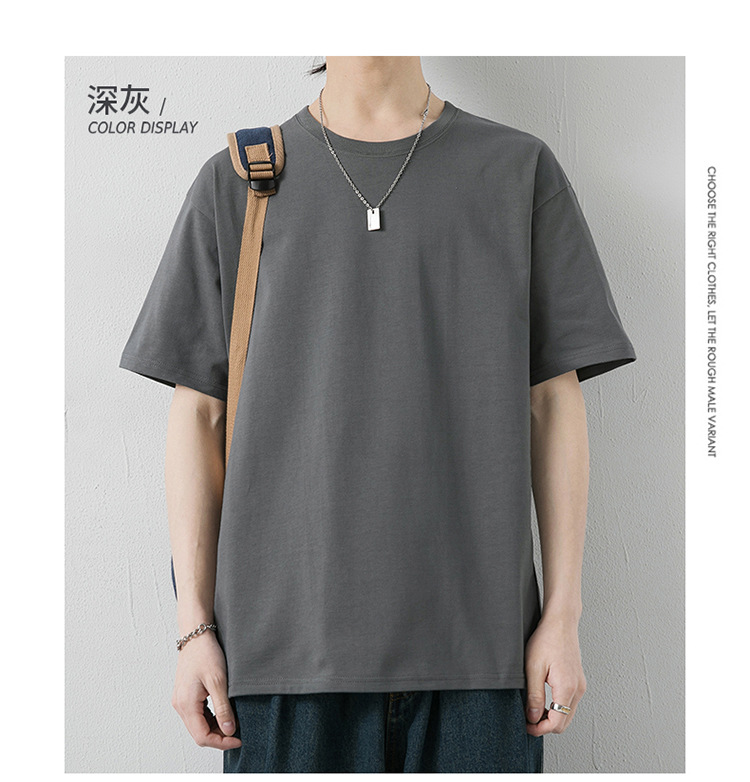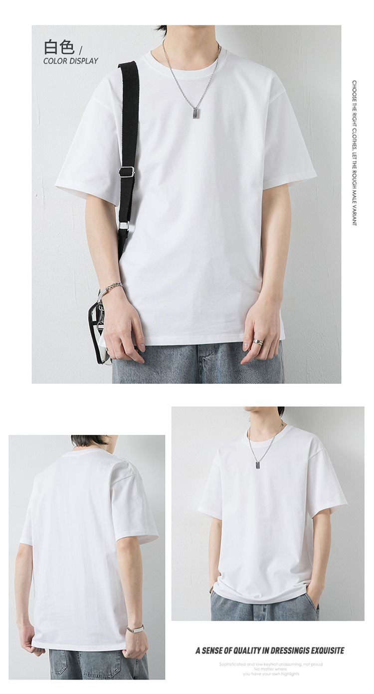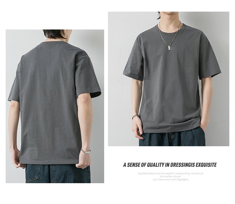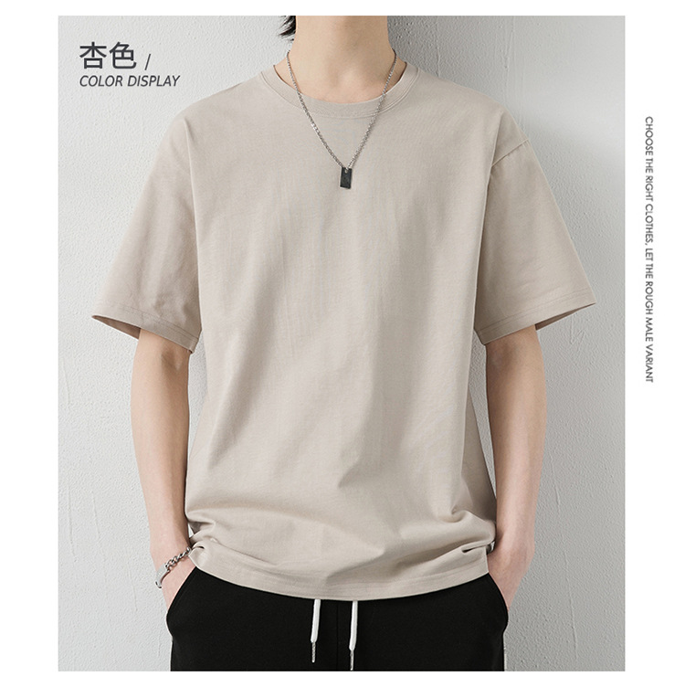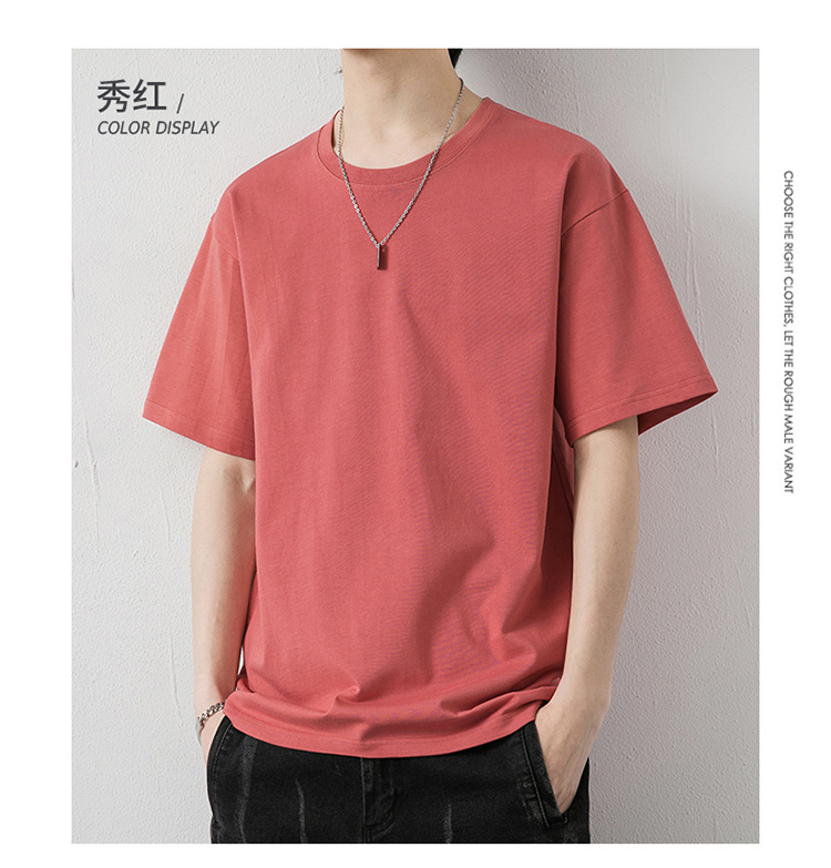 T-Shirt Lengan Pendek Katun Murni T-Shirt Longgar Gaya Hongkong T-Shirt Lengan Pendek Berkualitas Tinggi Ukuran Besar 12 Warna Katun Sisir Kecil