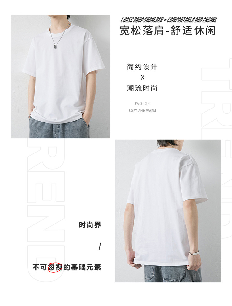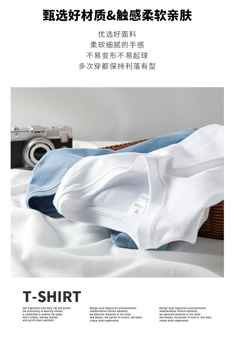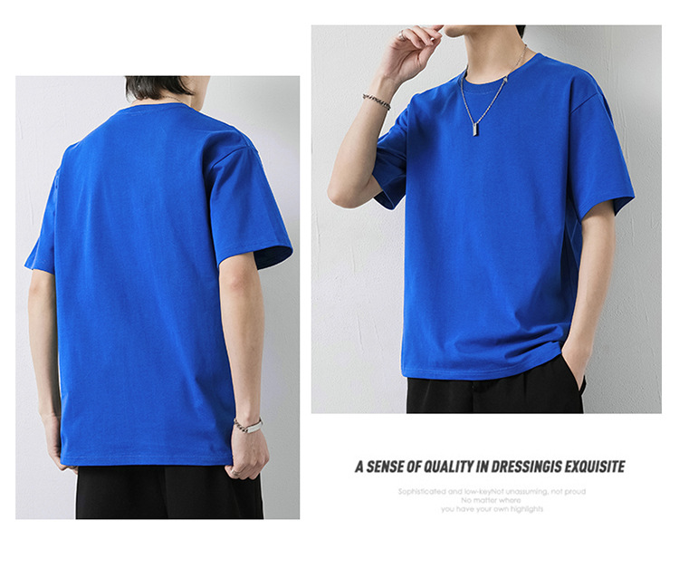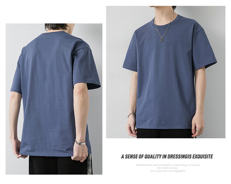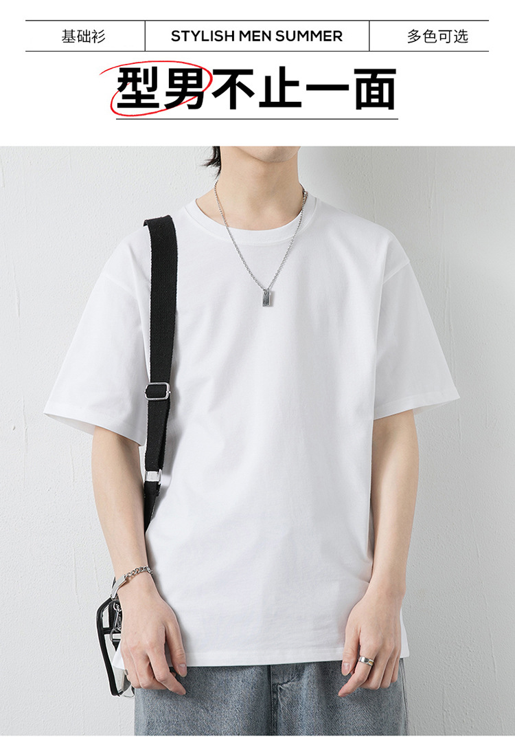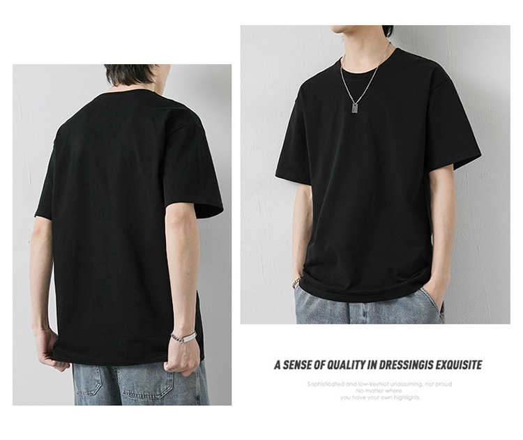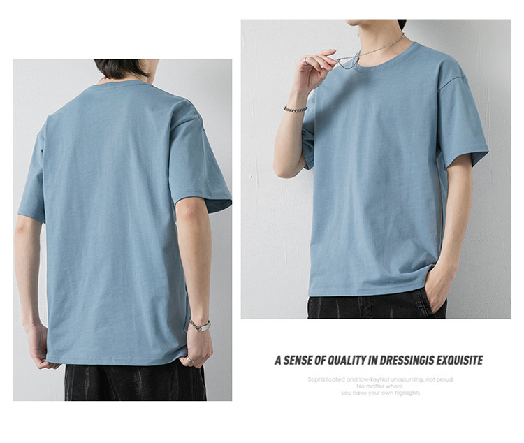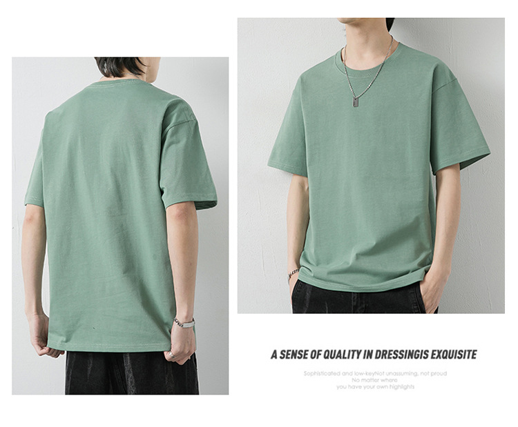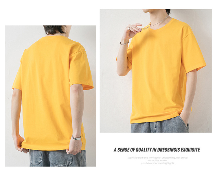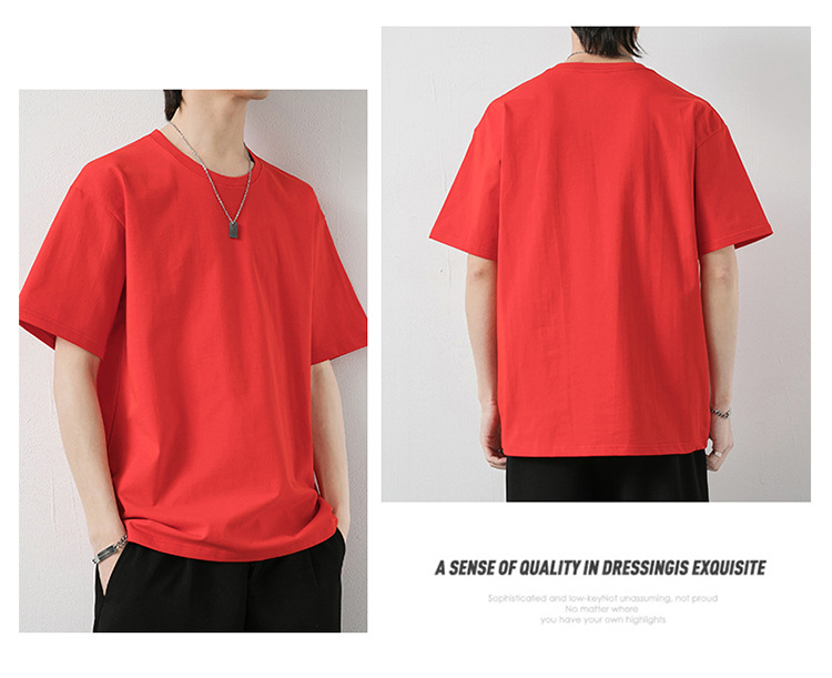 T-Shirt Lengan Pendek Katun Murni T-Shirt Longgar Gaya Hongkong T-Shirt Lengan Pendek Berkualitas Tinggi Ukuran Besar 12 Warna Katun Sisir Kecil