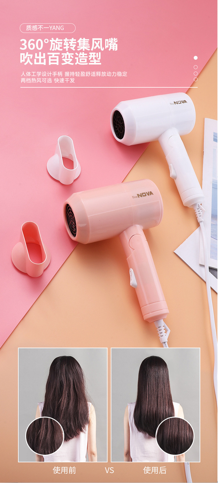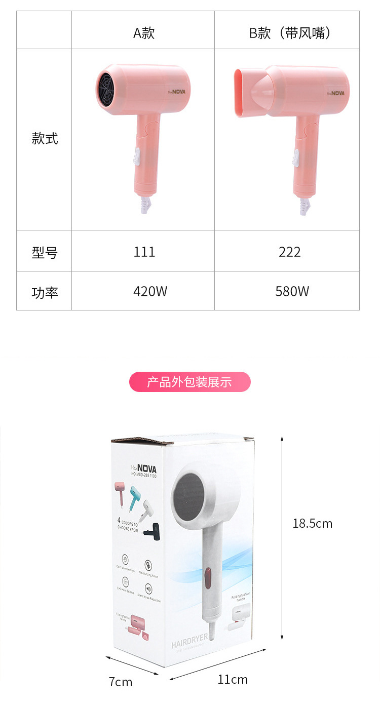 Pengering rambut rumah tangga pengering rambut asrama siswa pengering rambut lipat panas dan dingin suhu konstan portabel