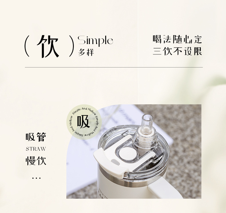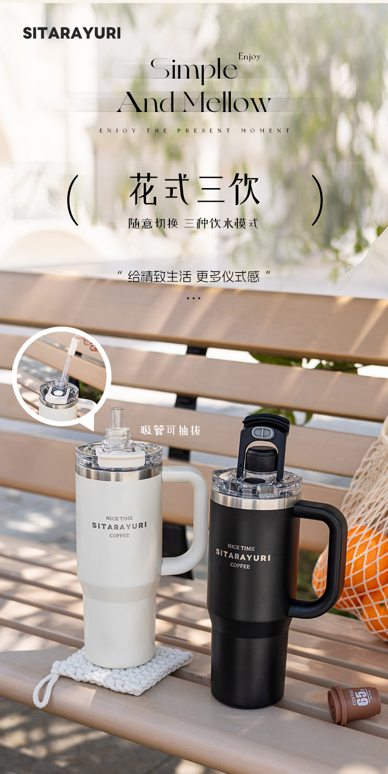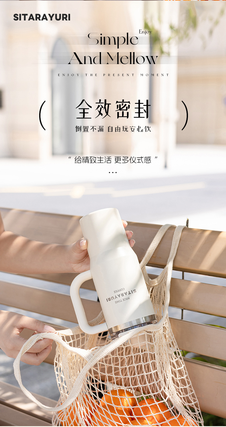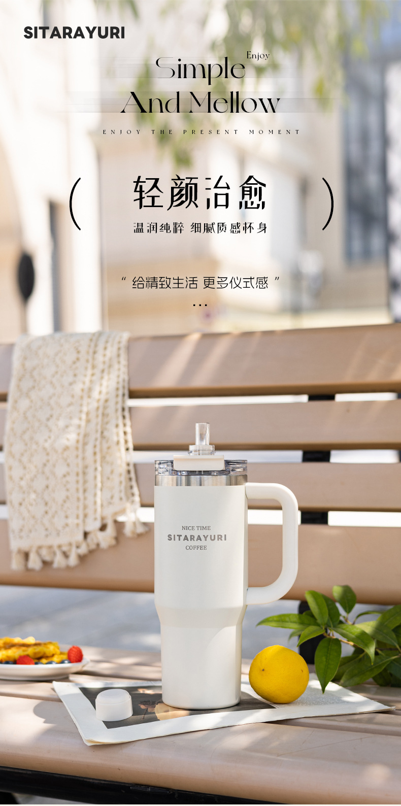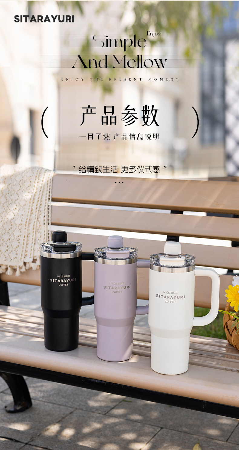 Bingba Gelas Air Wanita Gelas Air Nilai Wajah Tinggi Gelas Sedotan Kapasitas Besar Dengan Pegangan Mobil Botol Minum Ganda Portabel untuk Dingin