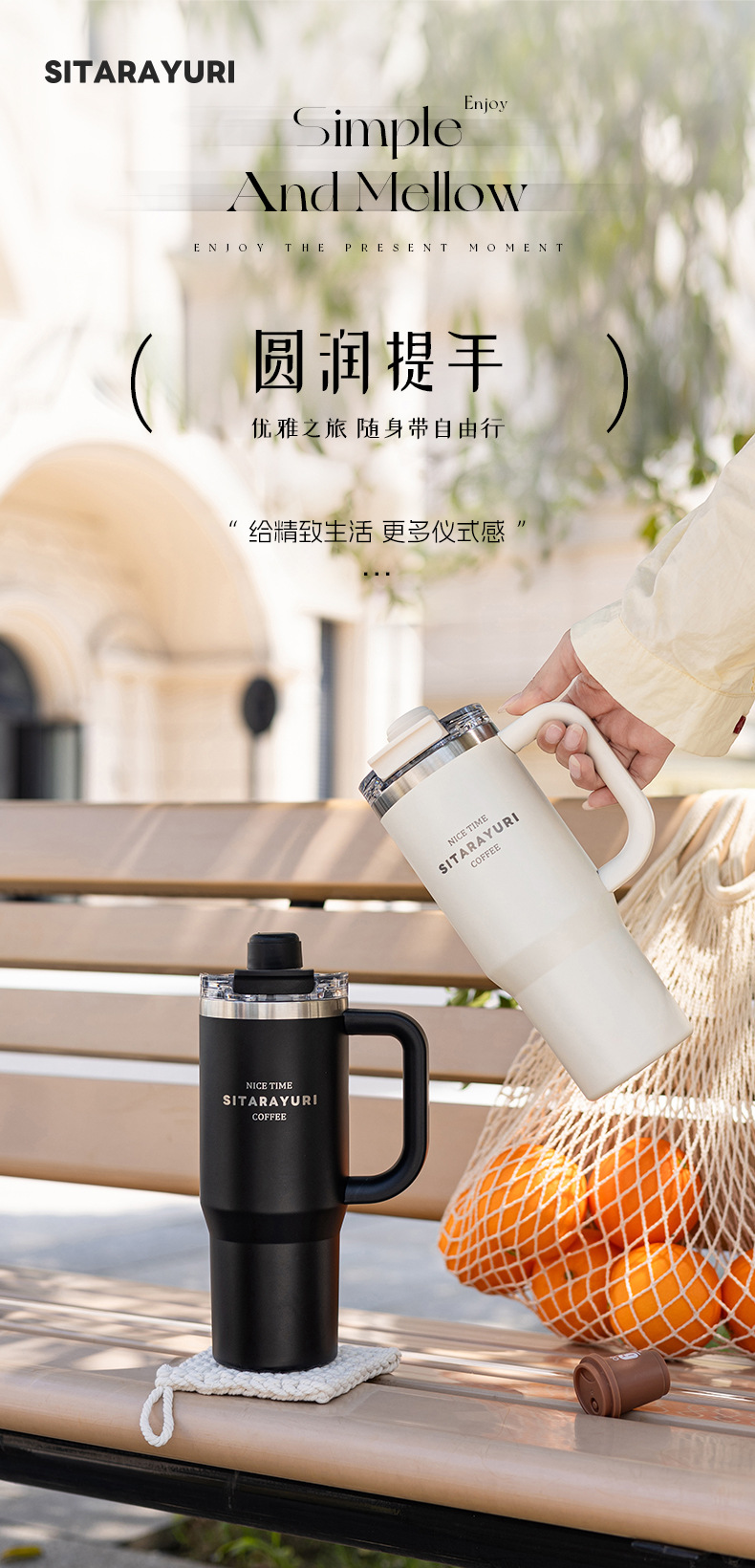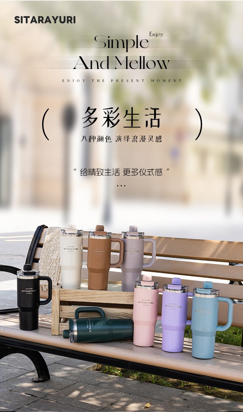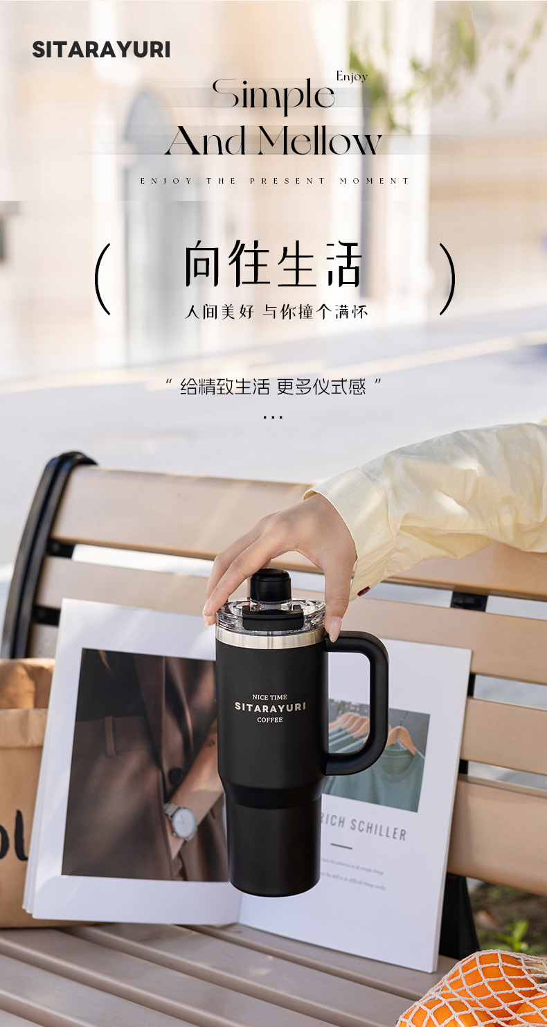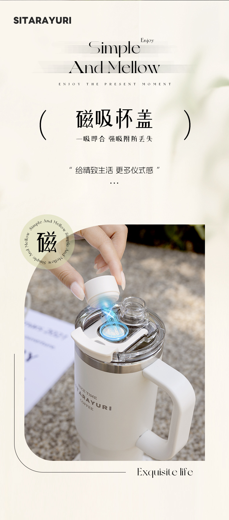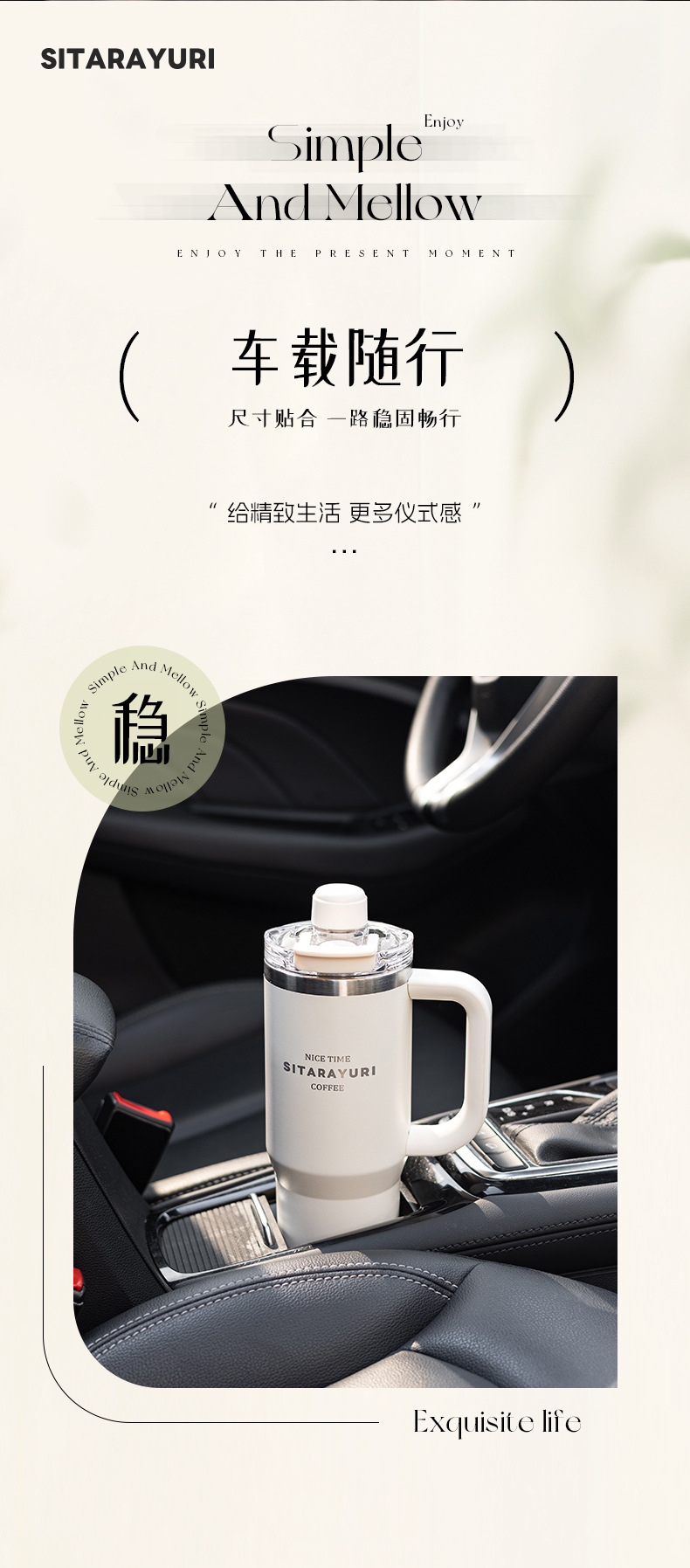 Bingba Gelas Air Wanita Gelas Air Nilai Wajah Tinggi Gelas Sedotan Kapasitas Besar Dengan Pegangan Mobil Botol Minum Ganda Portabel untuk Dingin