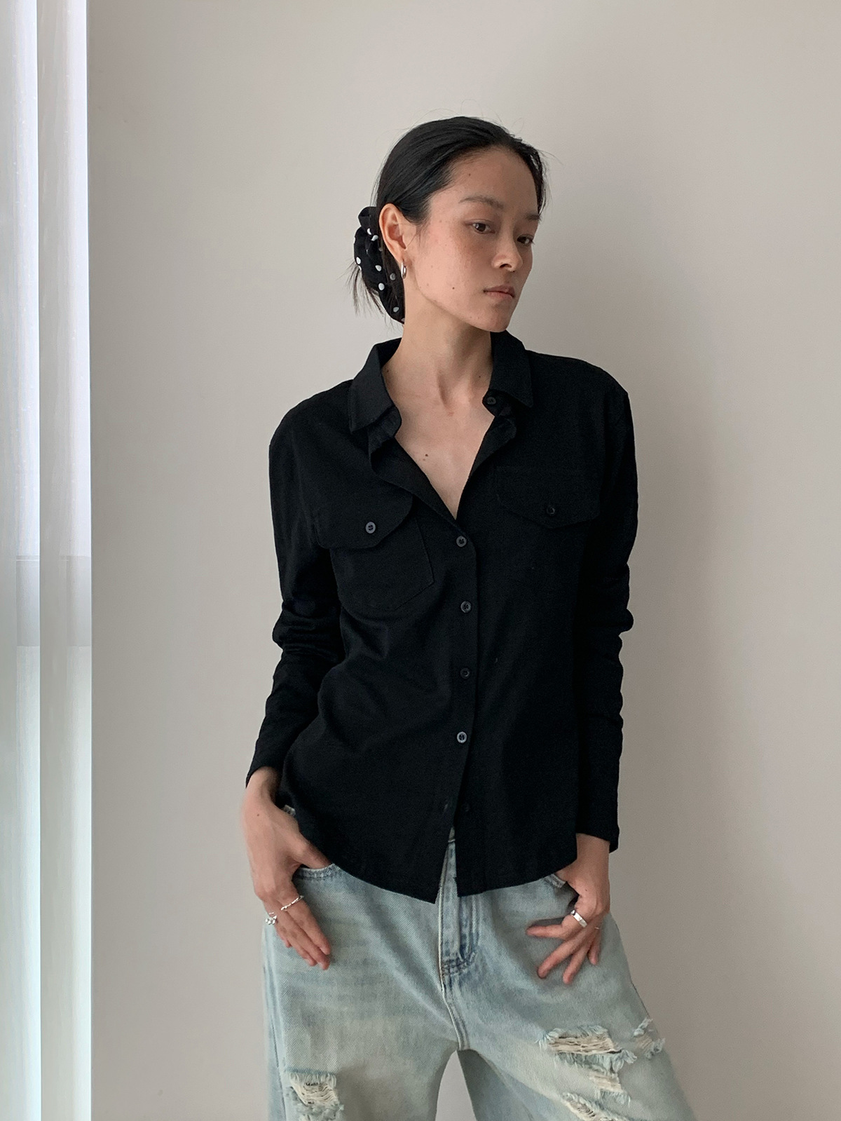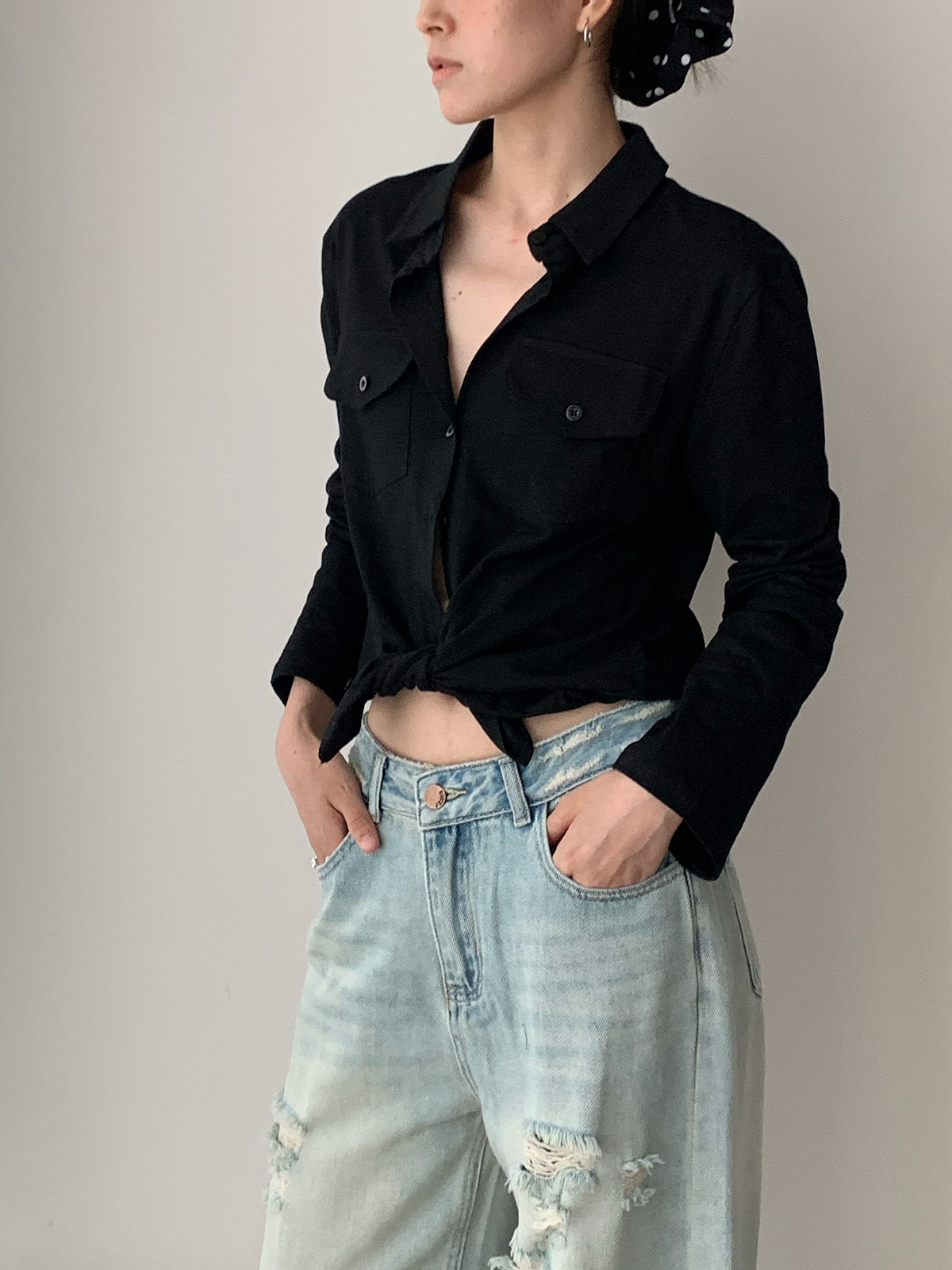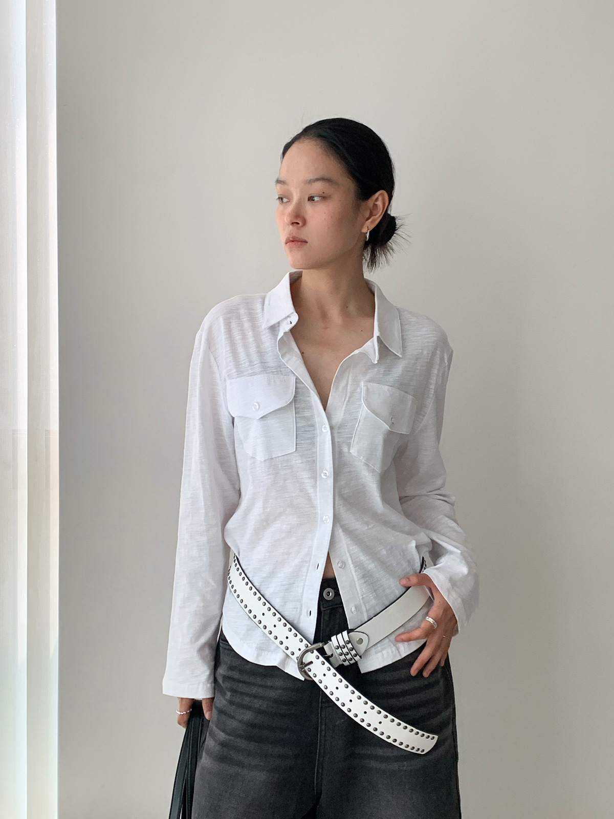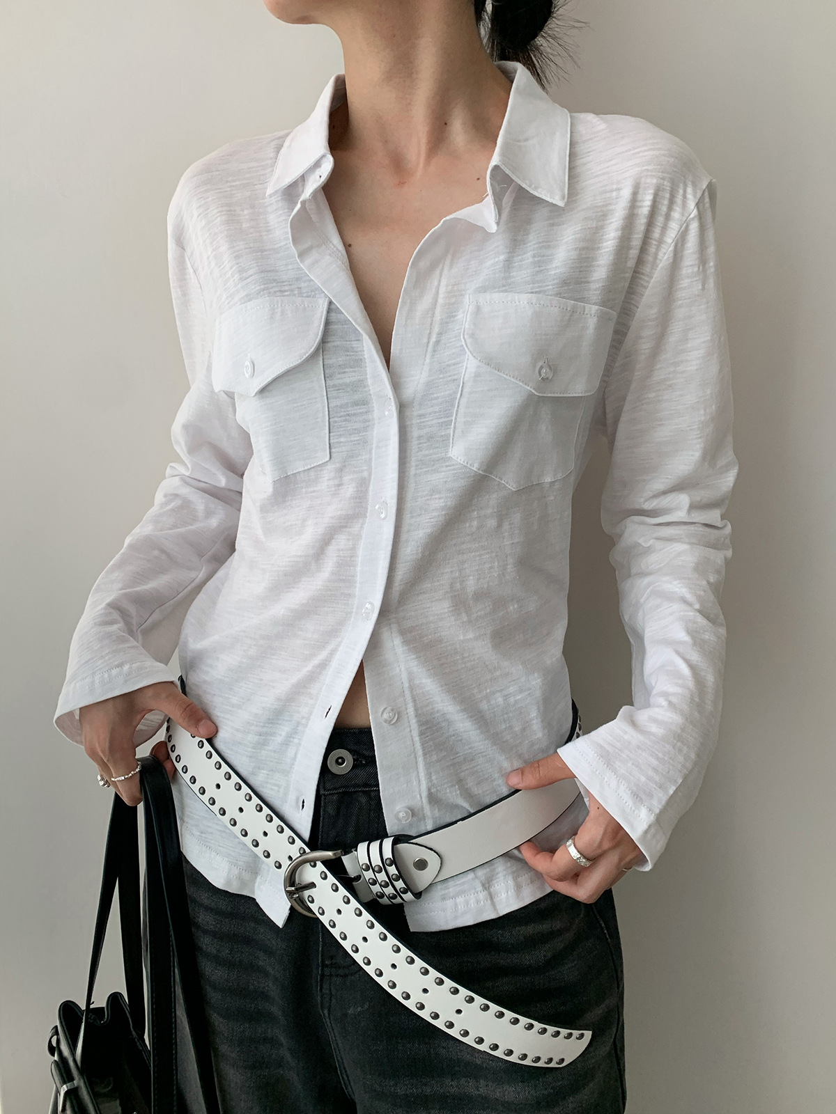 Dorothy Kemeja Wanita Terlihat Langsing Lengan Panjang Mudah Dipadu Padan Lembut Desain Kantong Satu Baris Model Tipis Korea Produk Baru Musim Panas
