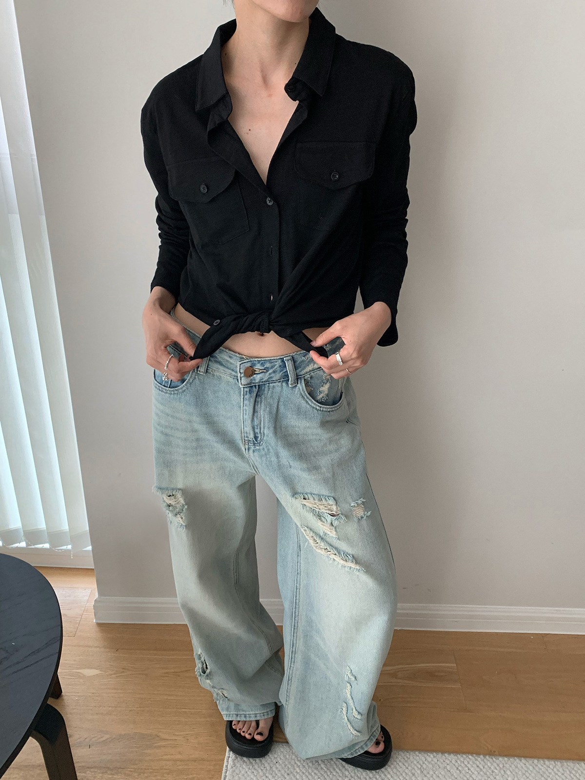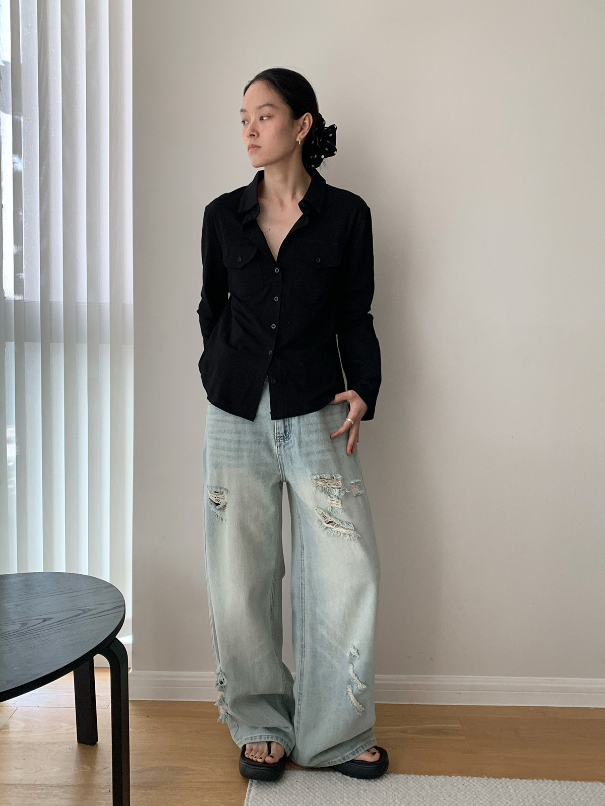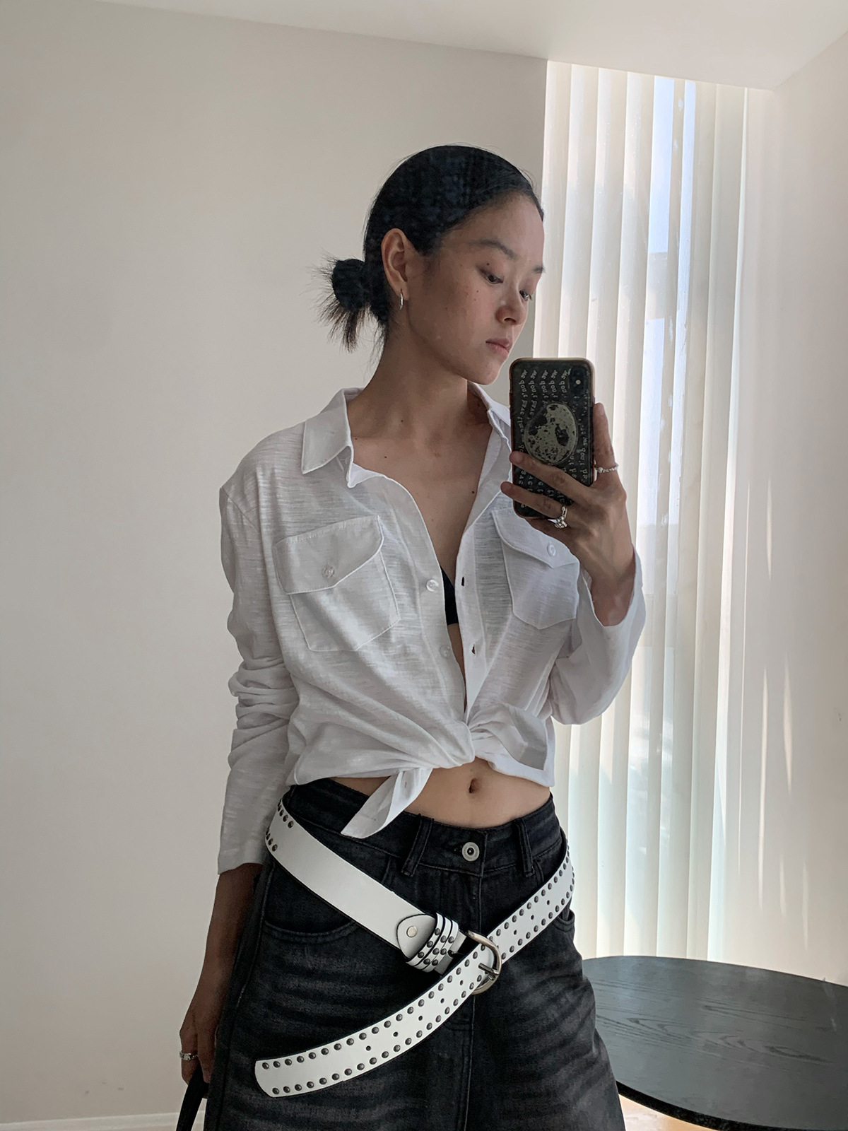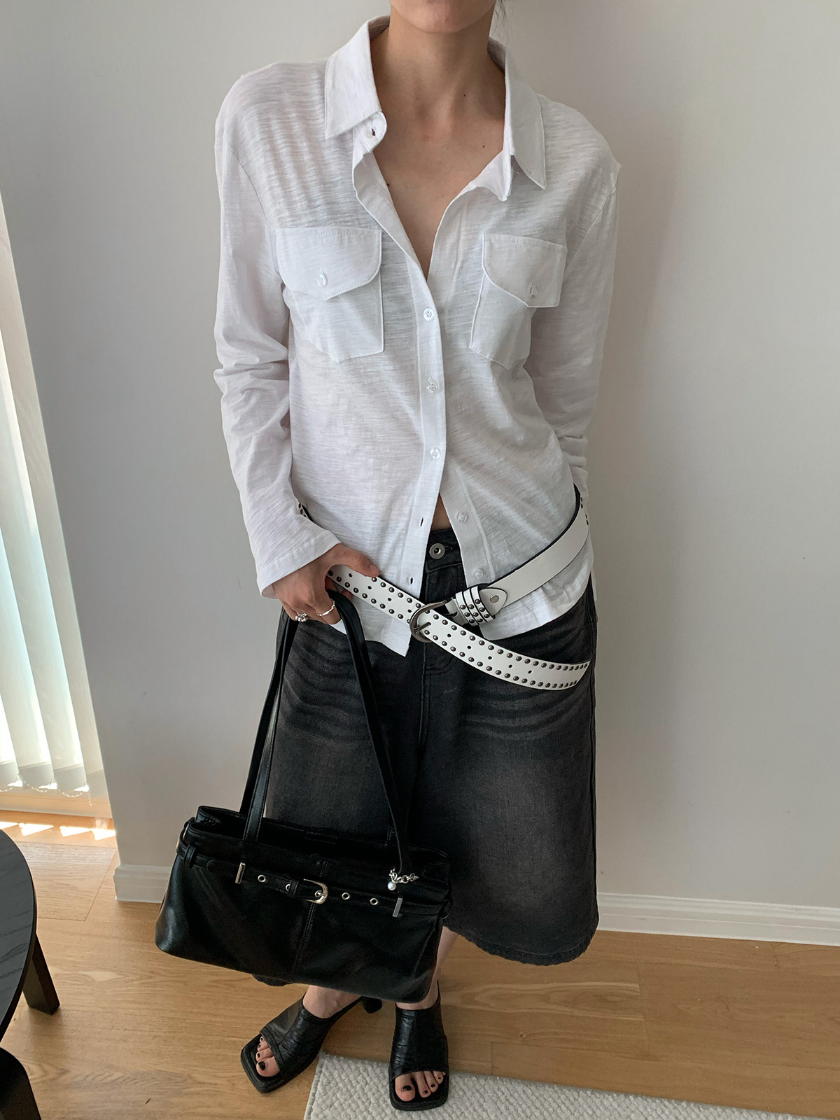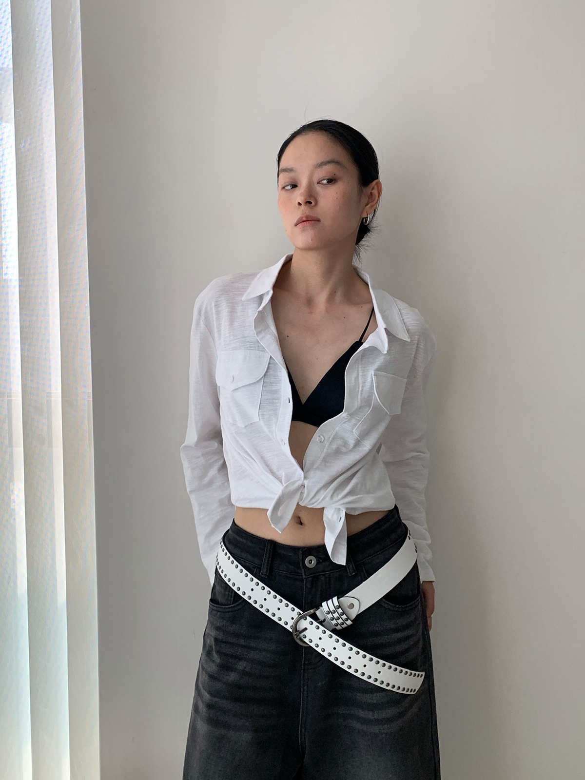 Dorothy Kemeja Wanita Terlihat Langsing Lengan Panjang Mudah Dipadu Padan Lembut Desain Kantong Satu Baris Model Tipis Korea Produk Baru Musim Panas