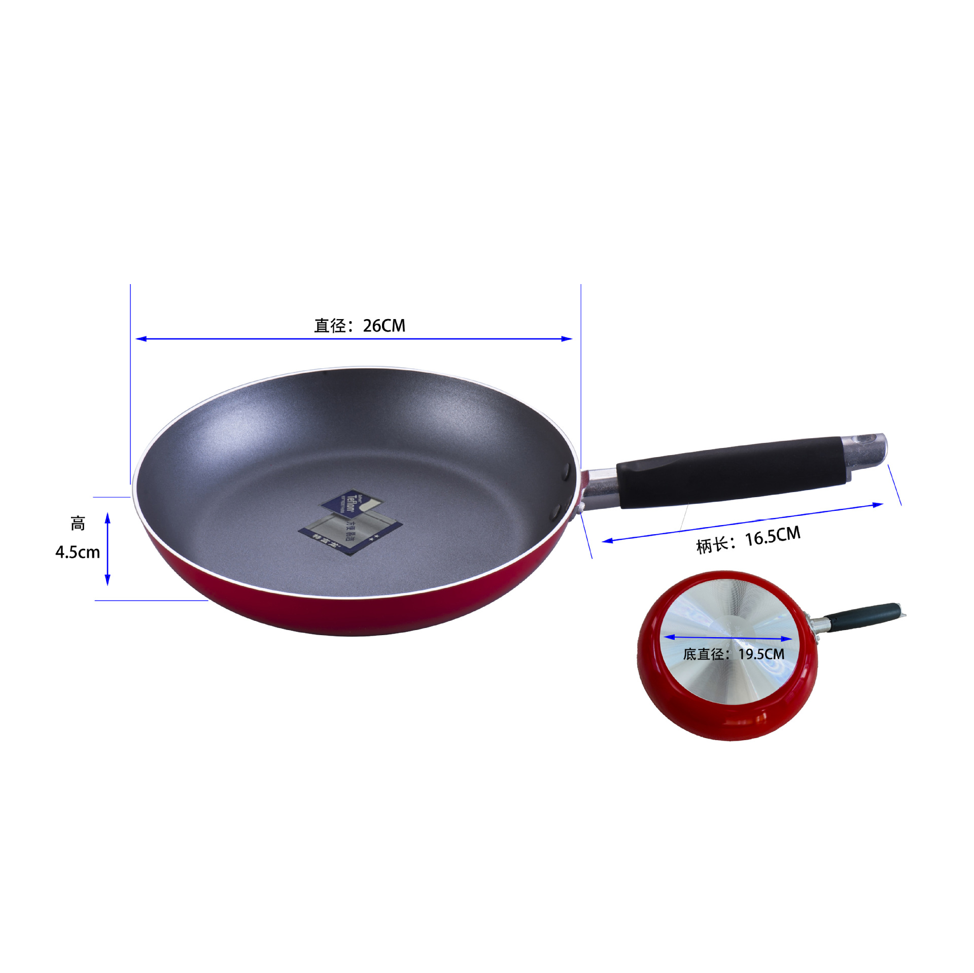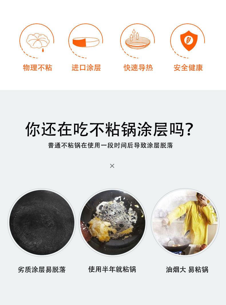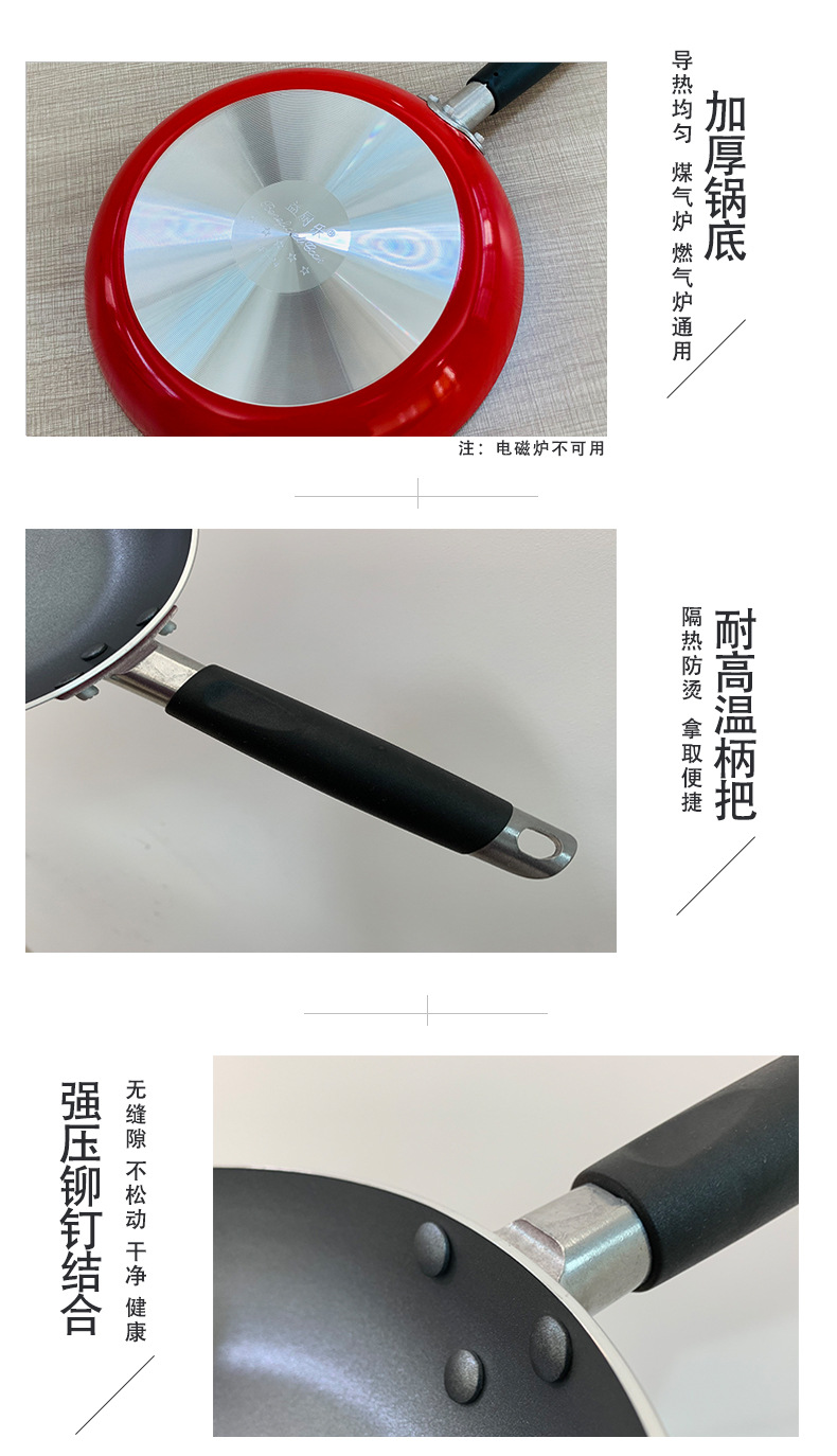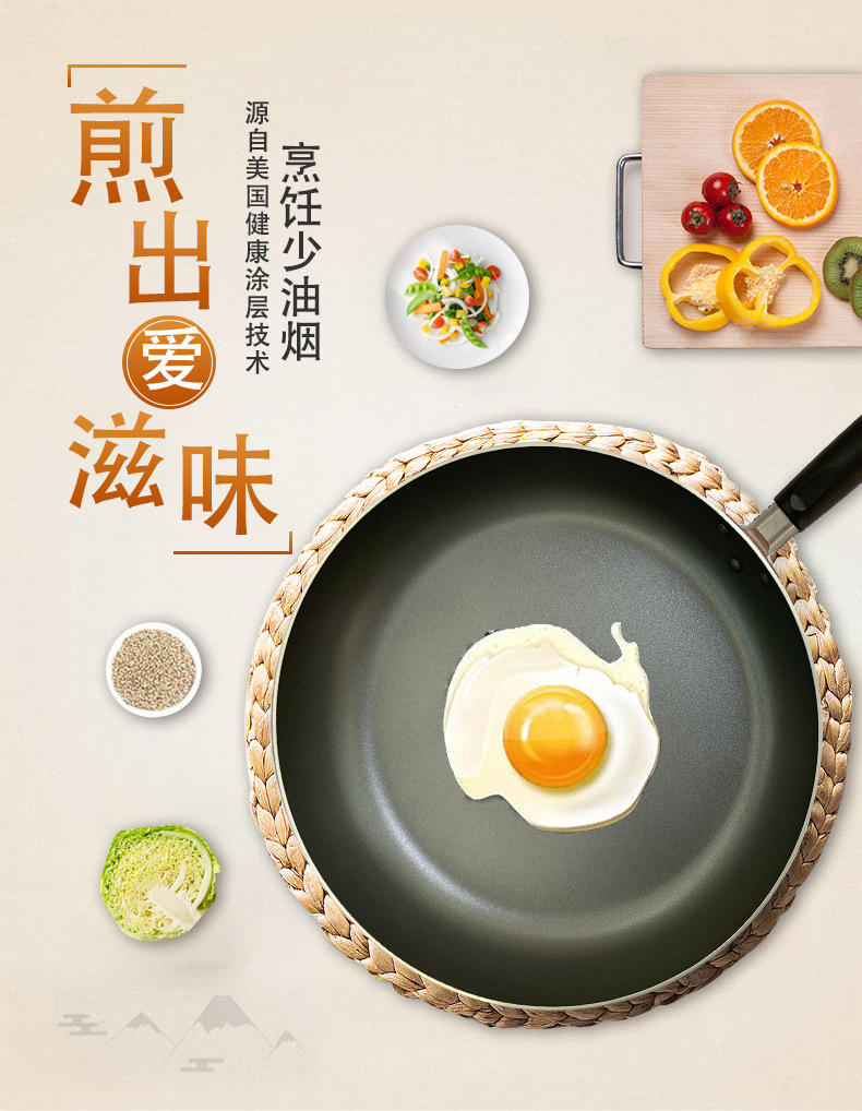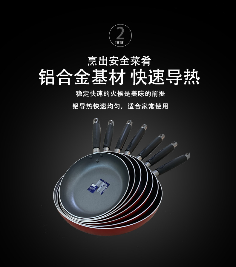 Wajan penggorengan anti lengket, bahan plastik Teflon, panci penggorengan anti lengket, perlengkapan rumah tangga, multi ukuran opsional