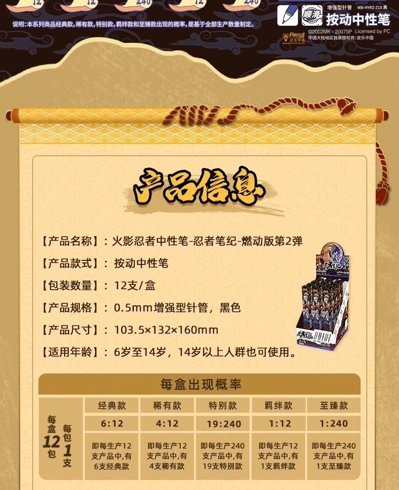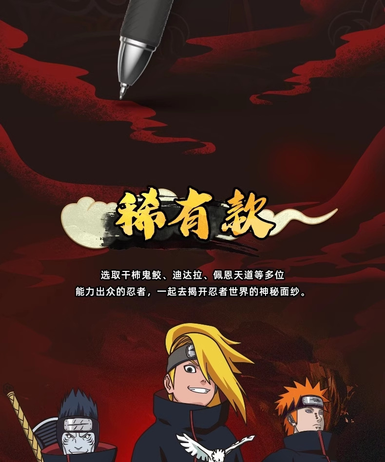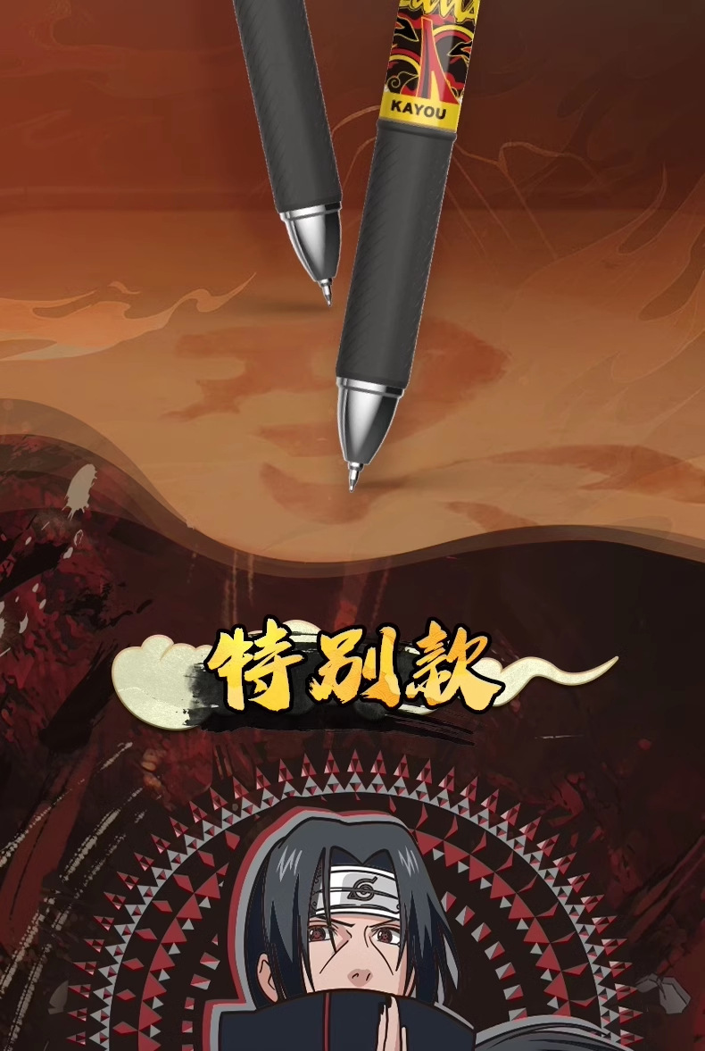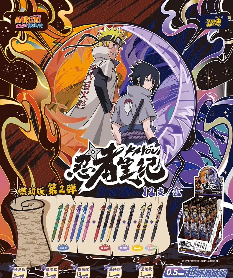 Ka You Naruto co-branded Neared Pen Versi Pembakaran 3 Tekan Pena Kotak Buta Tersembunyi Alat Tulis