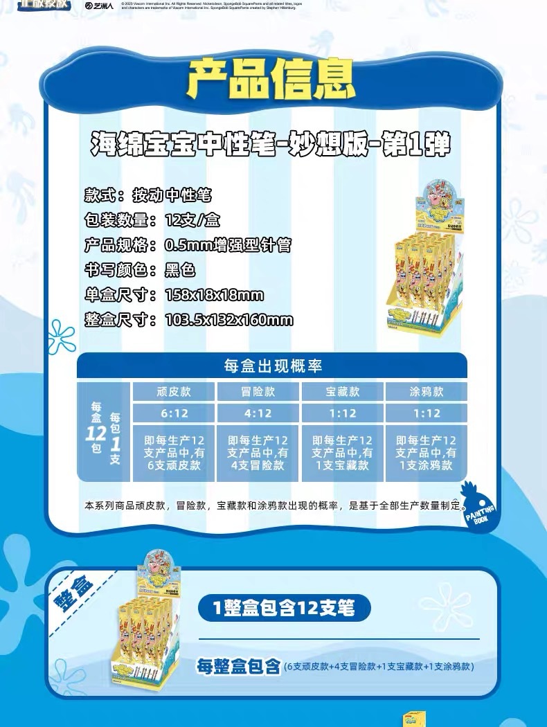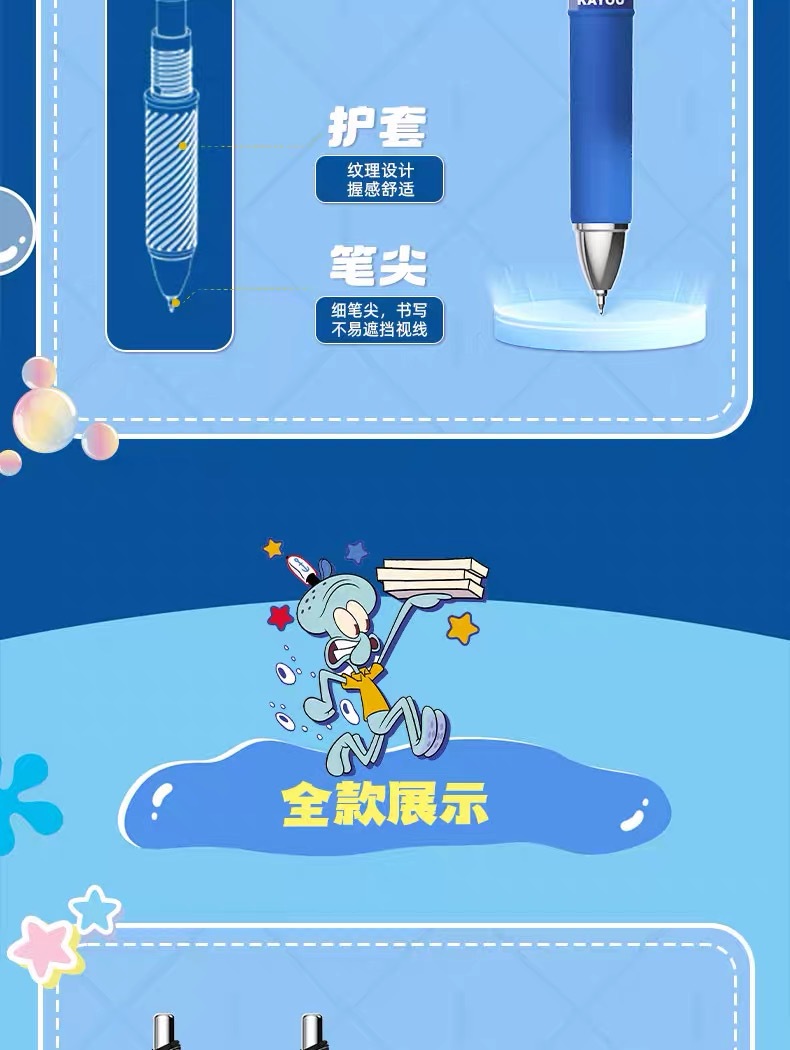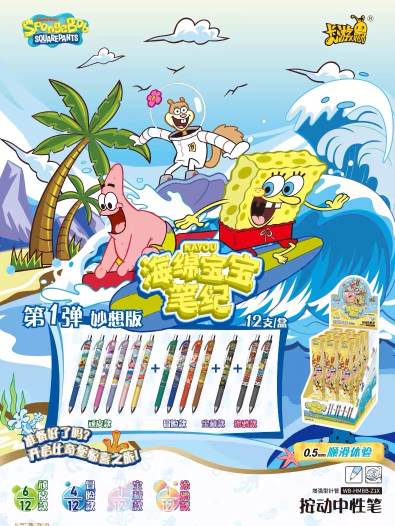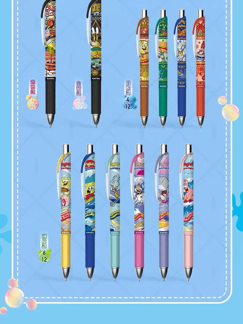Permainan kartu spons asli bayi pulpen gel dorong tampilan tinggi kartun versi indah kotak buta pena siswa menulis hitam