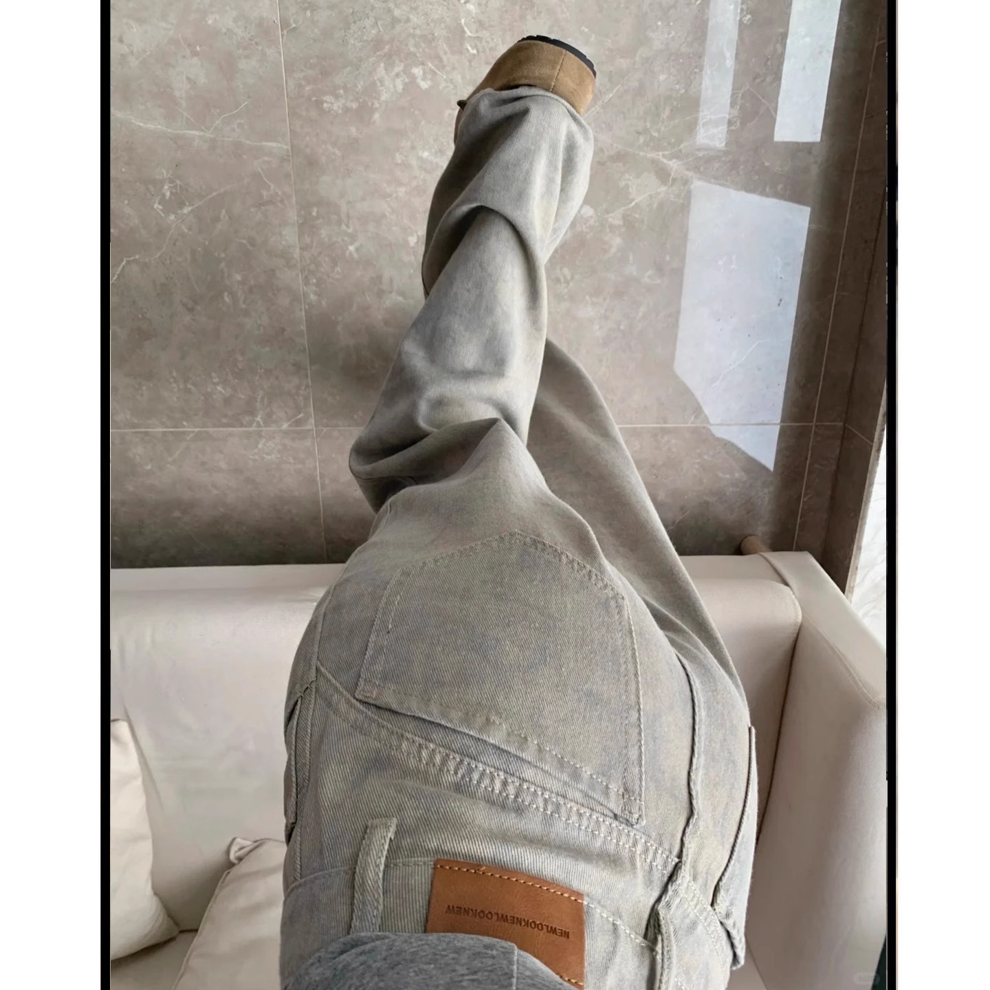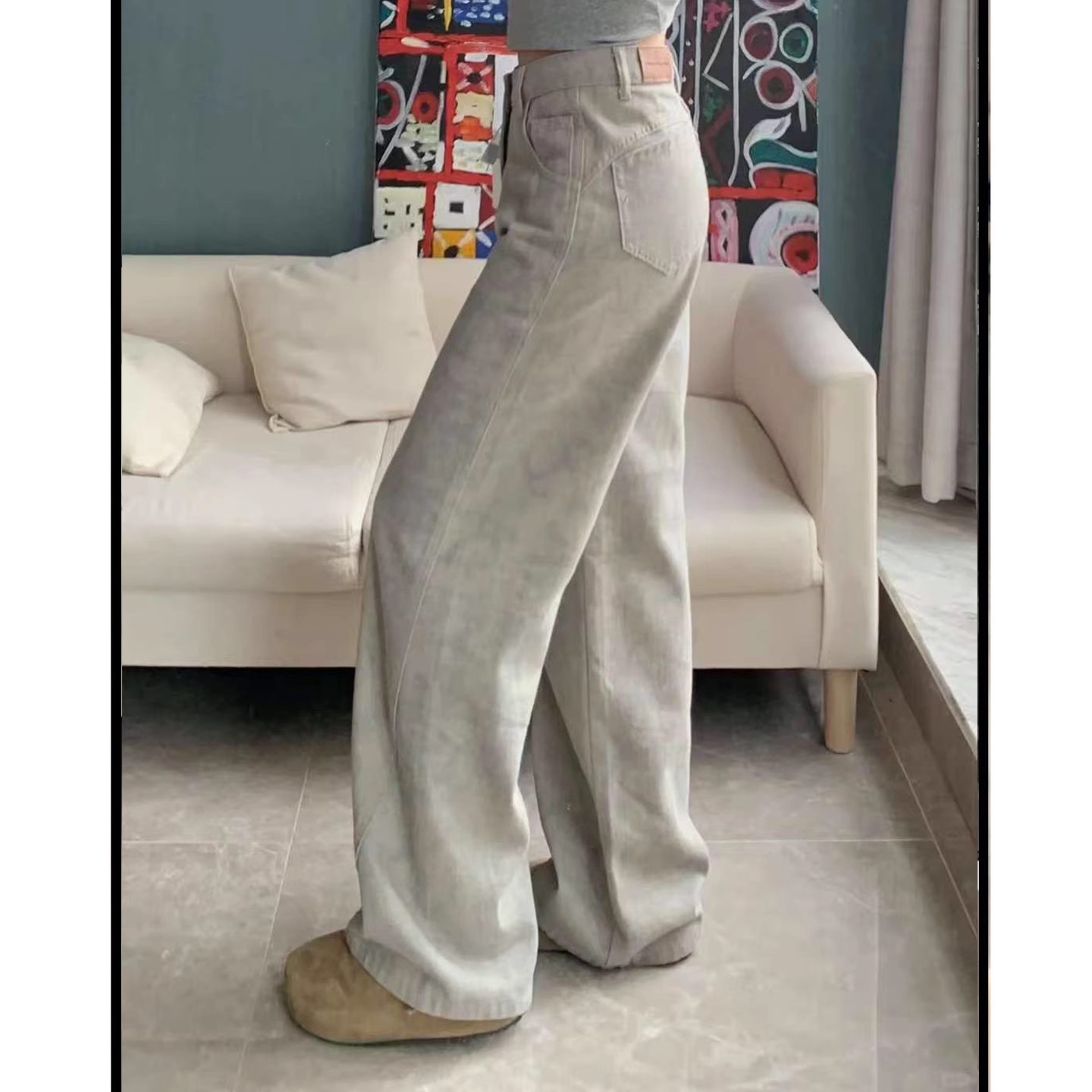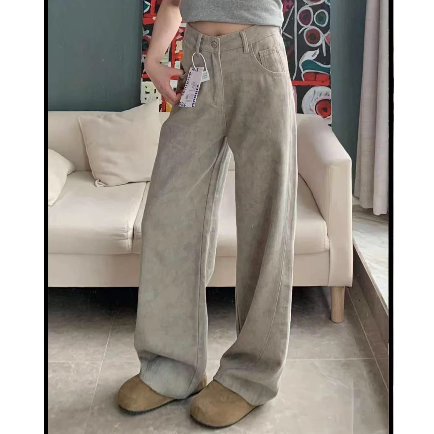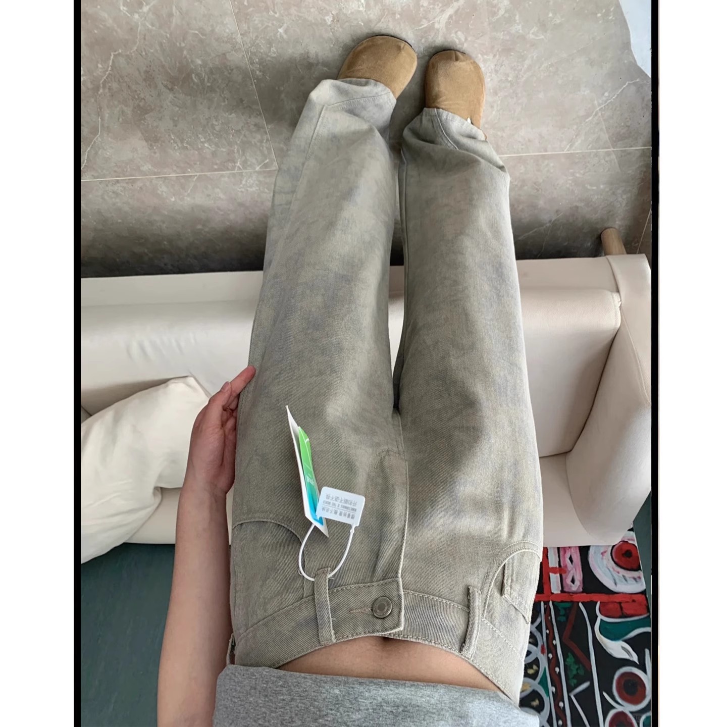 Celana Panjang Lurus Model Baru Musim Panas Wanita Celana Jeans Kaki Lebar Diikat Dibuang