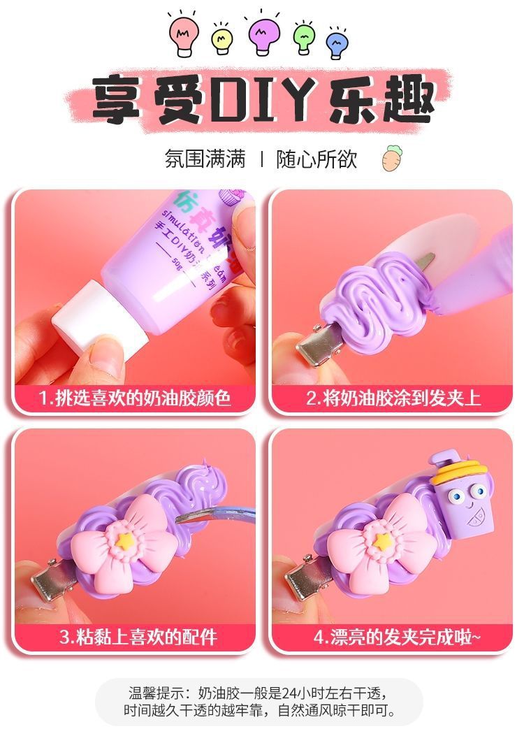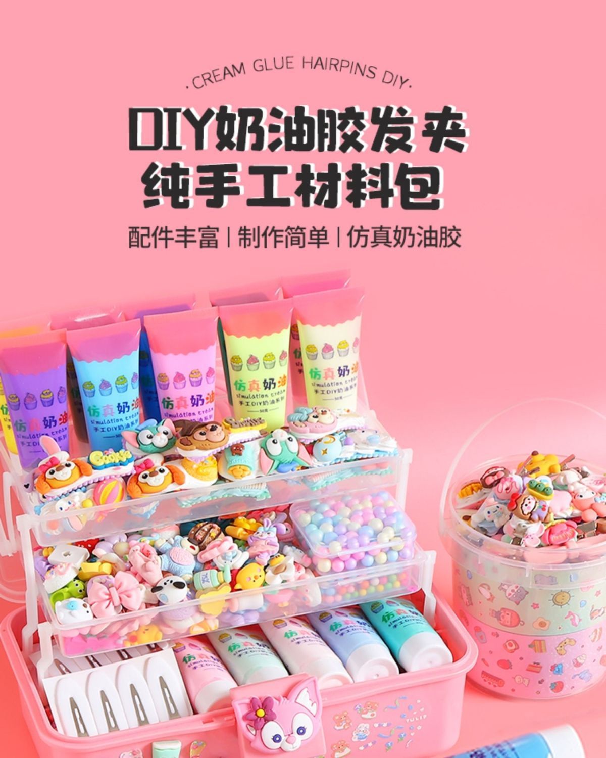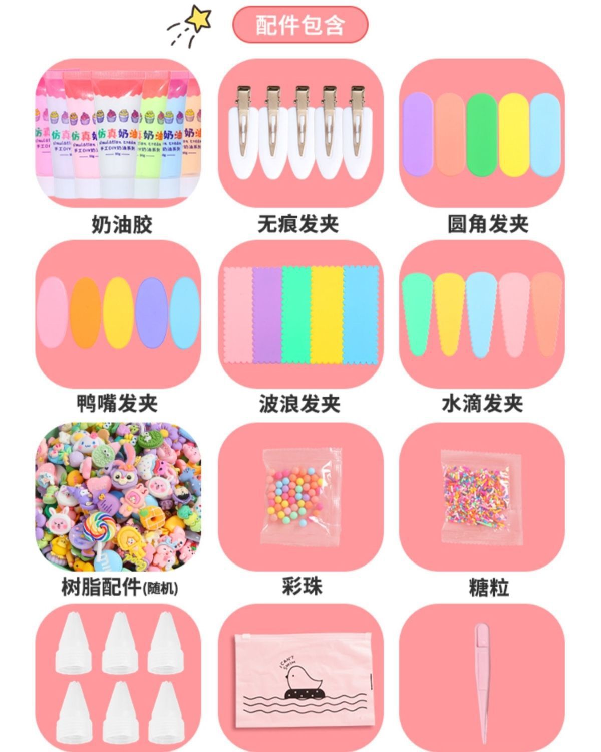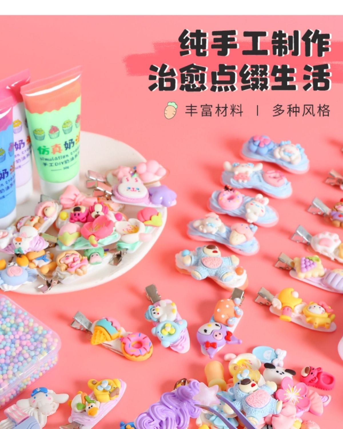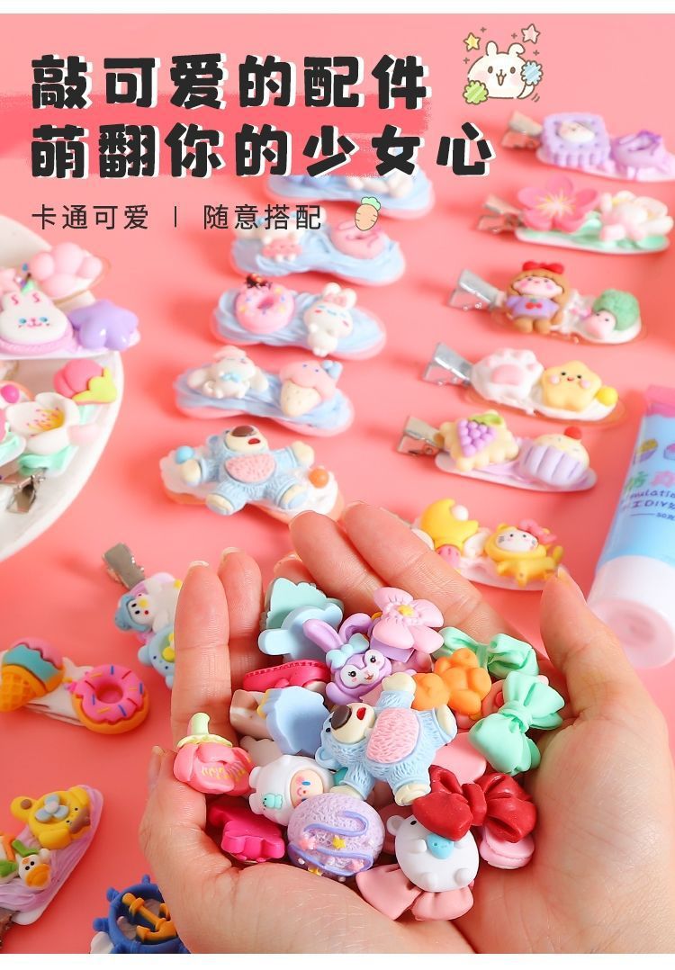 Krim DIY Set Jepit Rambut Bahan Buatan Tangan Lucu Aksesori Resin Aksesoris Anak Perempuan
