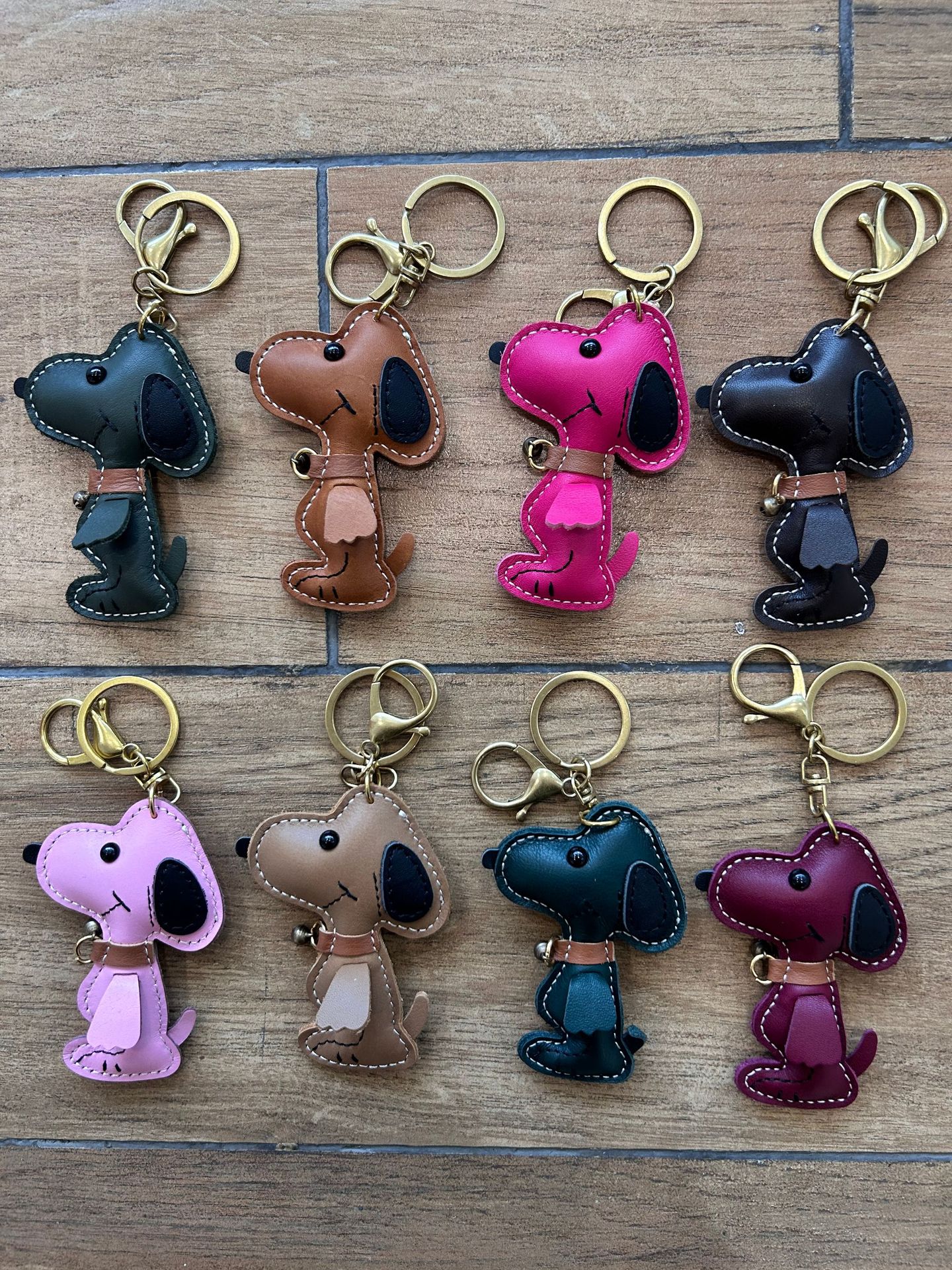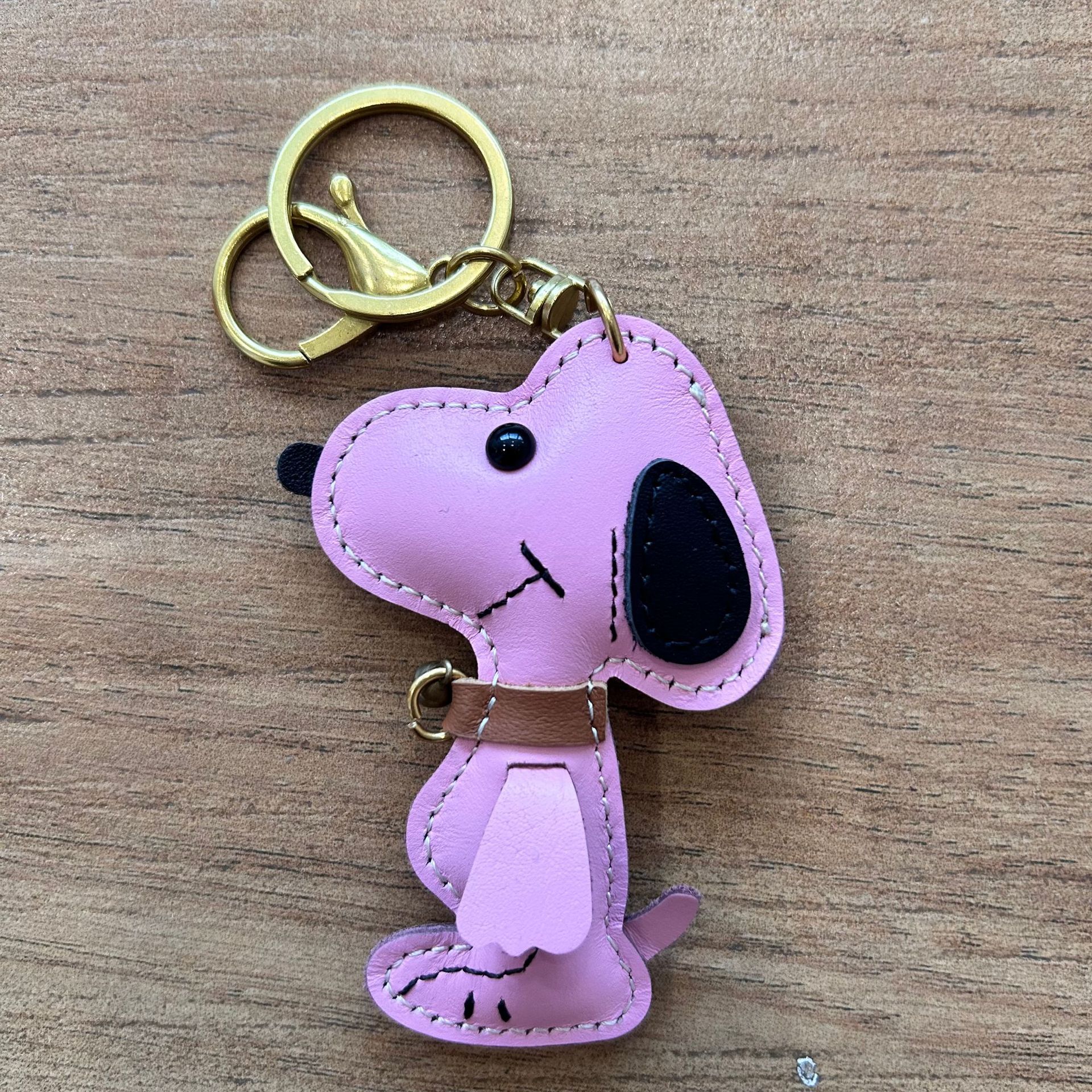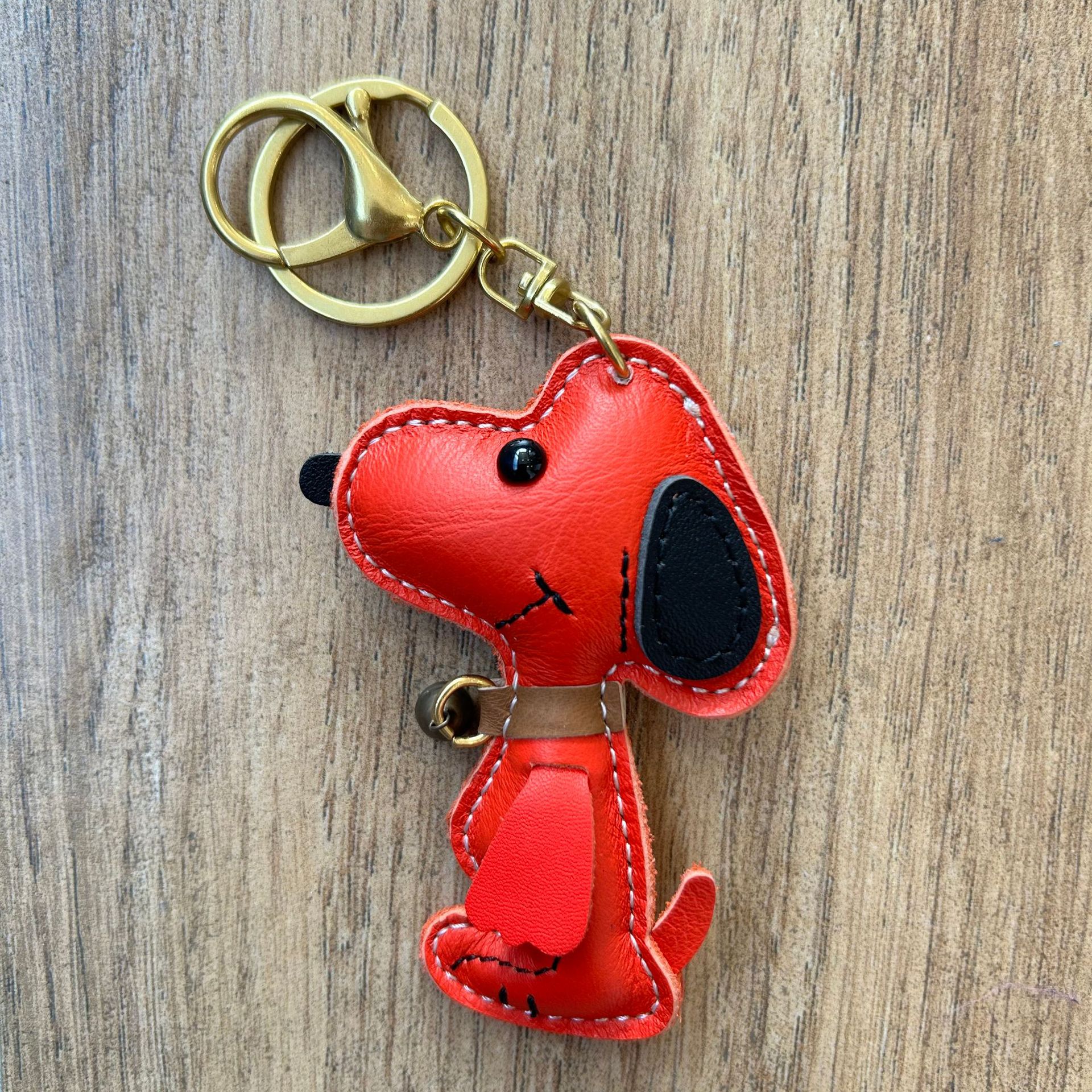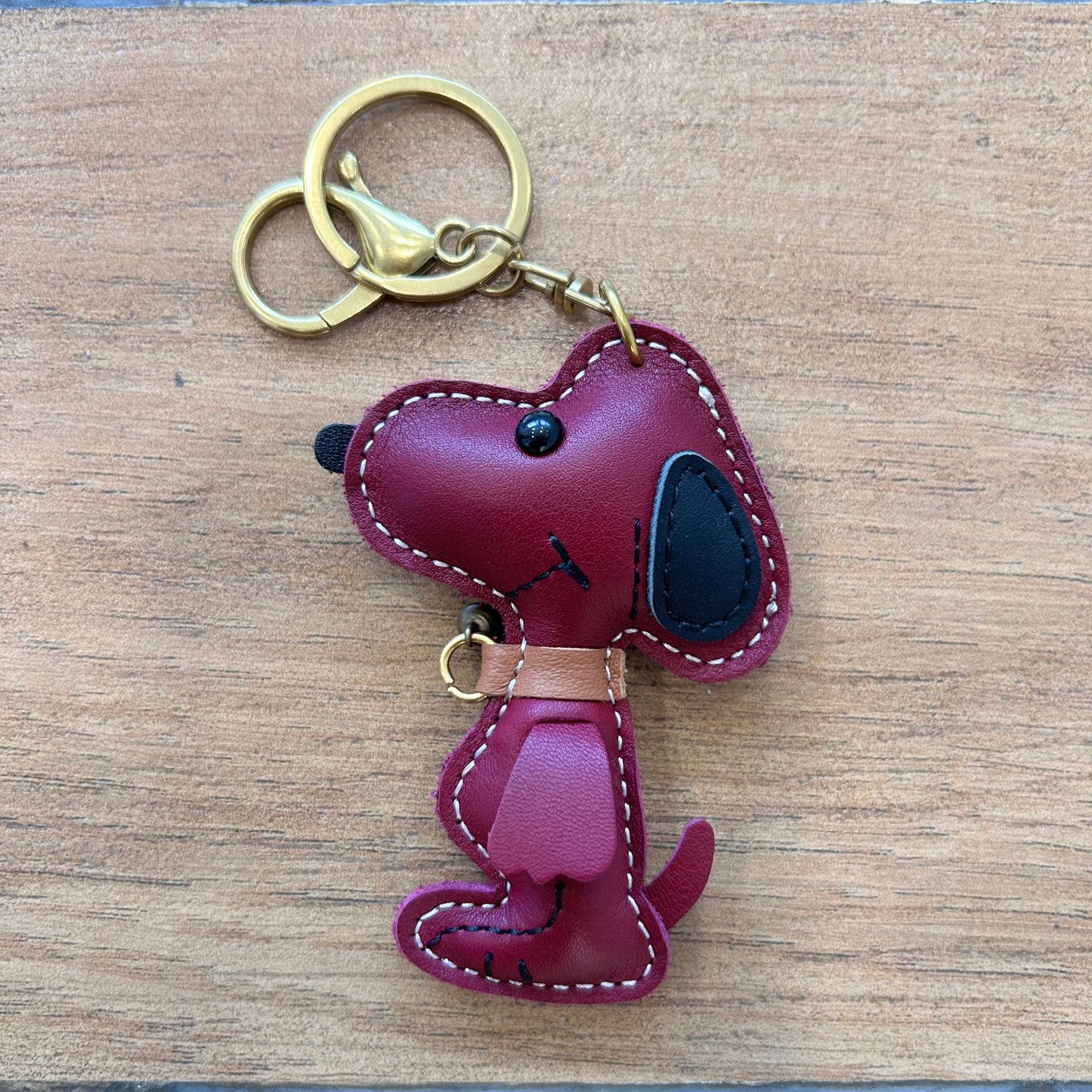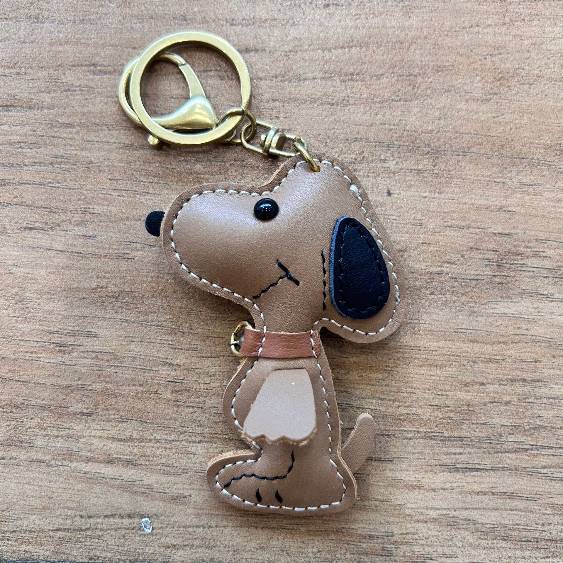 Lapisan pertama kulit sapi buatan tangan zodiak anak anjing liontin kulit lucu Snoopy gantungan kunci mobil tas sekolah wanita ornamen kulit