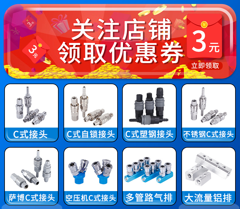 SP20 Aksesori pompa udara kompresor udara saluran udara gaya Jepang konektor pipa udara Tipe C koneksi cepat kepala pria dan wanita PP40SM30