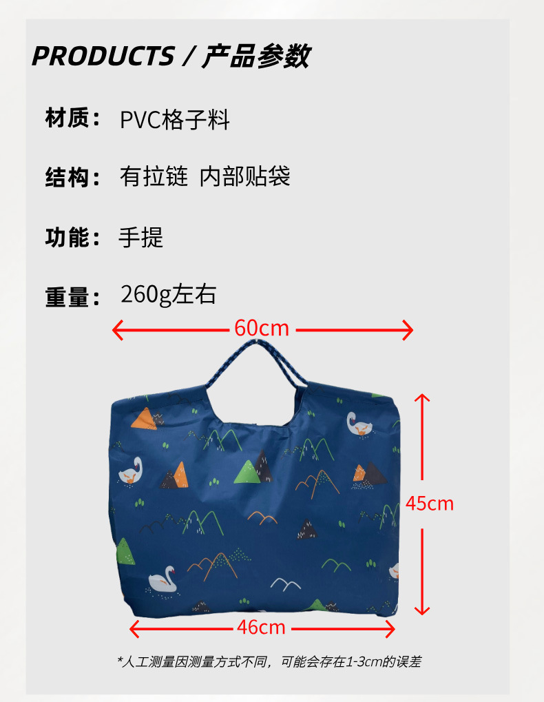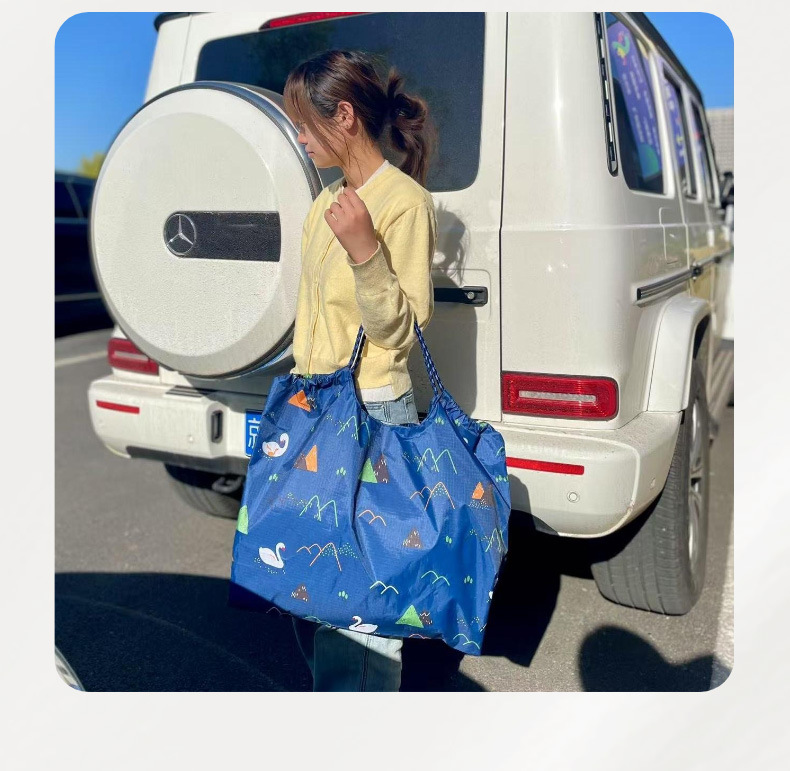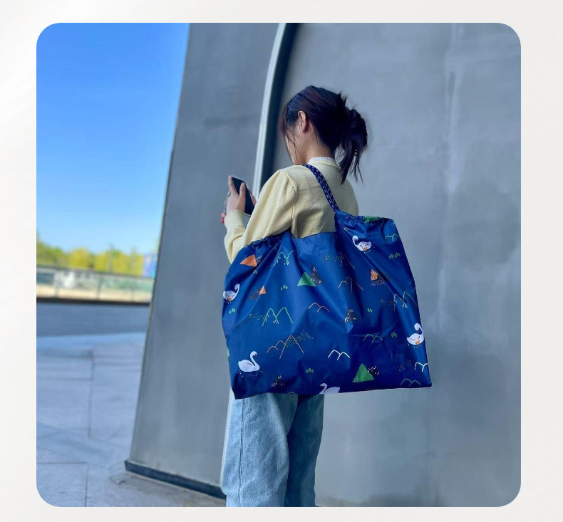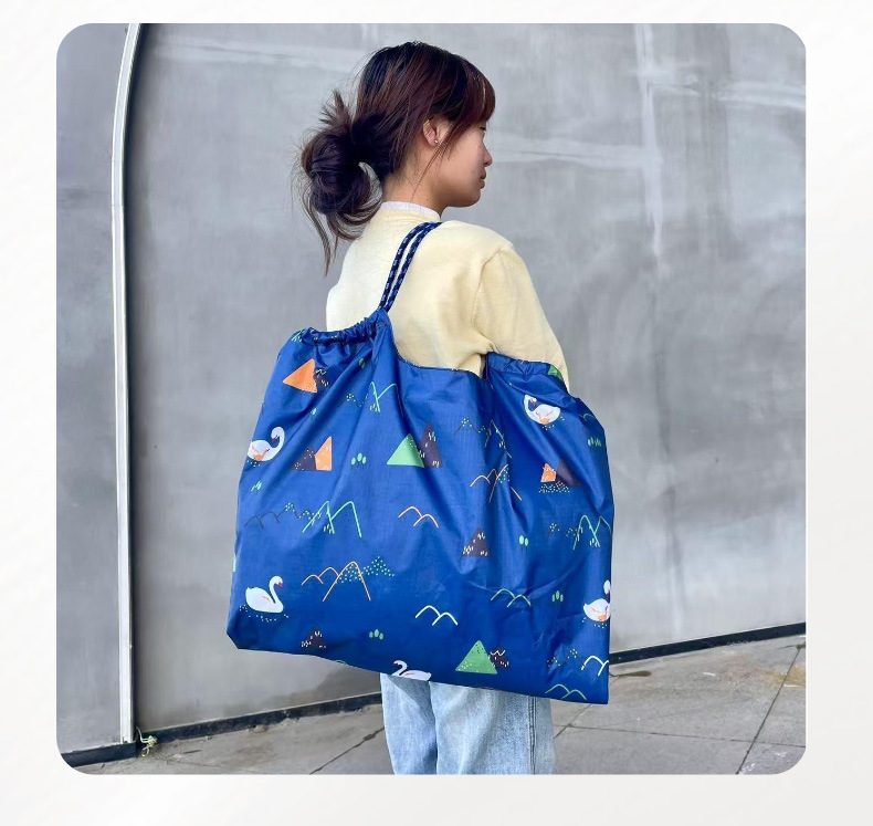 Tas Belanja Lipat Kapasitas Besar Tas Kartun Supermarket Kain Oxford PVC Tas Ramah Lingkungan Tas Belanja Makanan Tas Penyimpanan Barang Tersedia