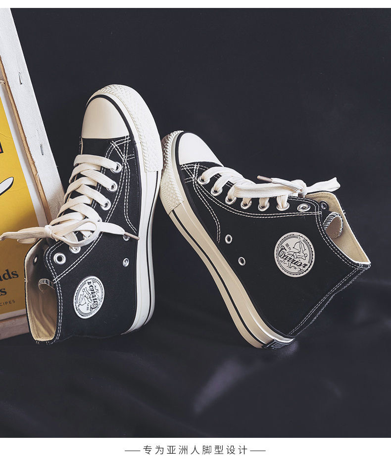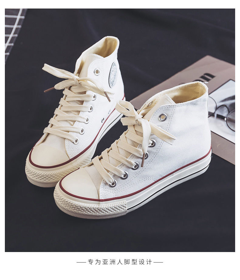 Sepatu Kanvas Wanita Tinggi Model Baru Musim Semi dan Musim Panas Sepatu Wanita Sepatu Kasual Bernapas Mudah Dipadu Padan Versi Korea Murid