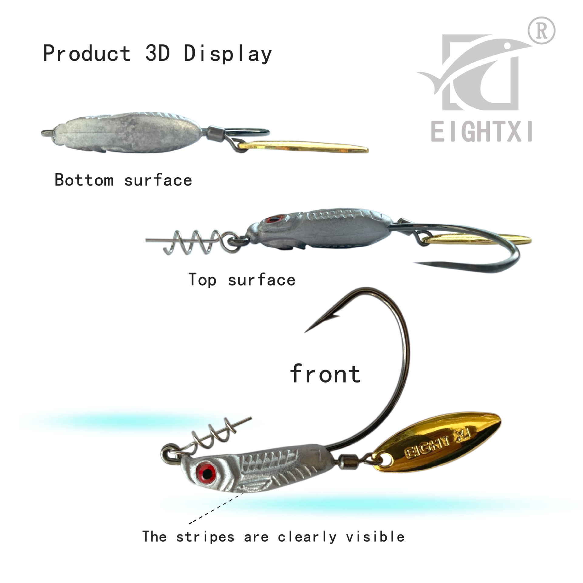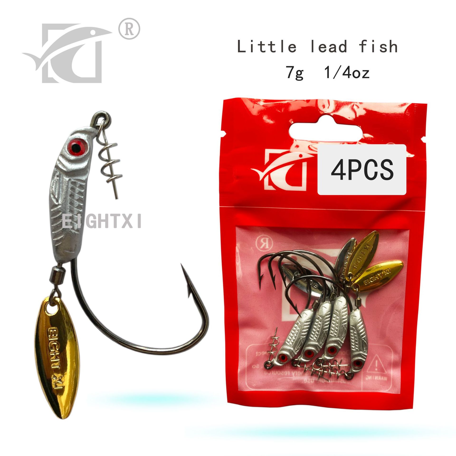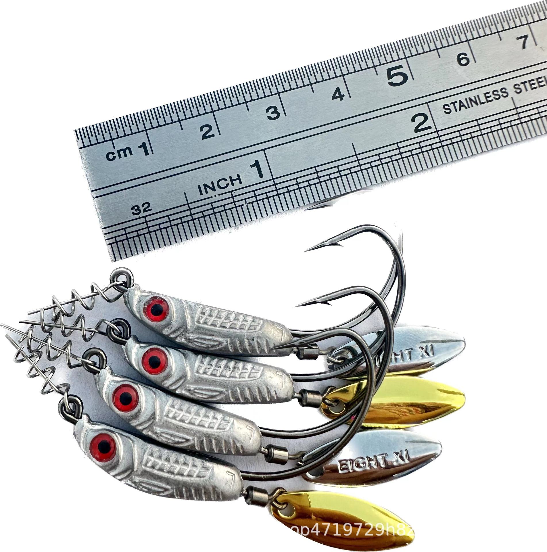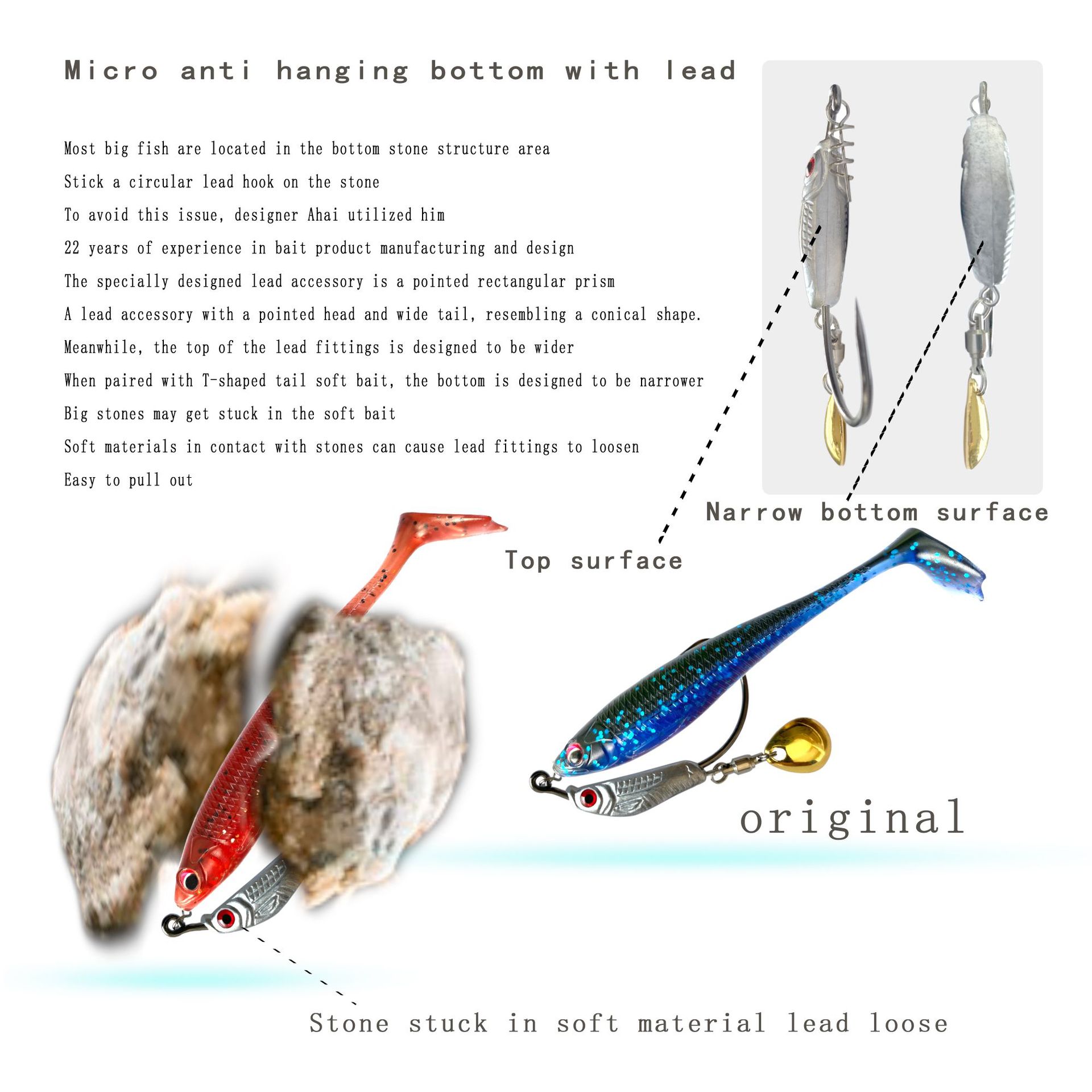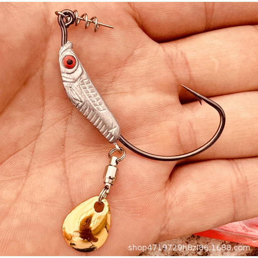 我们八溪整个钓鱼钩钩身是一个带曲柄弹簧铅钩的造型,原创的纹理和鱼眼设计,手工打磨,搭配了一个旋转小亮片,增加诱鱼性。我们八溪的铅是设计在钩子的头部,而且钩身在铅柄的中间位置。