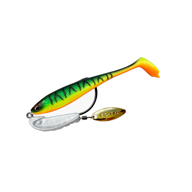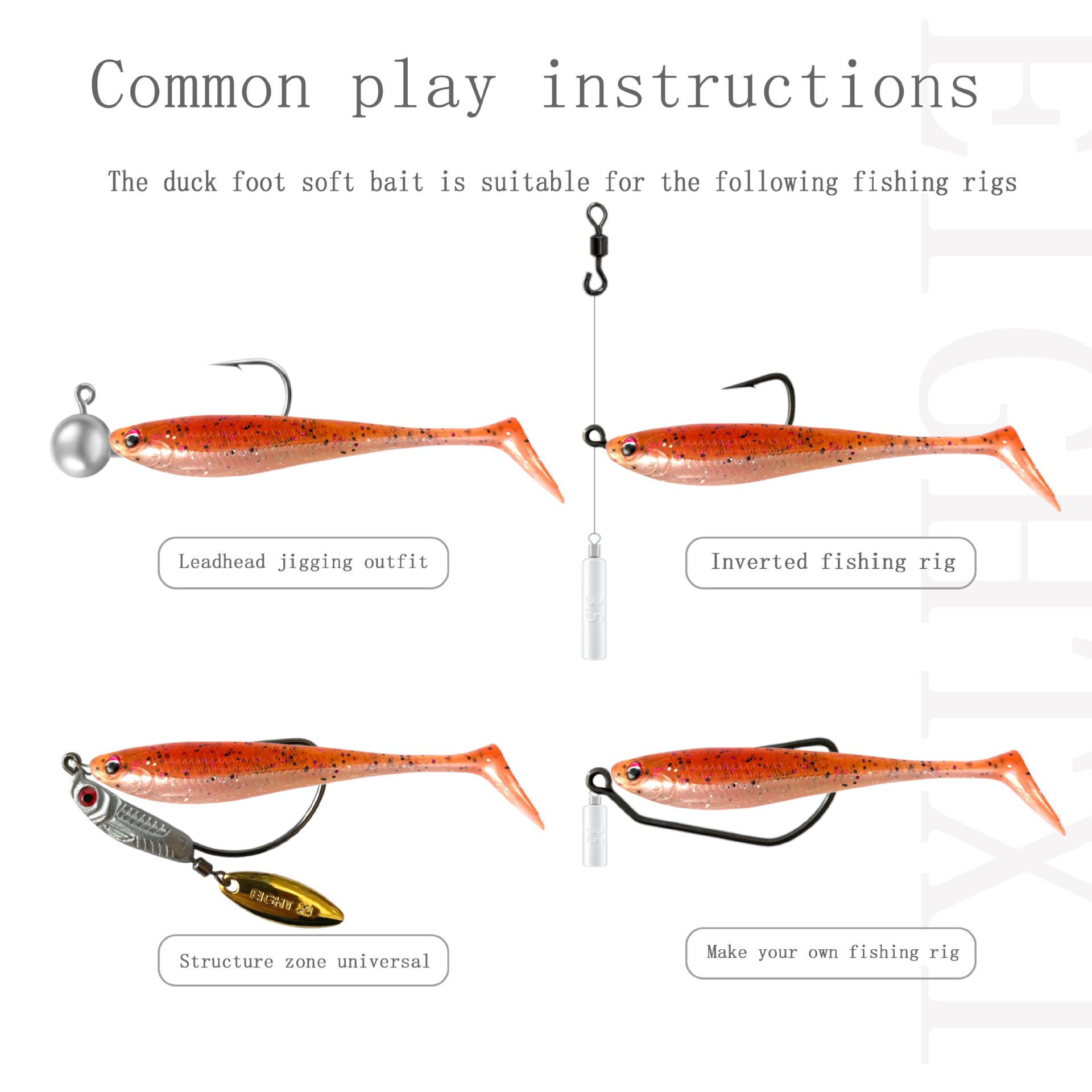 饵身是比较圆润的,3D鱼眼设计,还有两种克重喷漆软饵供钓友选择,非常的讲究,弹性,拉伸。柔韧度都非常的好。软饵的泳姿呈现一个左右摆动的飘落缓沉, T尾摆动风骚,也会有整个饵身的摆动跳底,无论是t尾还是小亮片,启动速度非常的快,而且上跳下压,饵身都会跟着摆动。姿态也非常稳定,飘落,跳底,平收,各种控饵来诱惑鱼上钩,软饵泳姿非常风骚优美,可吸引水中的掠食性鱼类,较高的增加诱鱼性.