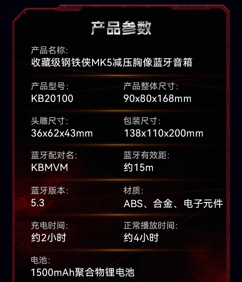 Killerbody resmi Marvel di sekitar Iron Man untuk membuat speaker Bluetooth potret dada MK5 untuk anak laki-laki